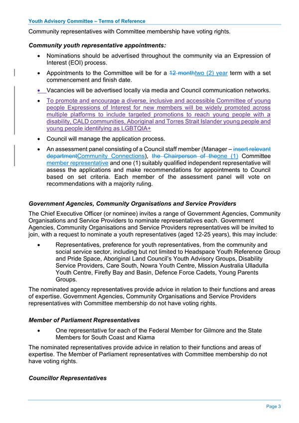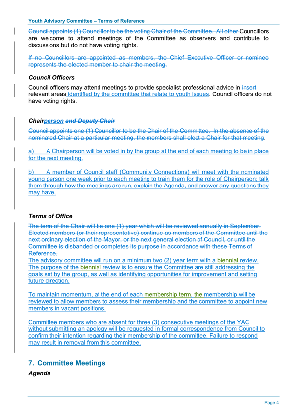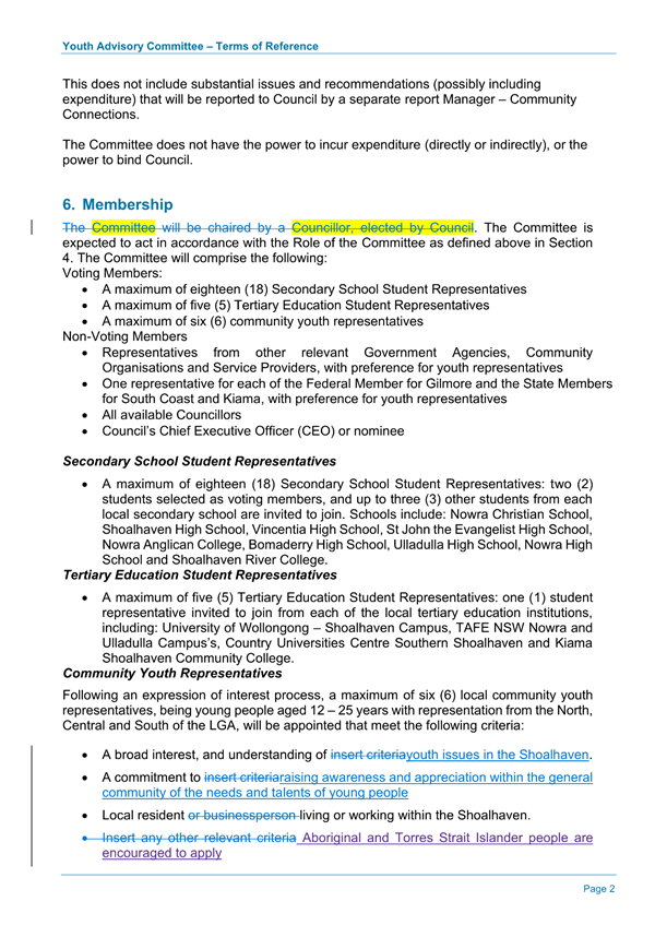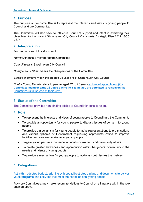 Attachments: 1. Youth Advisory Committee - Terms Of Reference - New Template 2023 - Track Changes Included ⇩