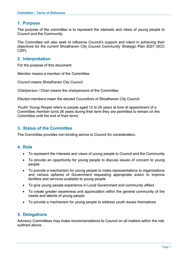 2. Youth Advisory Committee - Terms Of Reference - New Template 2023 - Clean Version ⇩