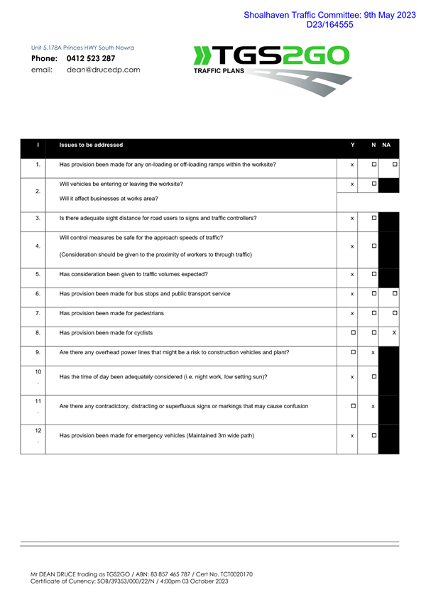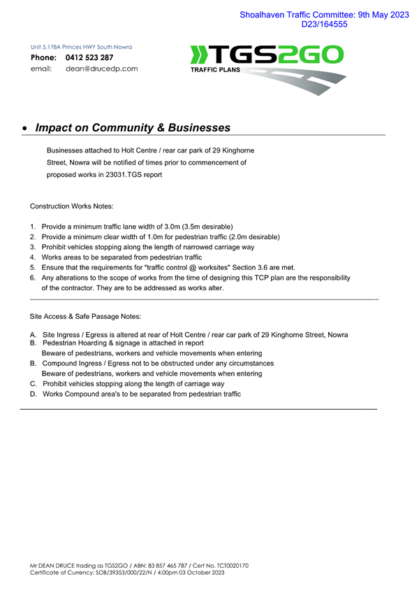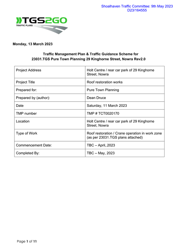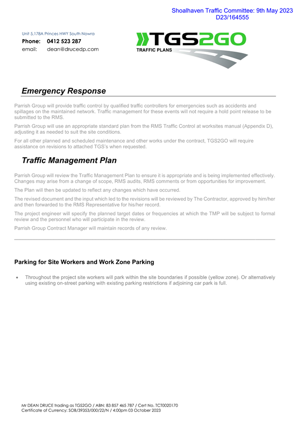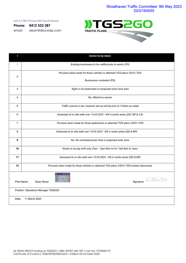 Shoalhaven Traffic Committee – Tuesday 09 May 2023 Page 1 |