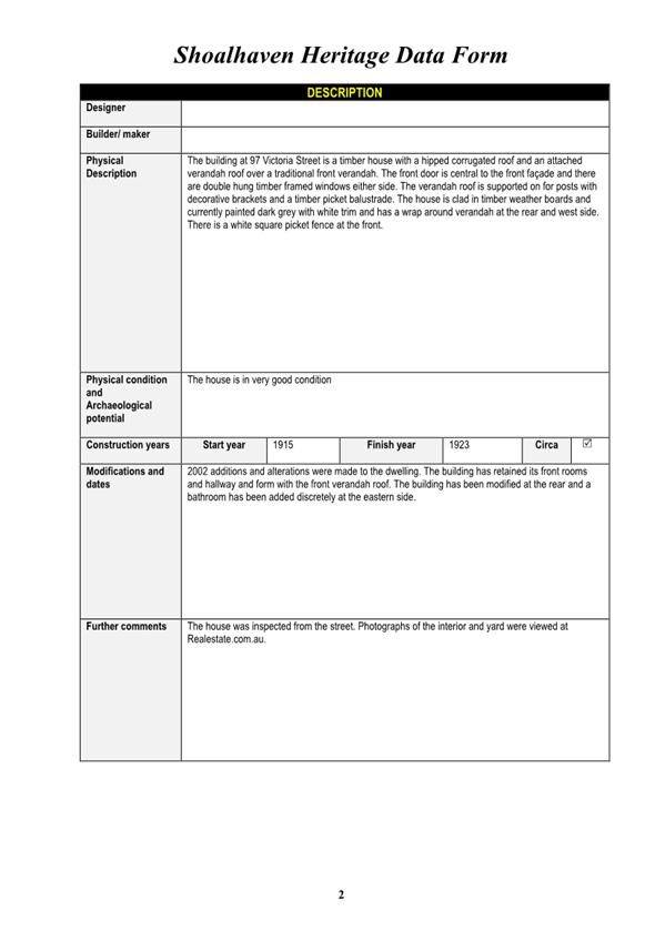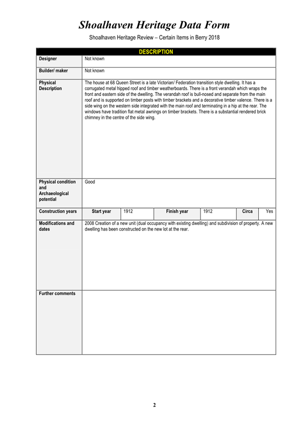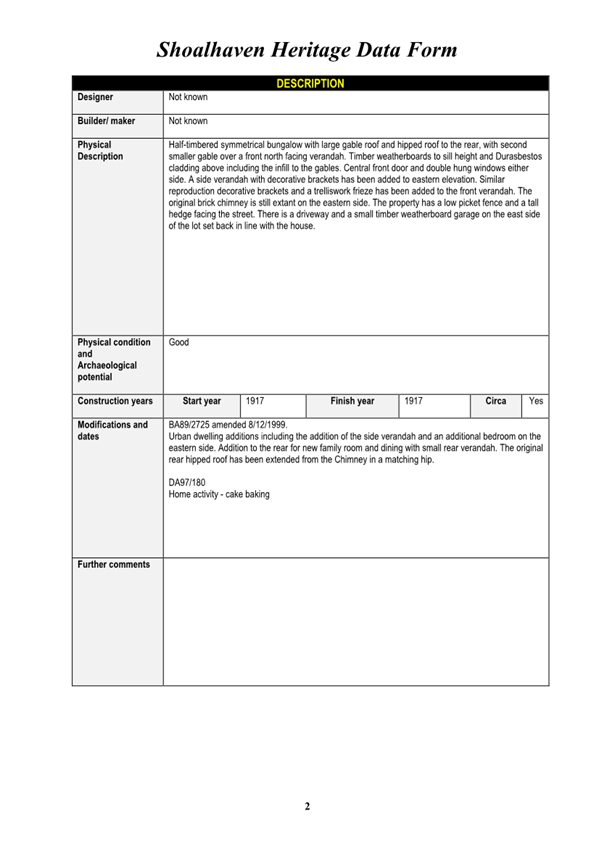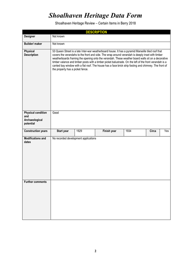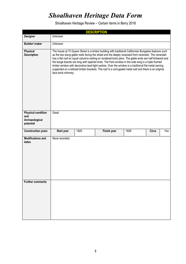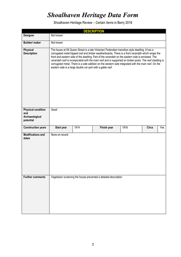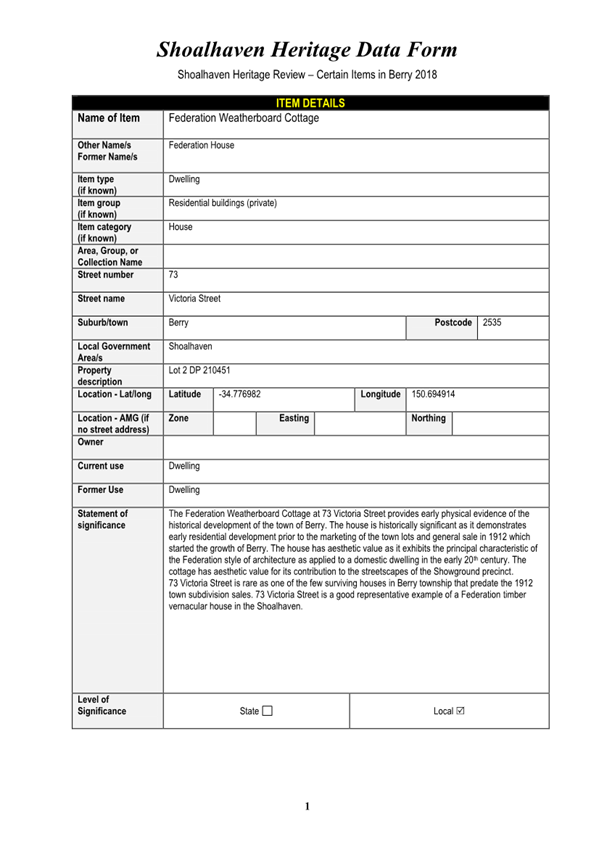 Attachment 2.... List of Properties Proposed for Heritage Listing and/or Inclusion in HCA.............................................................................................. 71
