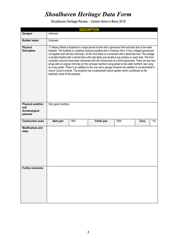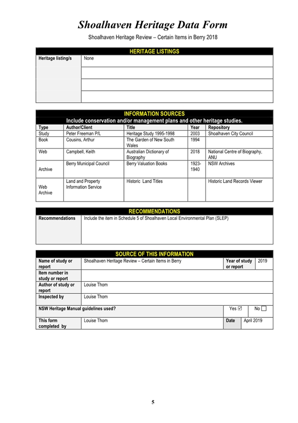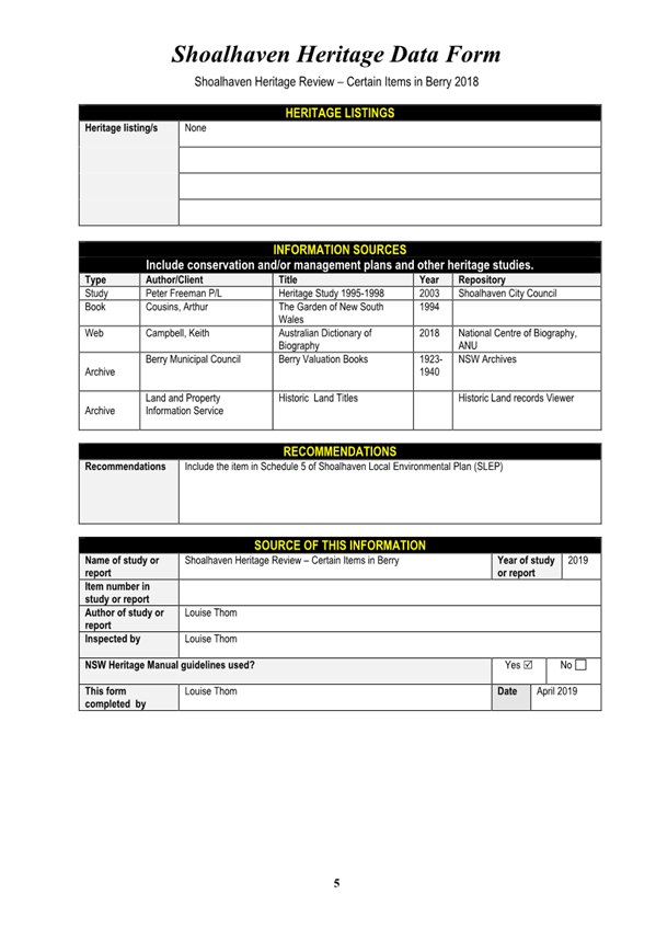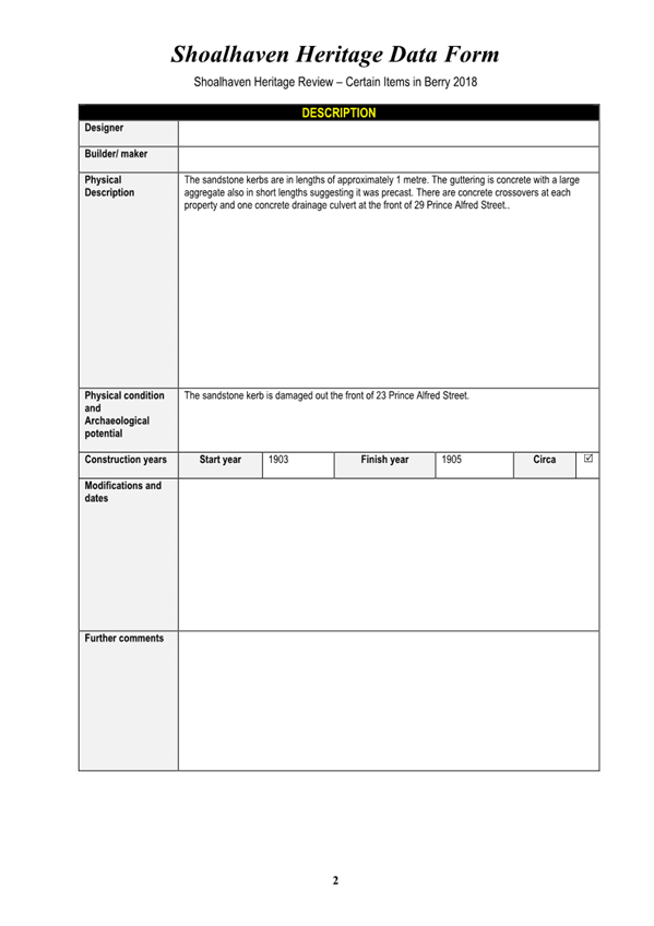 Attachment 4.... Heritage Inventory Sheets - Proposed Items Outside the Proposed Princess Street HCA........................................................... 180