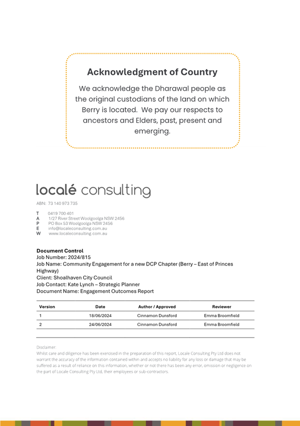 Attachment 5.... Berry DCP Engagement Outcomes Report....................... 254