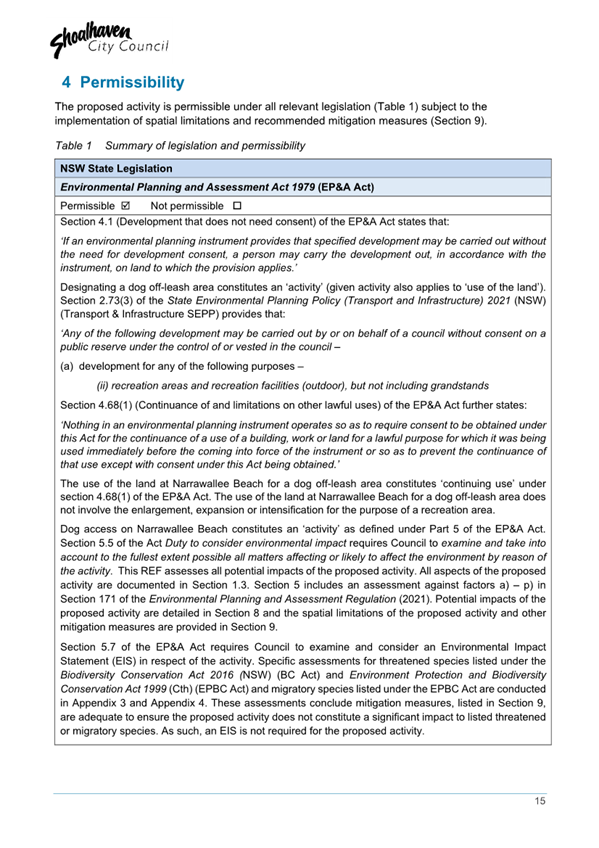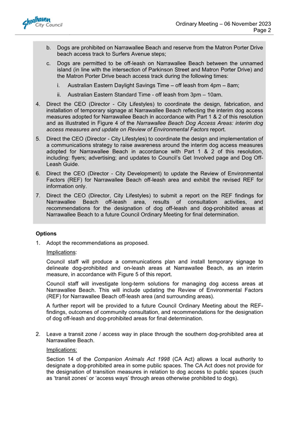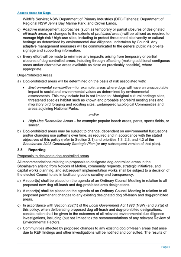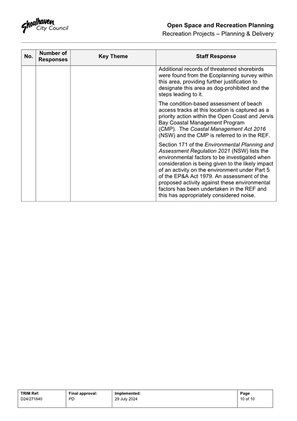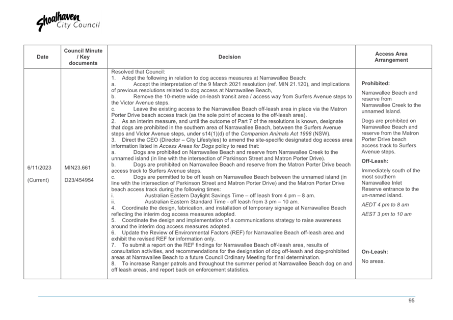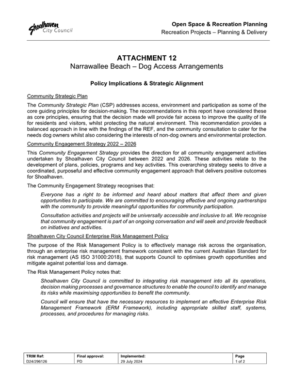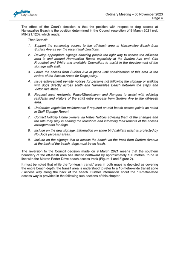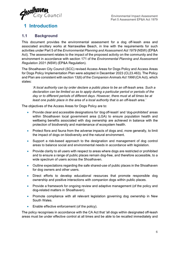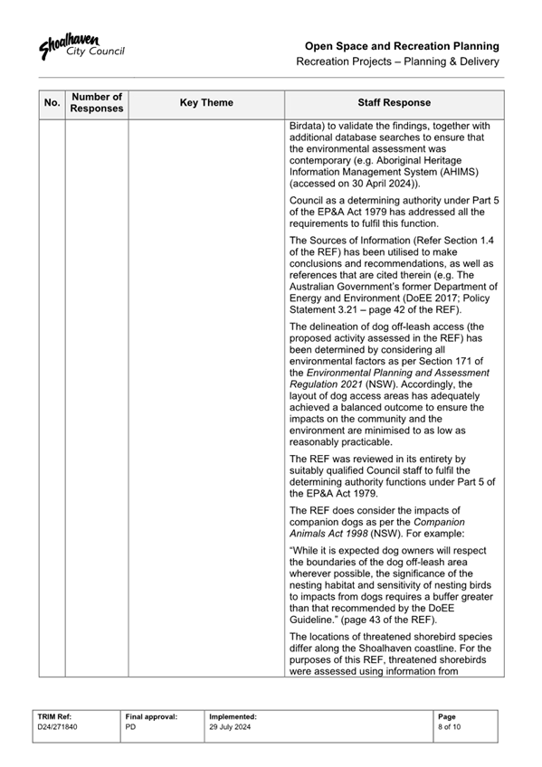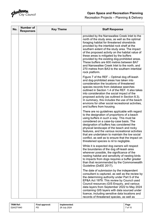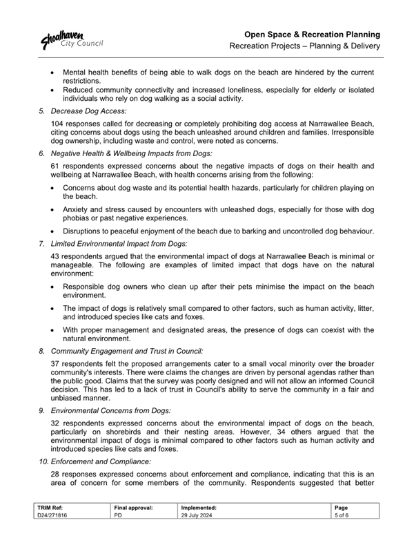 Attachment 1.... Report - Narrawallee Beach Dog Access - Review of Environmental Factors and Proposed Permanent Dog Access Arrangements - Outcome of Engagement Activity (06/11/2023)................. 397