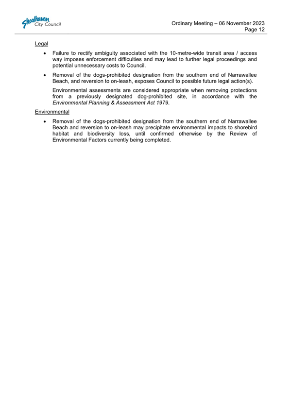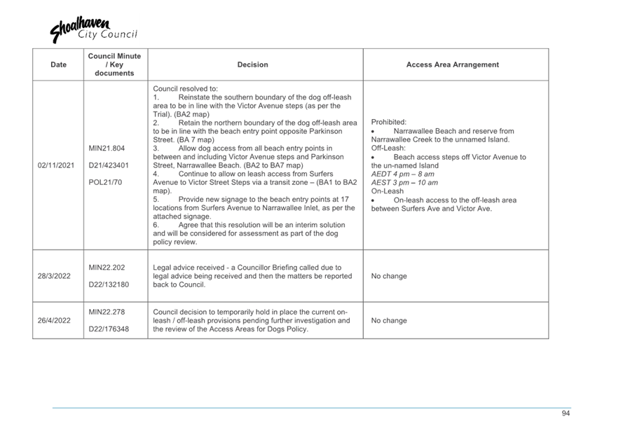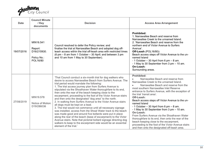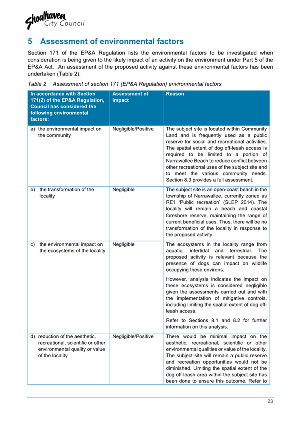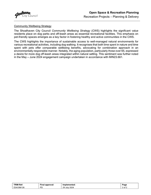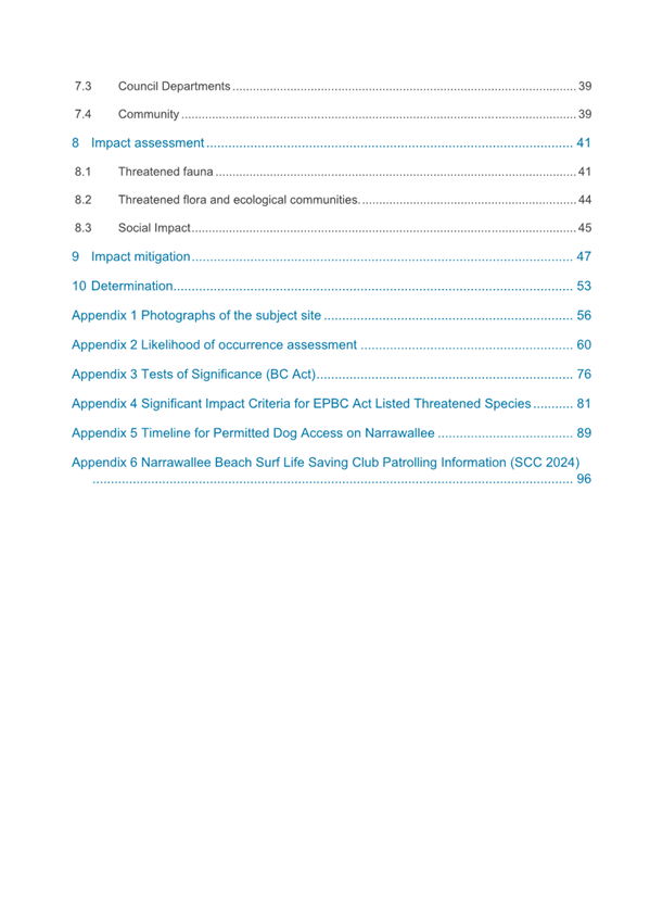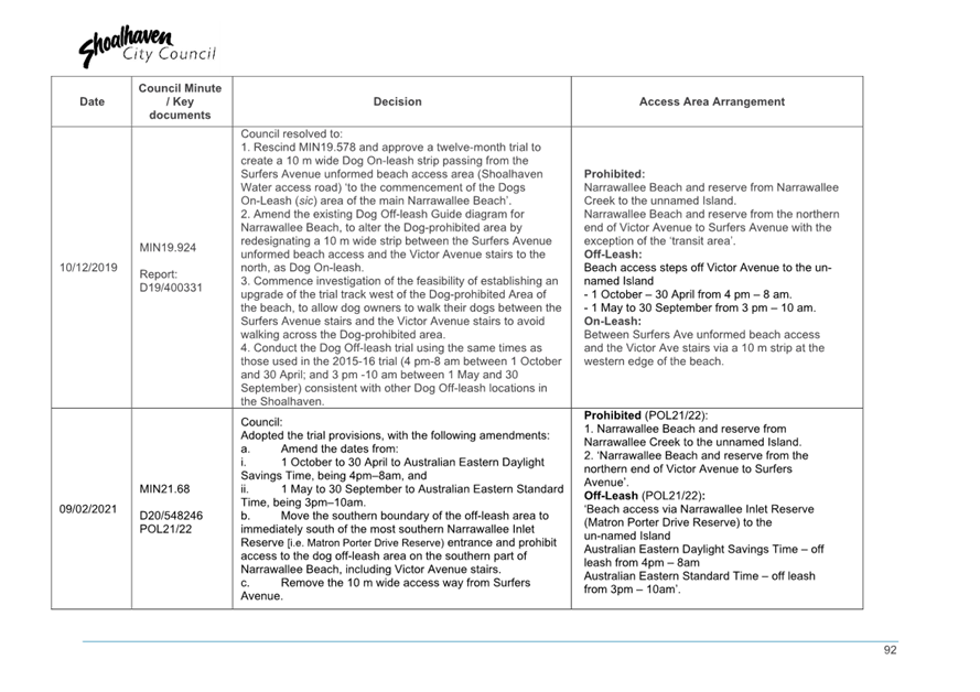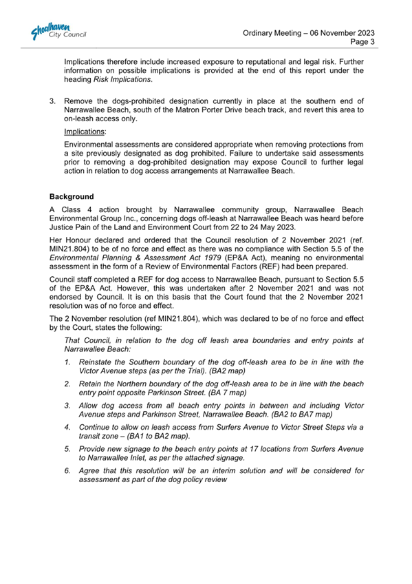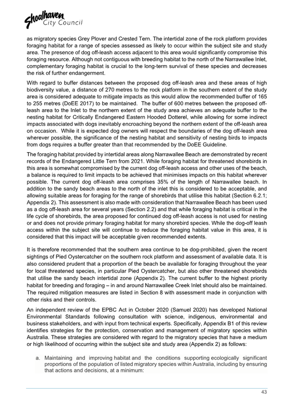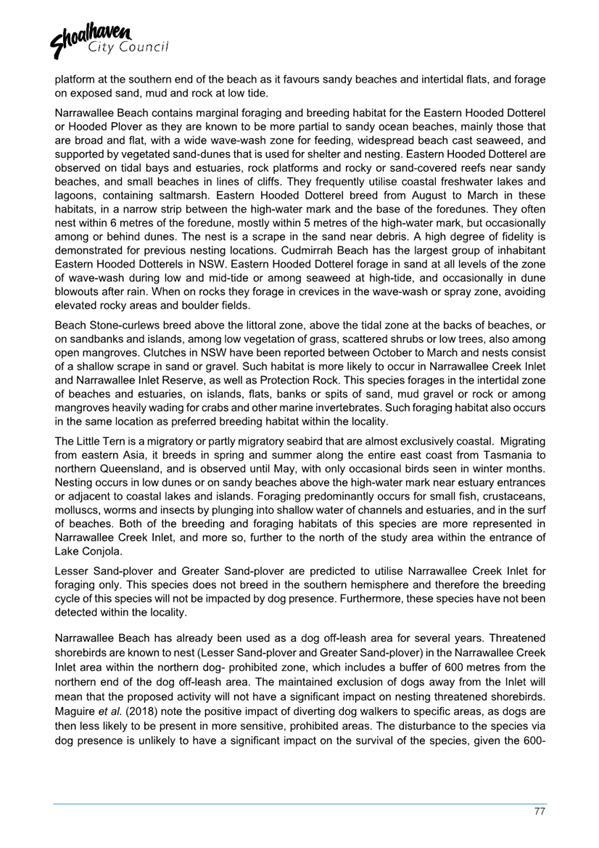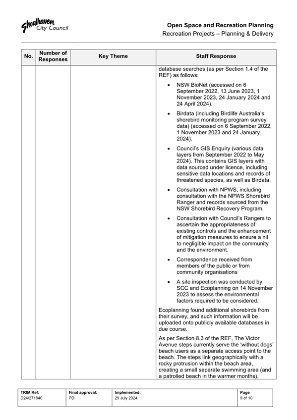 Attachment 1.... Report - Narrawallee Beach Dog Access - Review of Environmental Factors and Proposed Permanent Dog Access Arrangements - Outcome of Engagement Activity (06/11/2023)................. 397