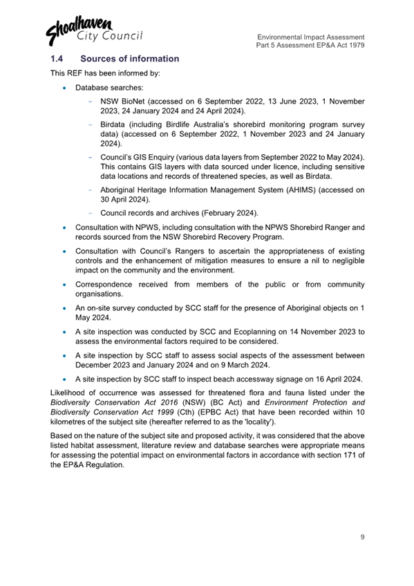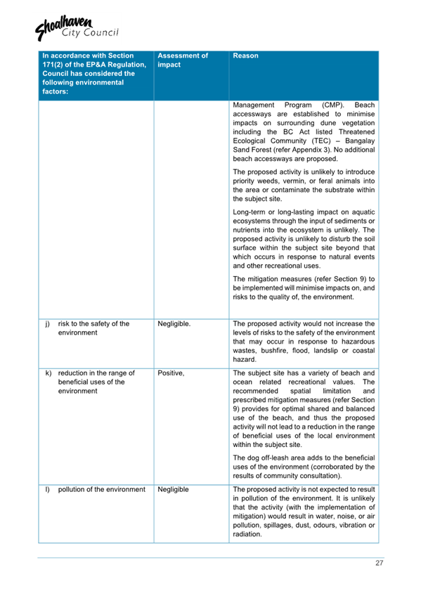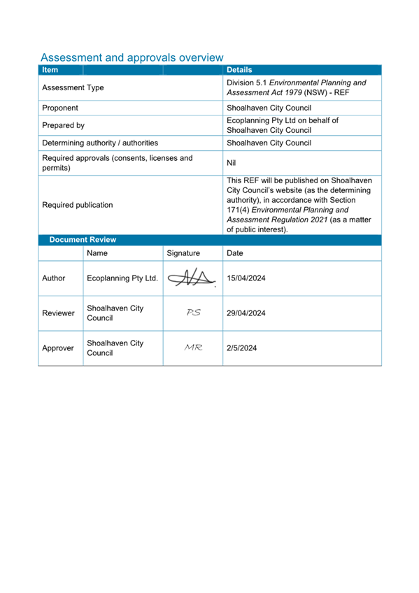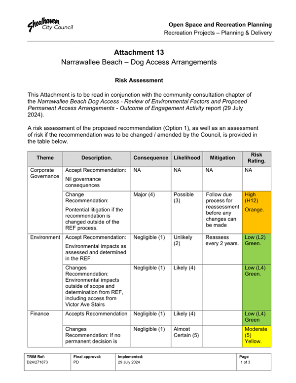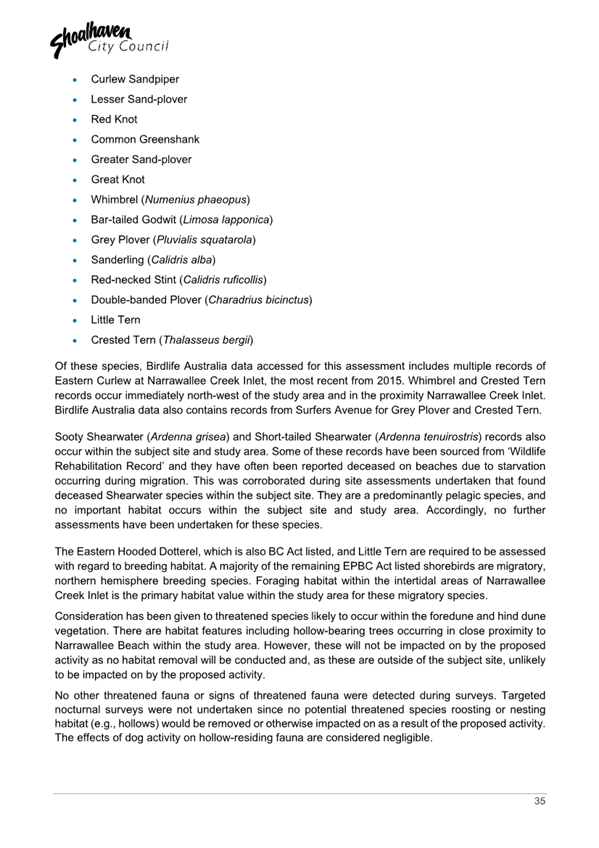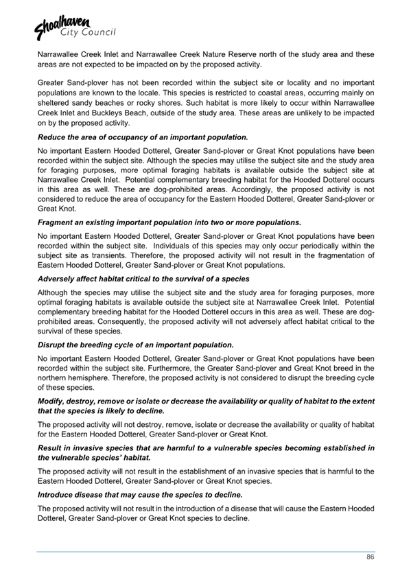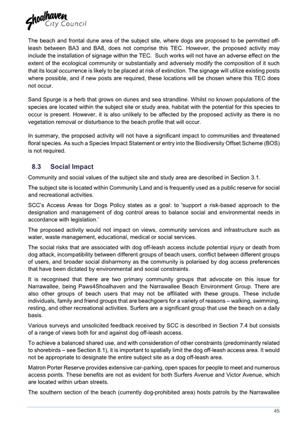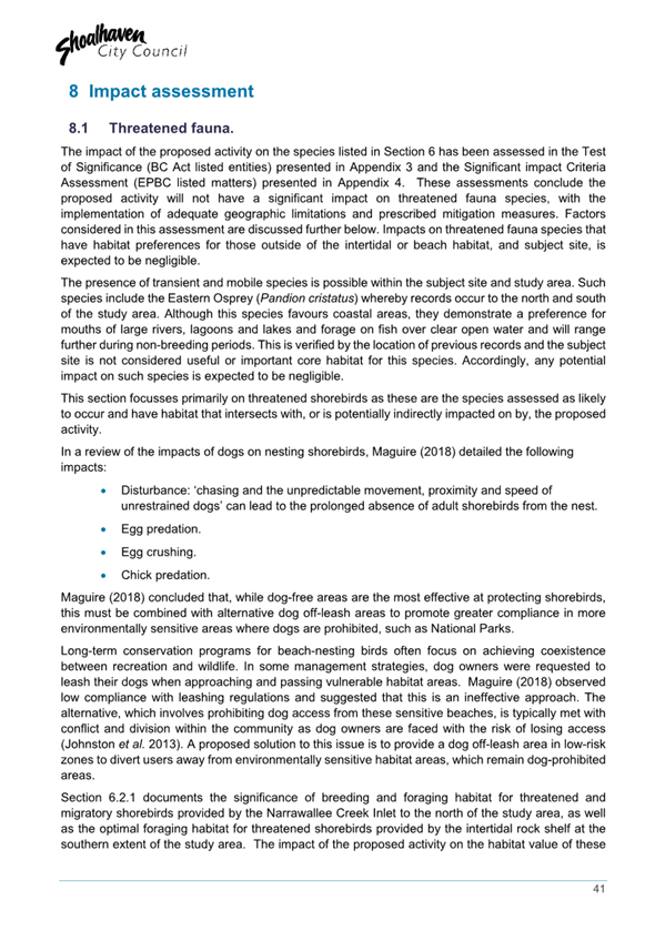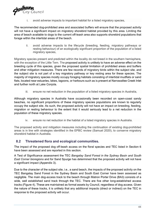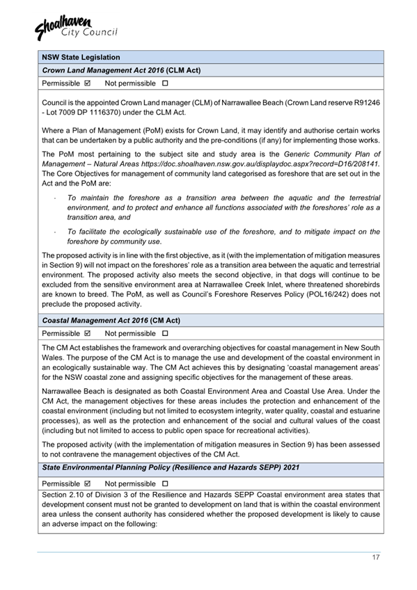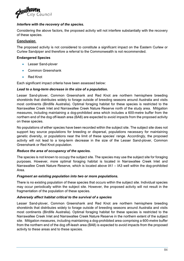 Attachment 1.... Report - Narrawallee Beach Dog Access - Review of Environmental Factors and Proposed Permanent Dog Access Arrangements - Outcome of Engagement Activity (06/11/2023)................. 397
