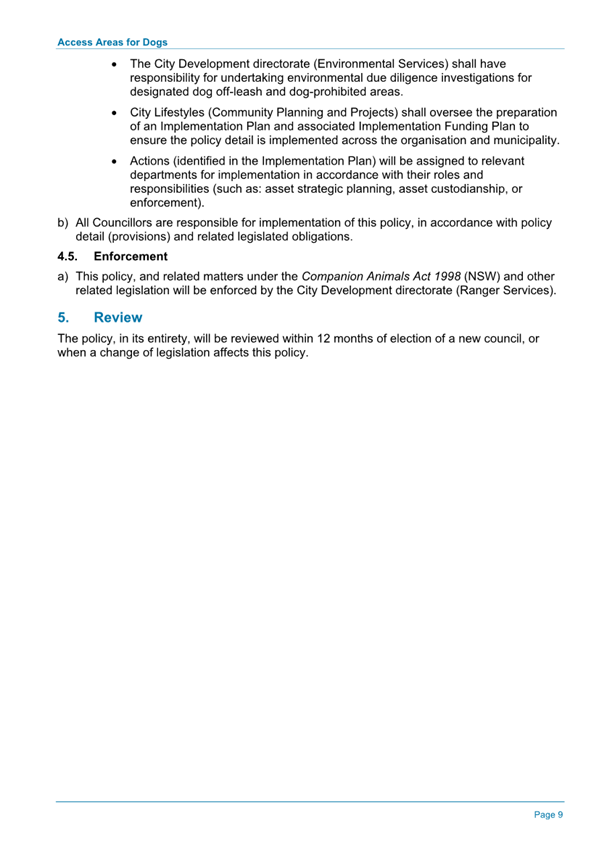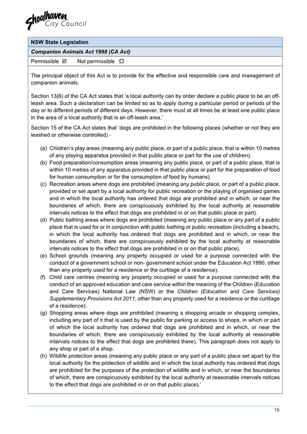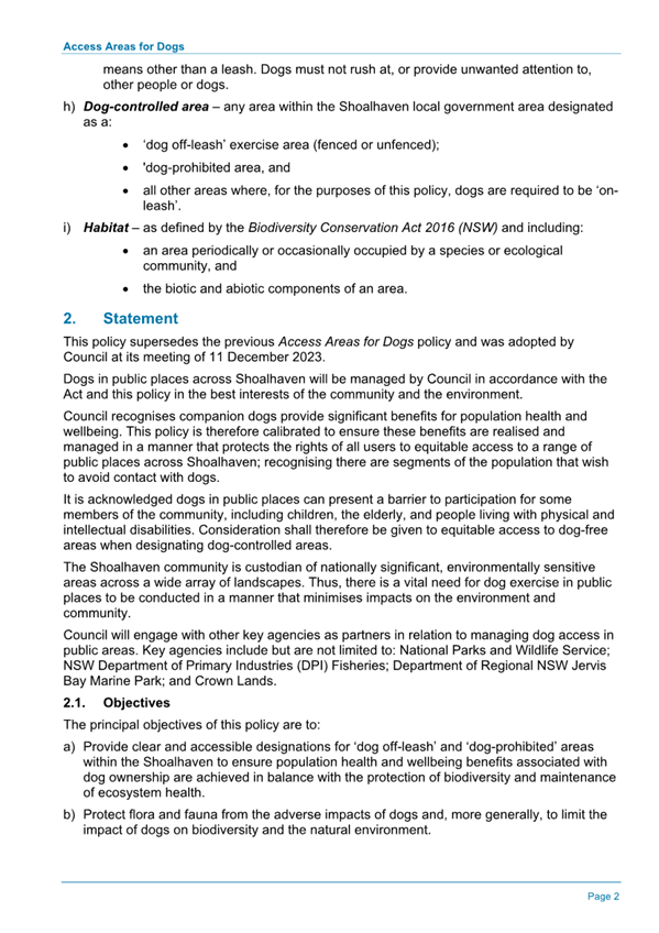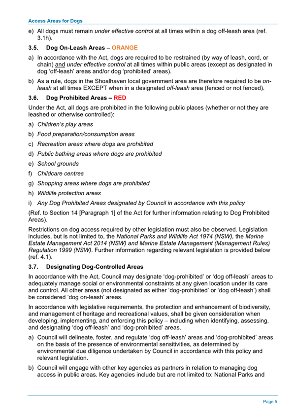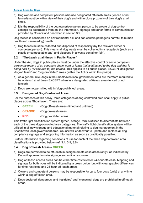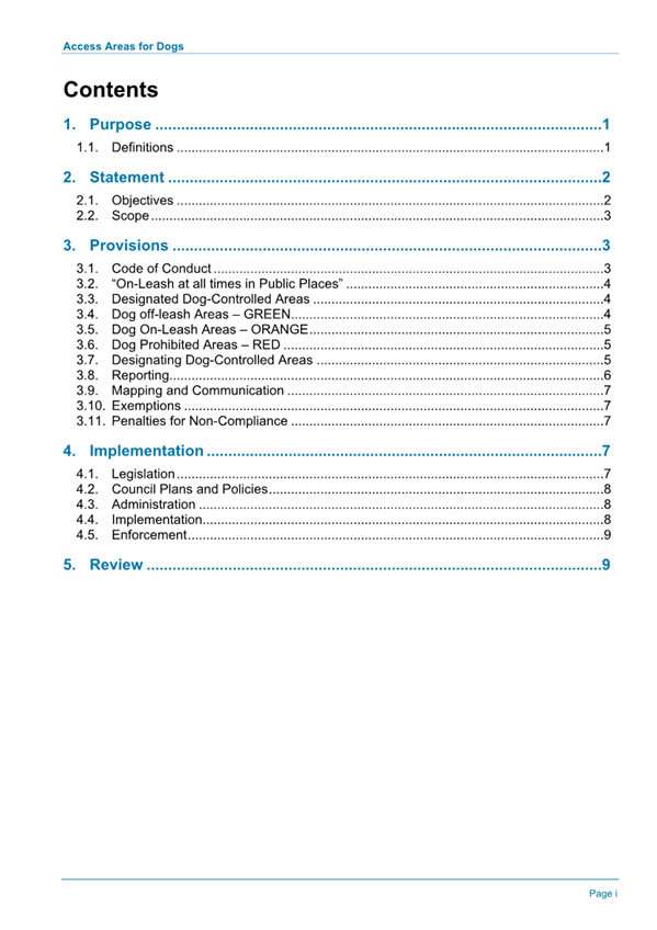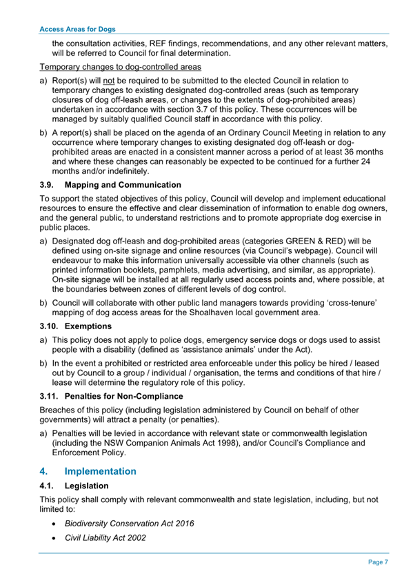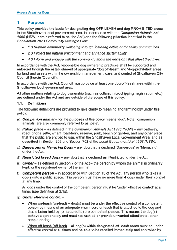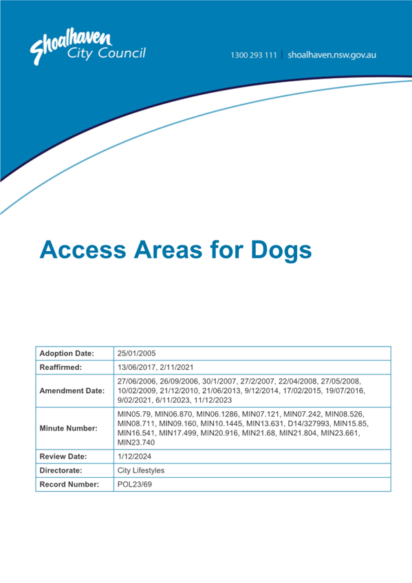 Attachment 2.... Access Areas for Dogs Policy............................................ 409