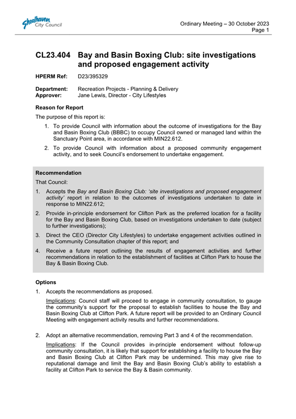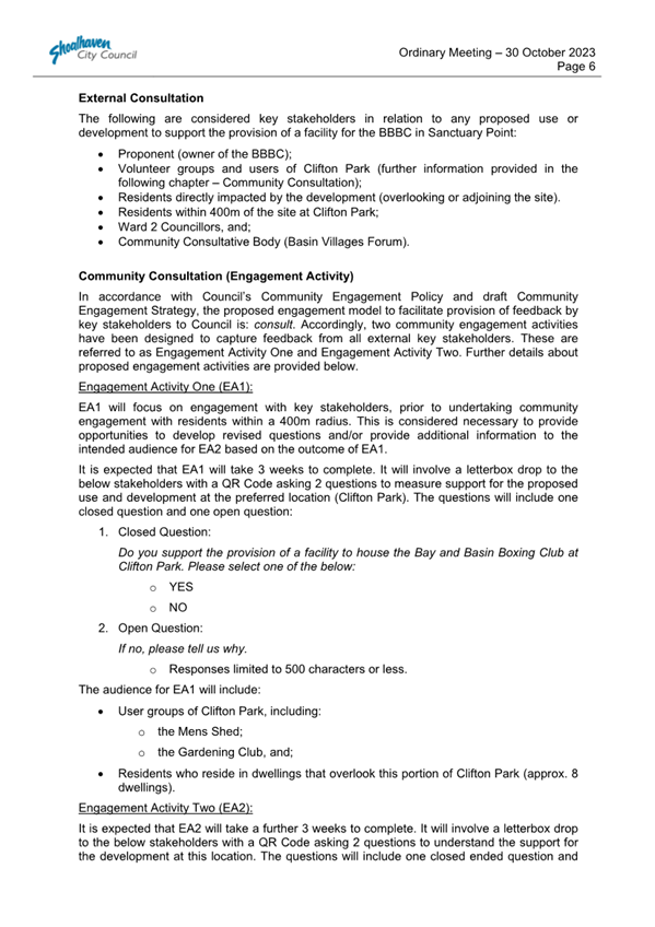 CL24.224.. Bay and Basin Boxing Club - Summary of Engagement Activities