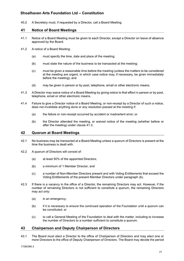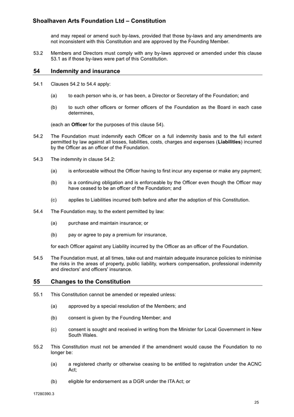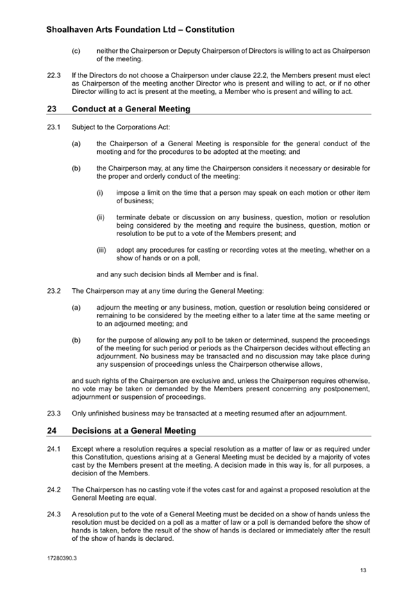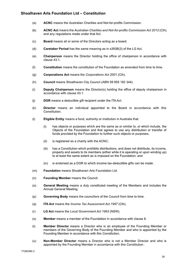 Attachment 1.... Shoalhaven Arts Foundation Limited - Constitution........... 597