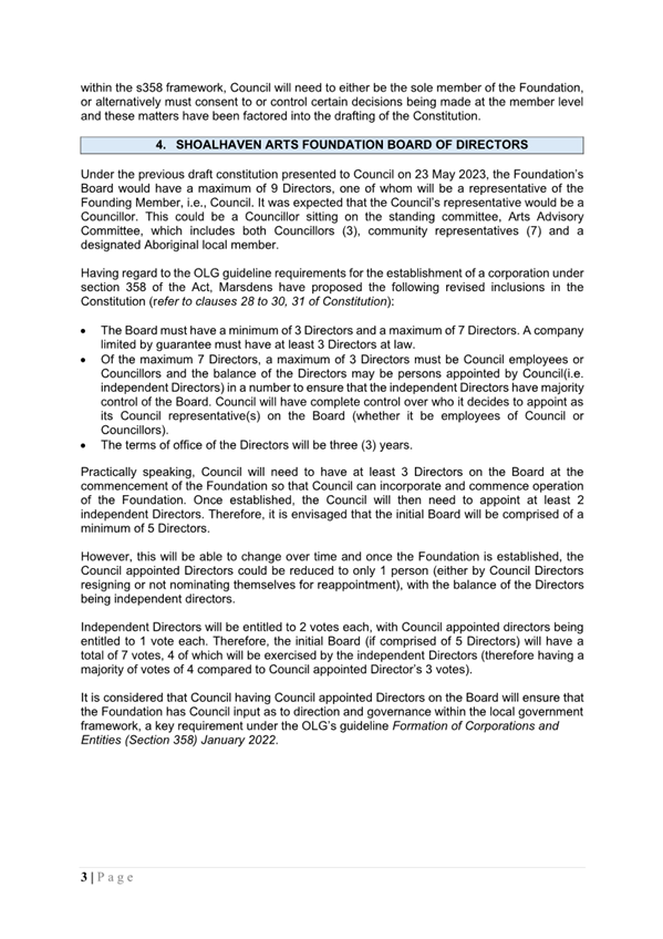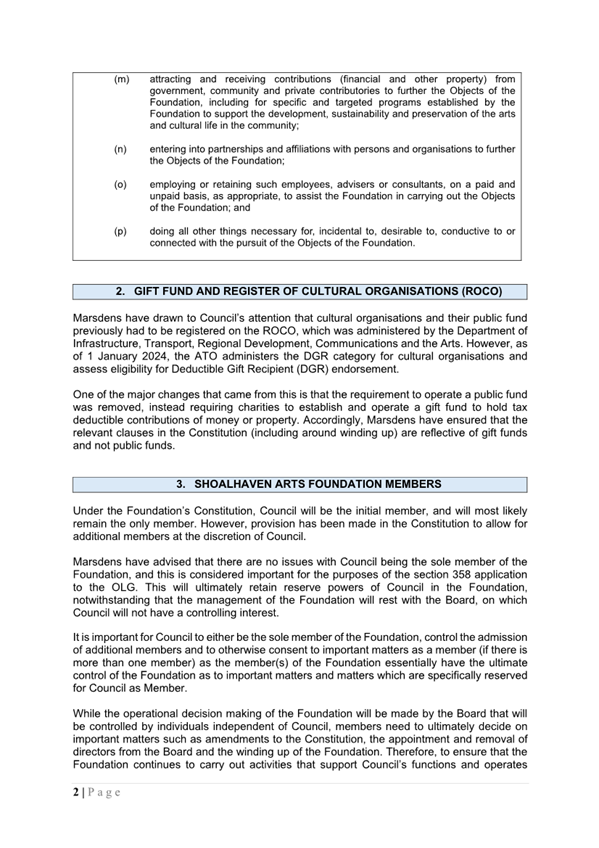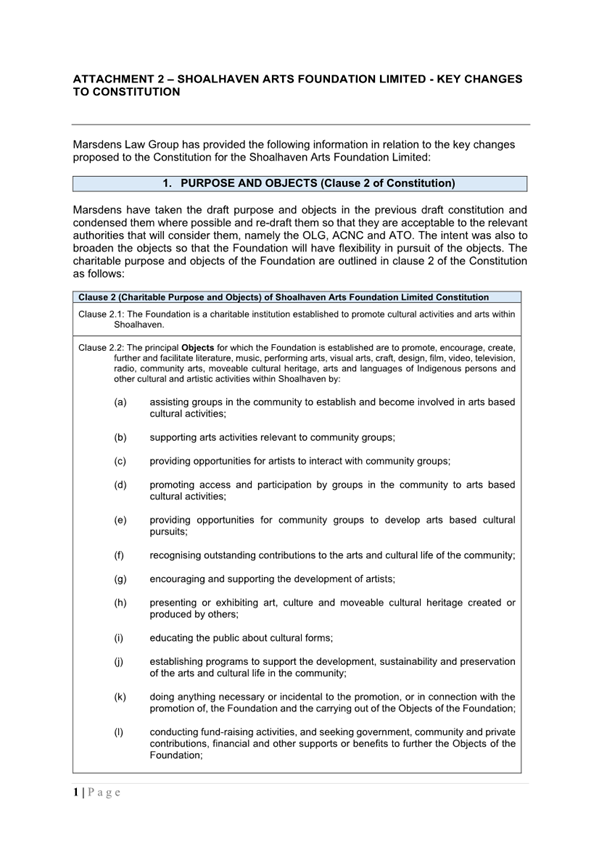 Attachment 2.... Shoalhaven Arts Foundation Limited - Key changes to Constitution............................................................................................ 627