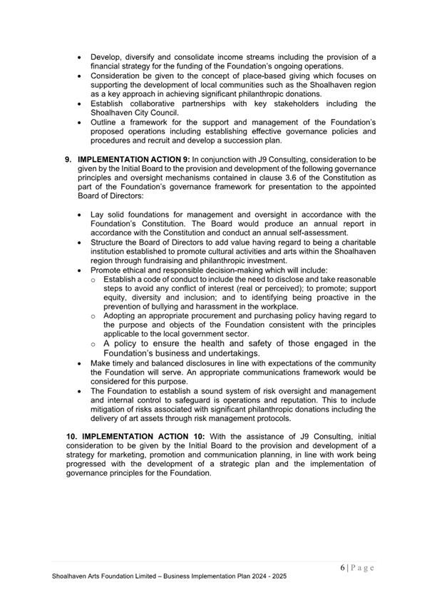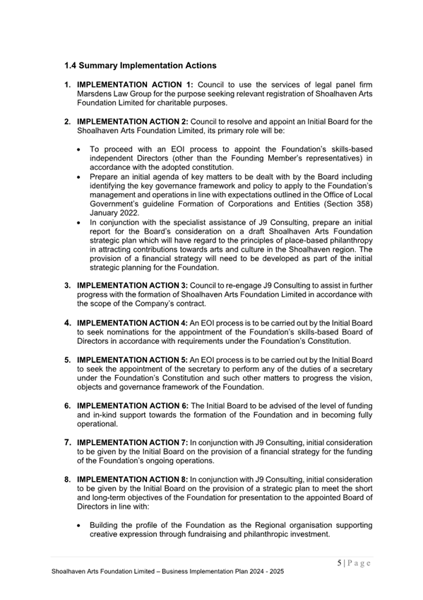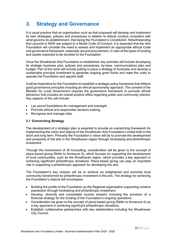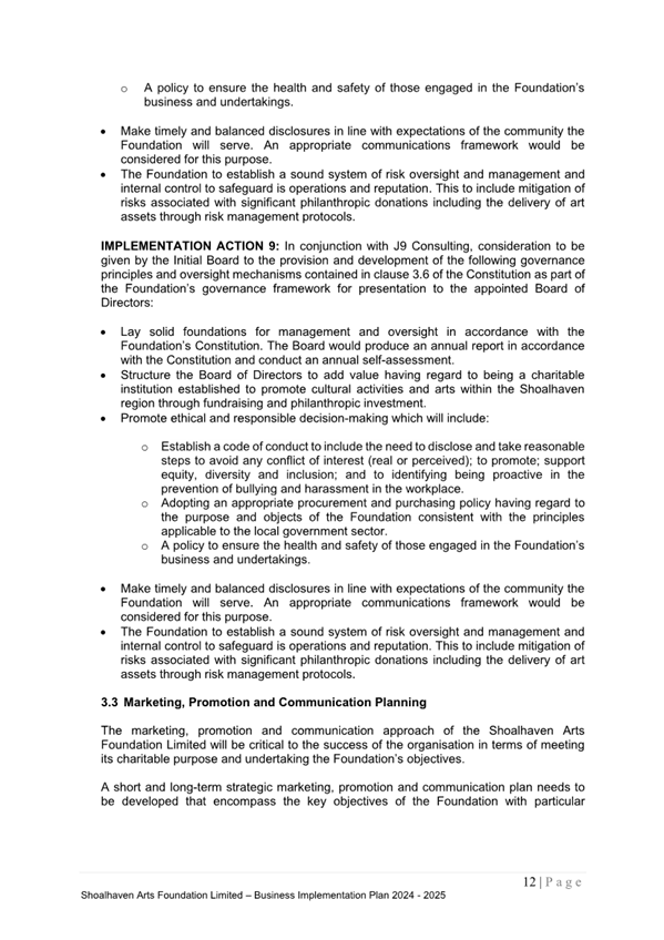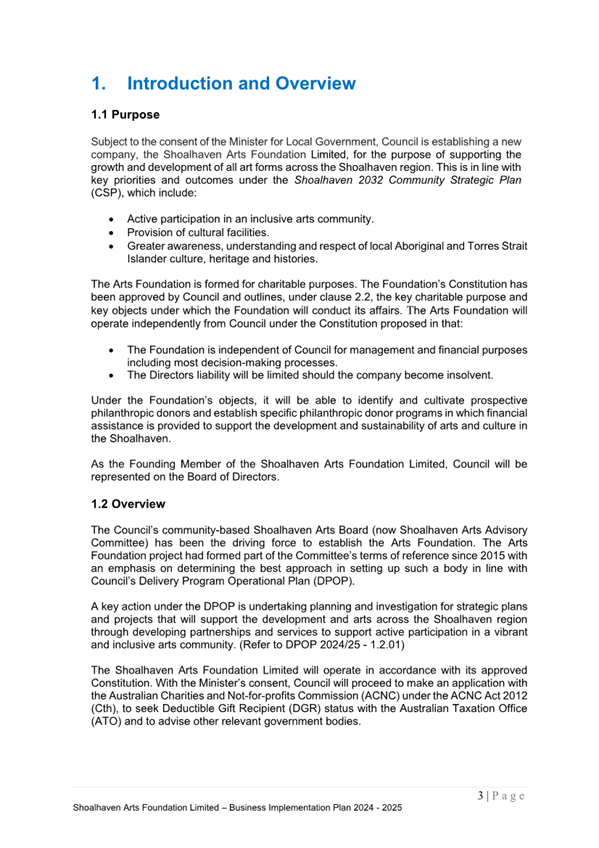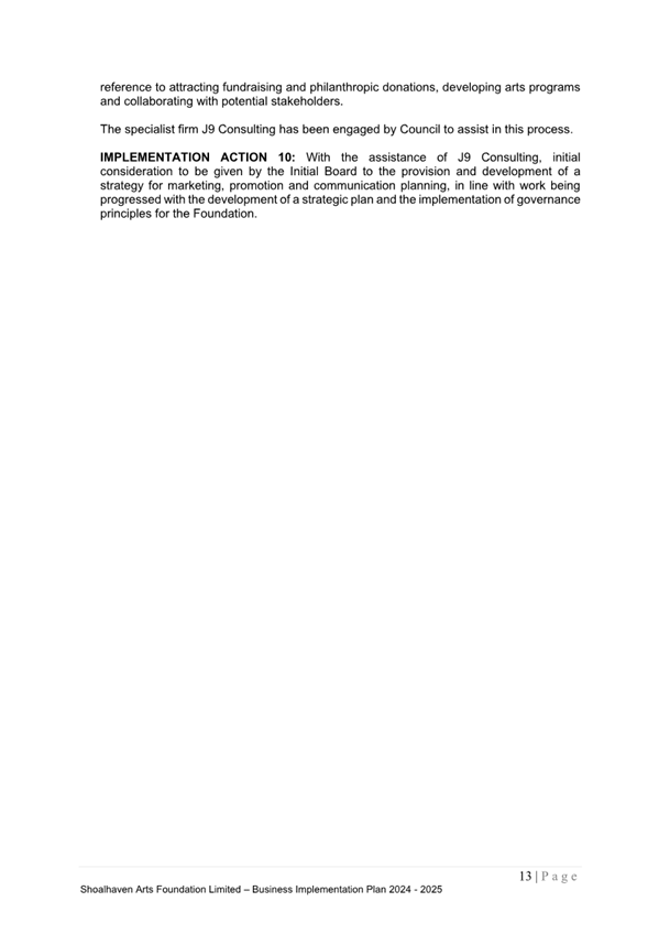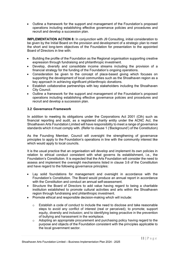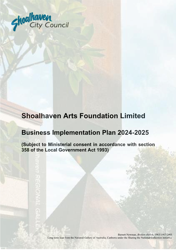 Attachment 4.... Shoalhaven Arts Foundation Limited - Business Implementation Plan............................................................................................ 659