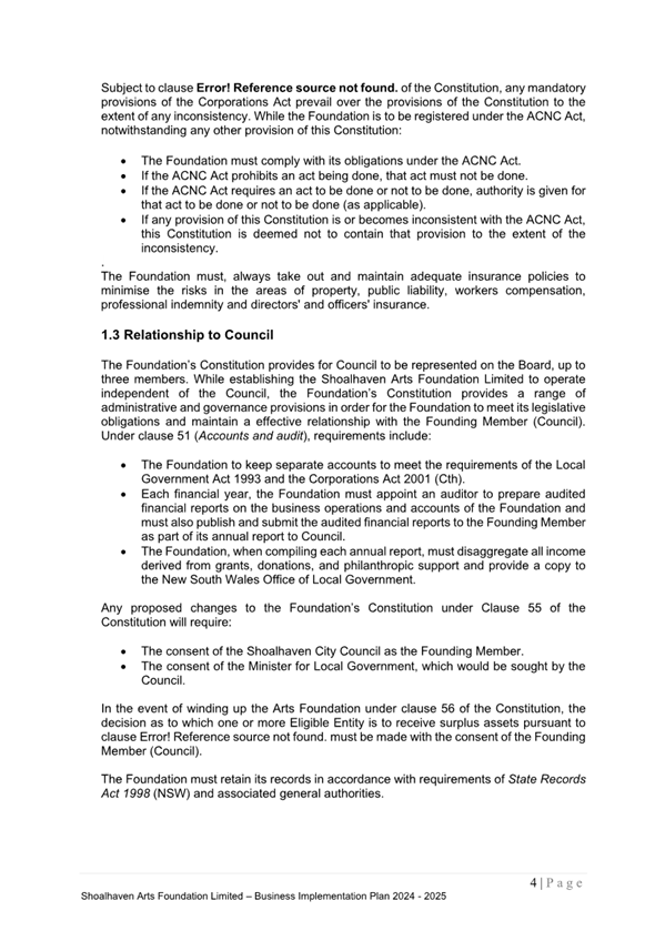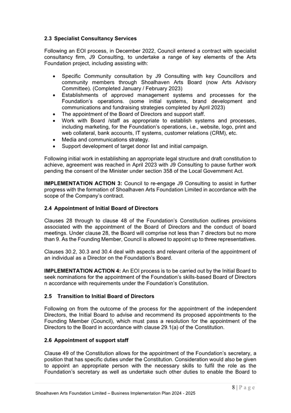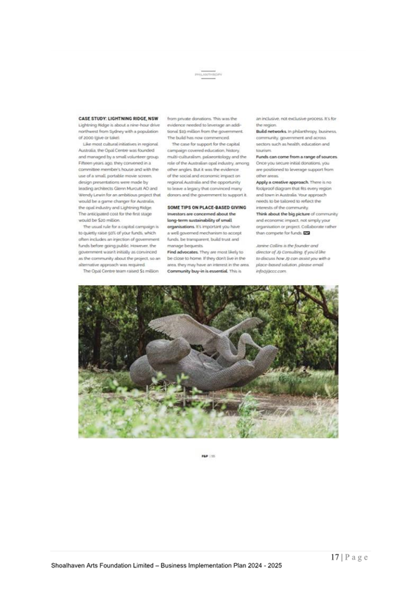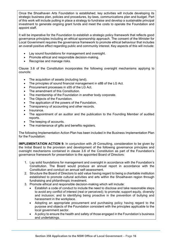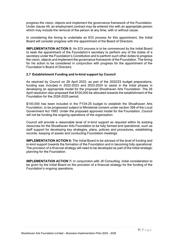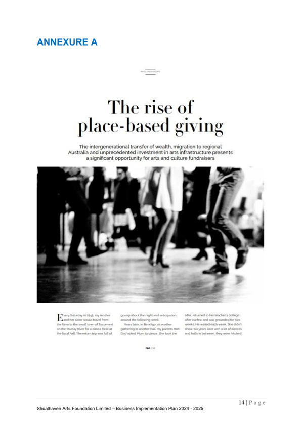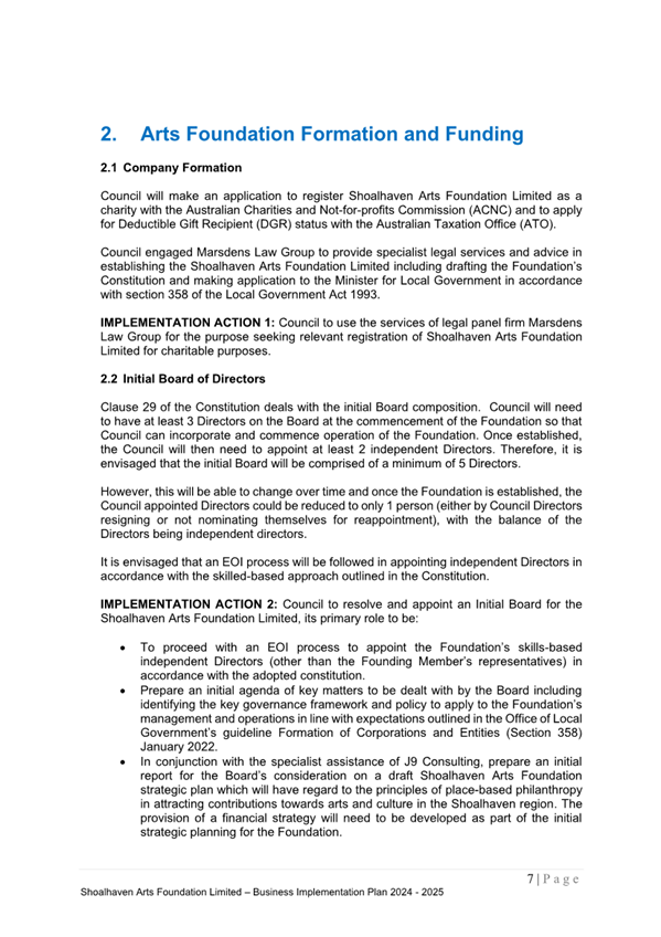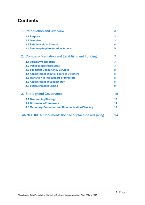 Attachment 4.... Shoalhaven Arts Foundation Limited - Business Implementation Plan............................................................................................ 659
