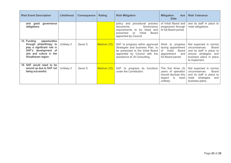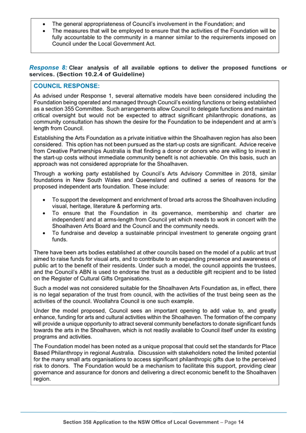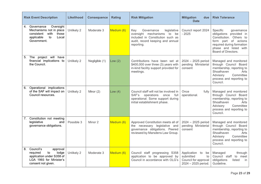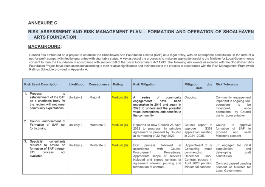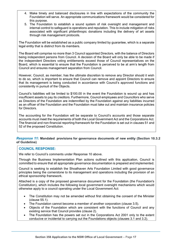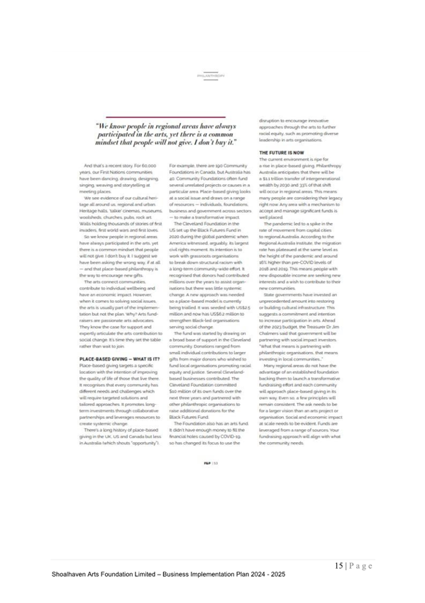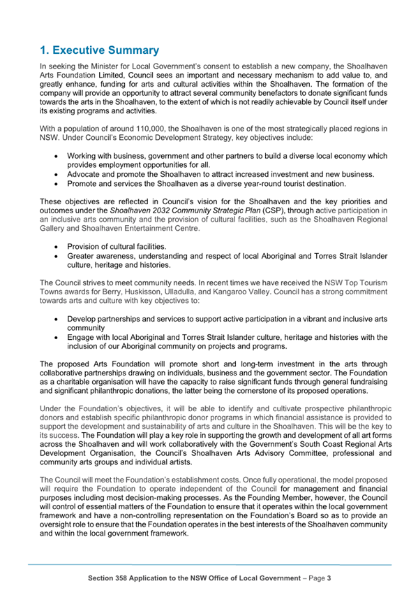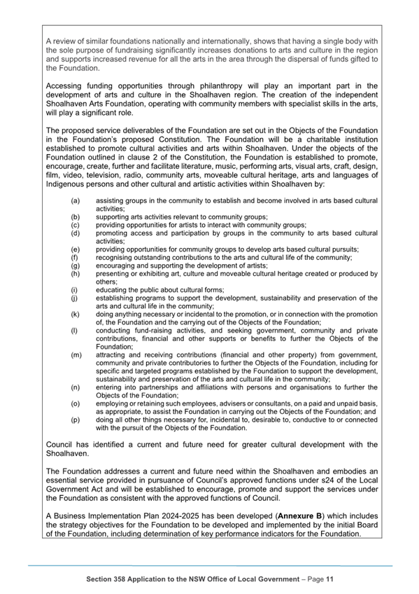 Attachment 4.... Shoalhaven Arts Foundation Limited - Business Implementation Plan............................................................................................ 659