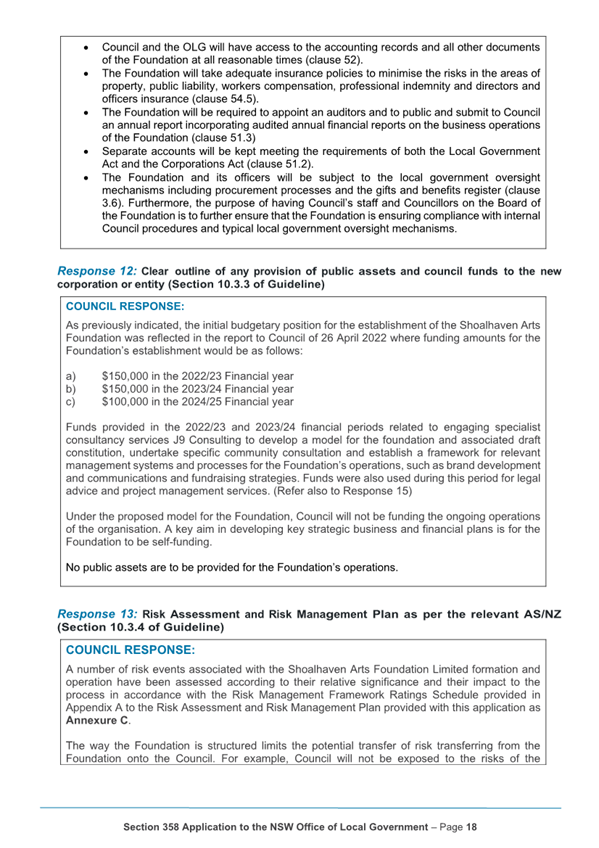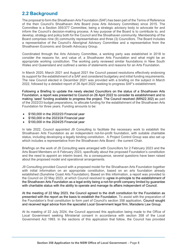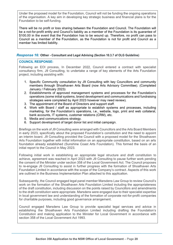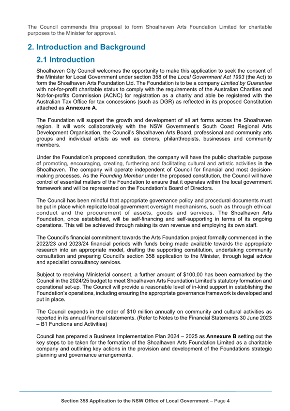 CL24.230.. Shoalhaven Arts Foundation Limited - Formation as a Not-for-Profit Public Company in Accordance With Section 358 of the NSW Local Government Act 1993