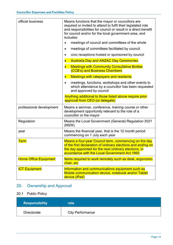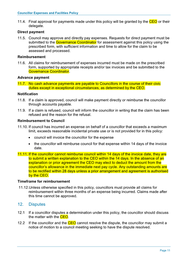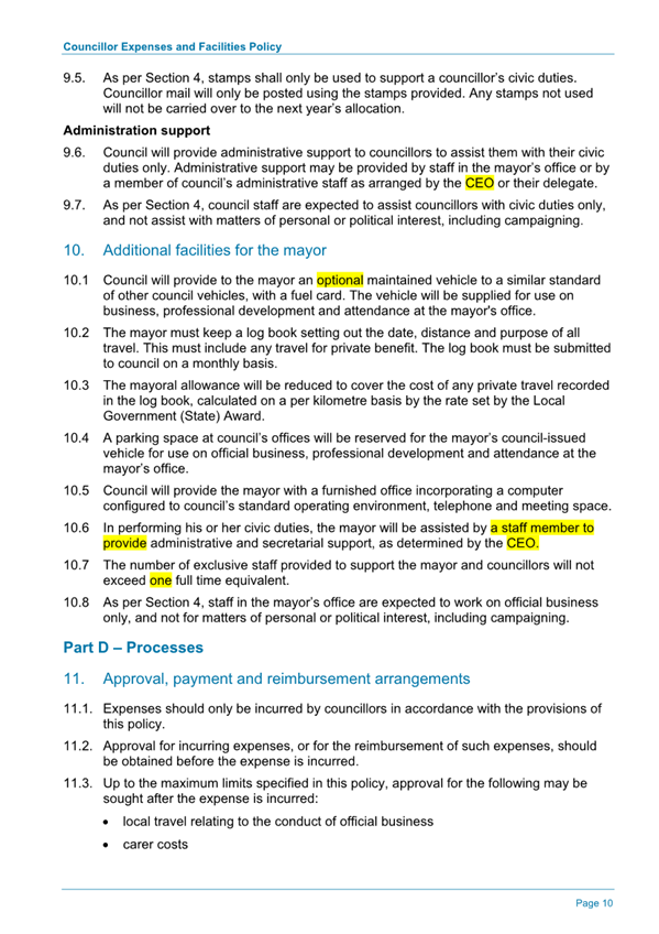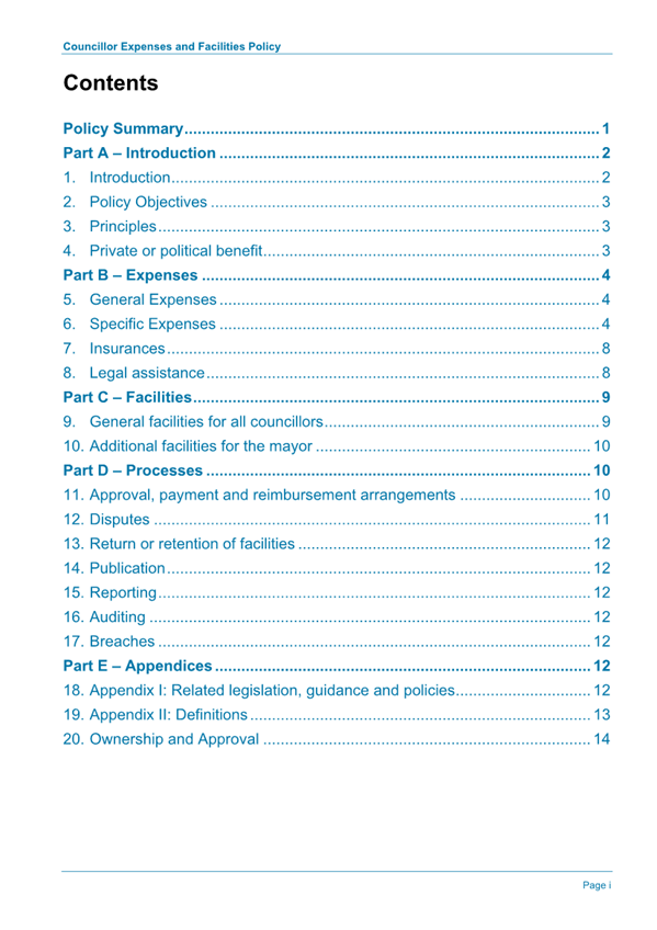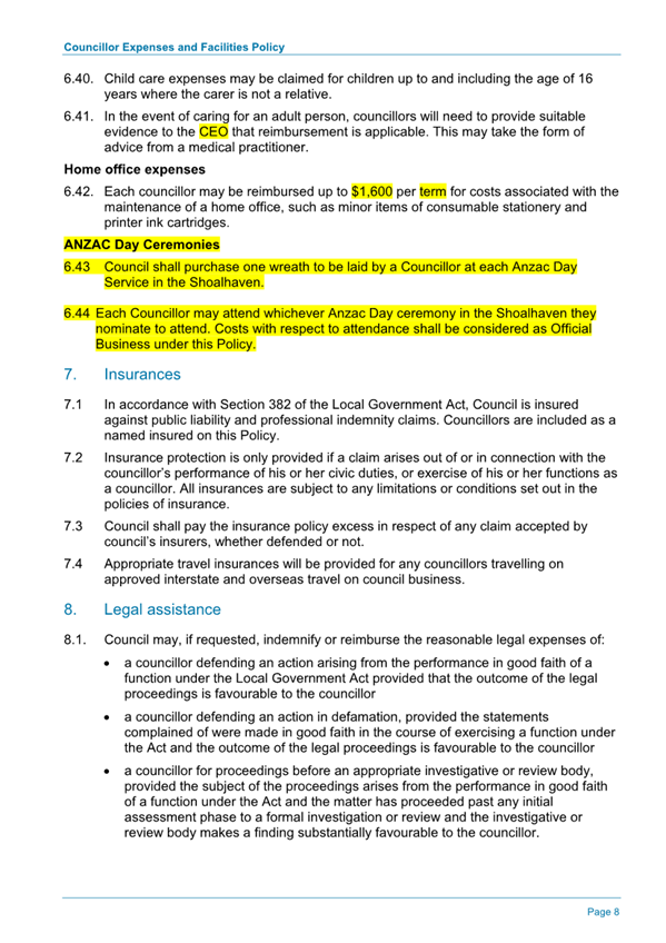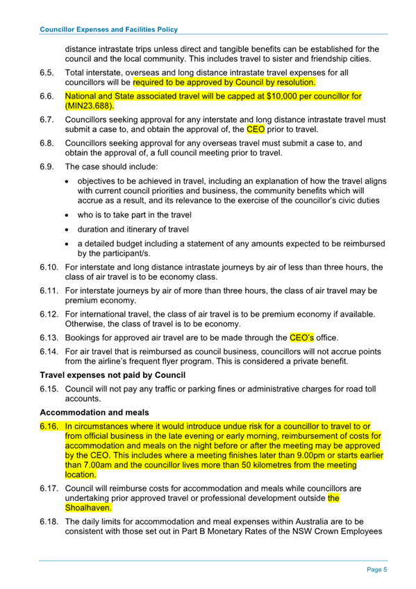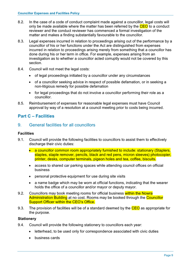 Attachment 1.... DRAFT - Councillor Expenses and Facilities Policy.......... 174