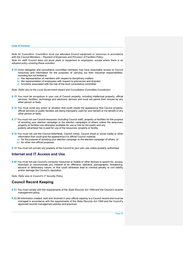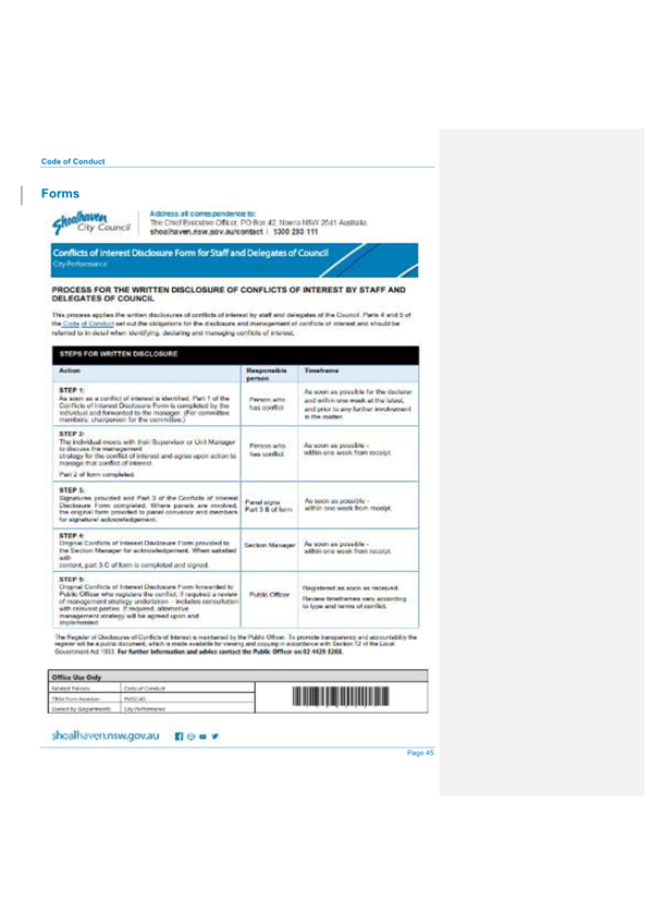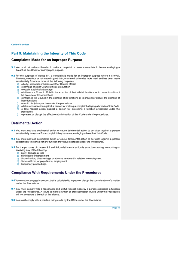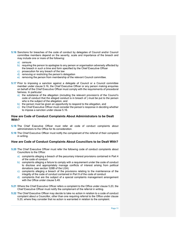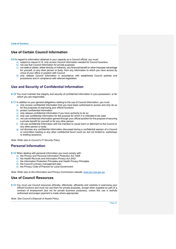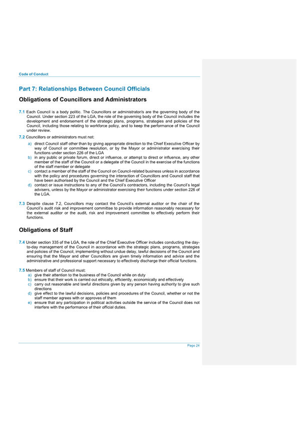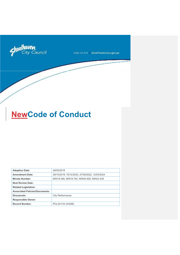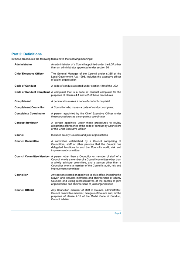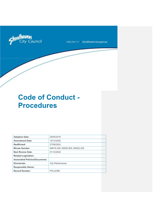 Attachment 2.... Code of Conduct - Procedures........................................... 242