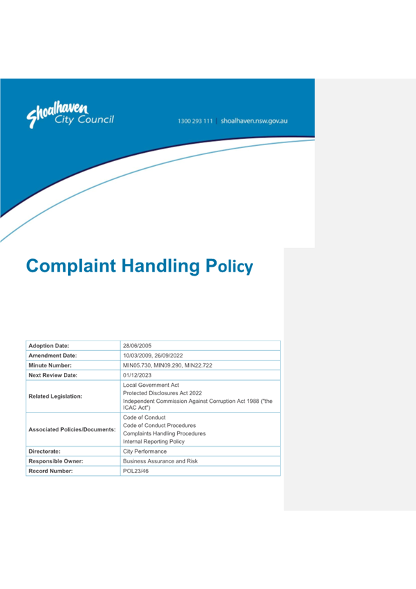 CL25.54.... Complaint Handling Policy