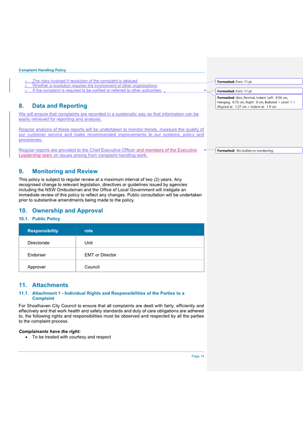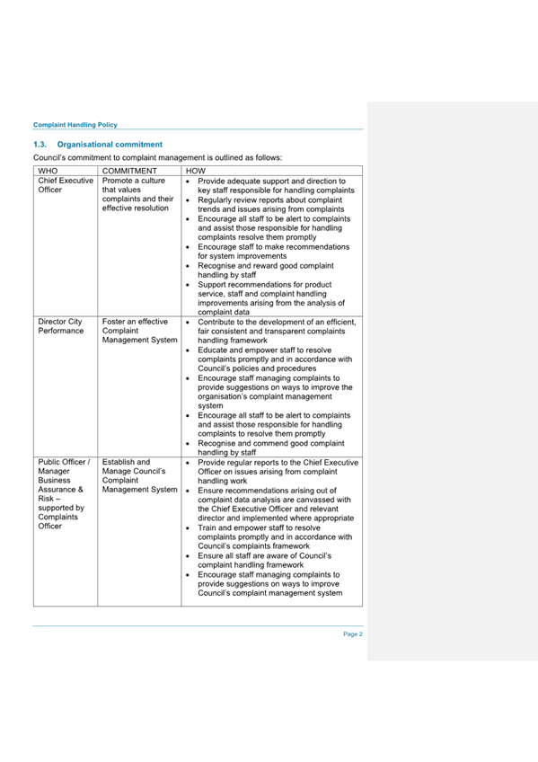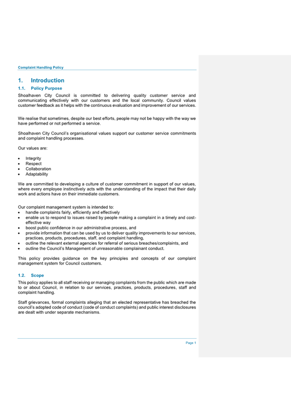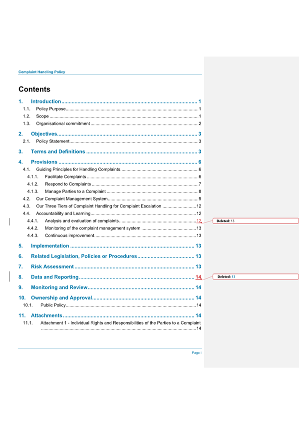 Attachment 1.... Complaint Handling Policy.................................................. 275