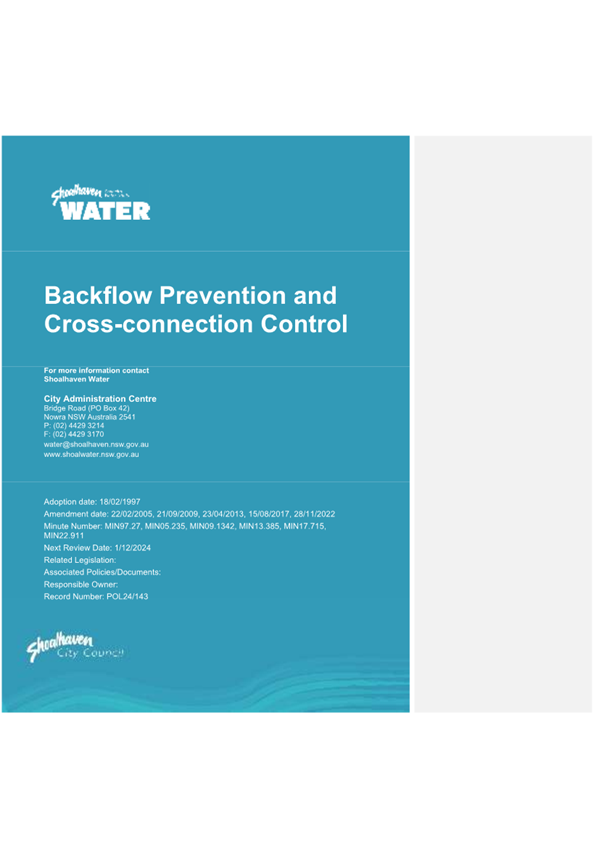 CL25.61 Policy Review - Backflow Prevention and Cross Connection Control