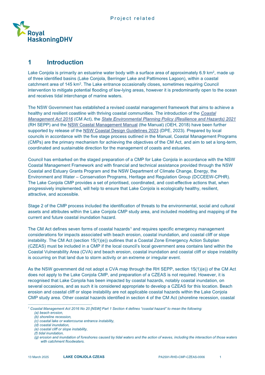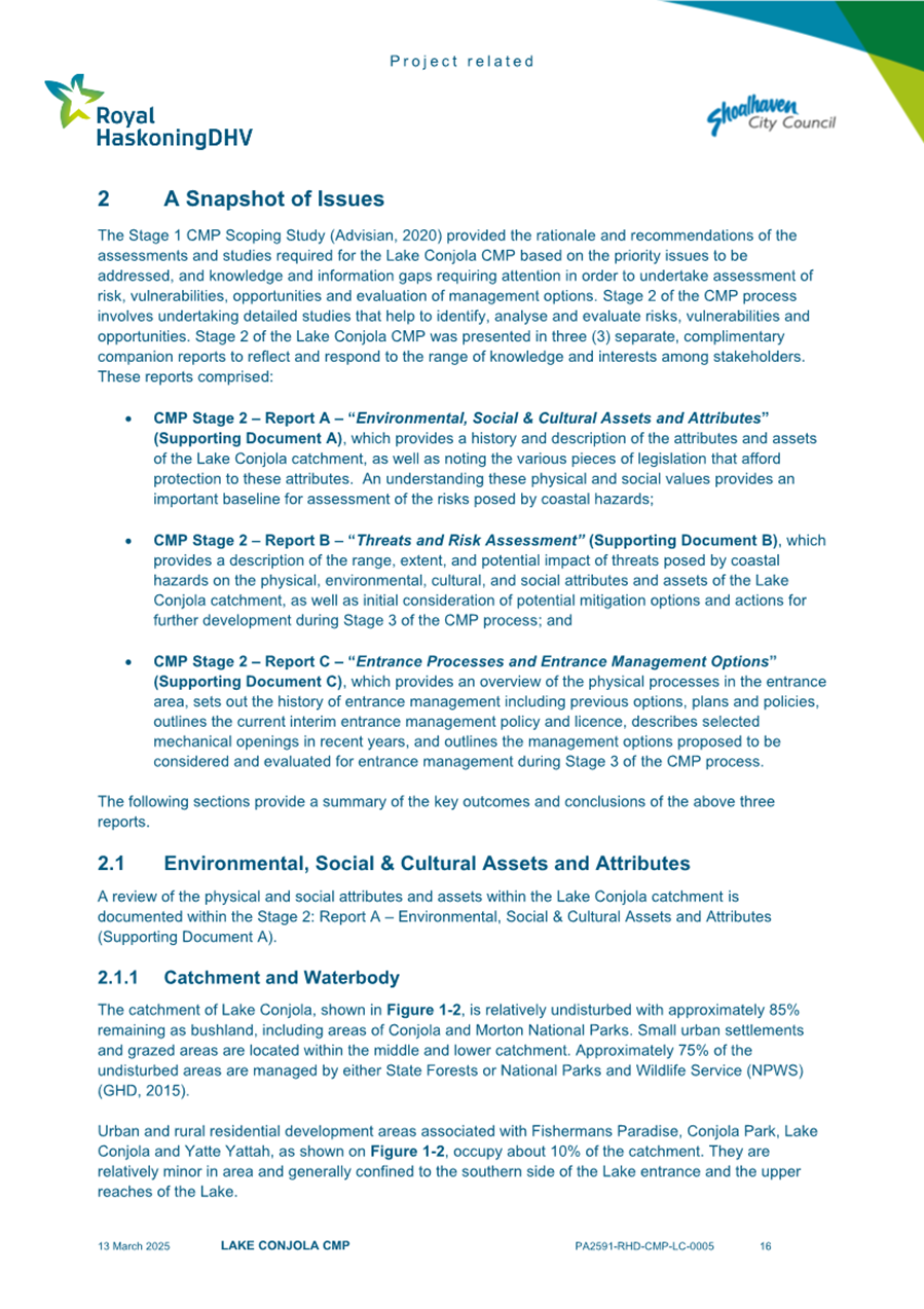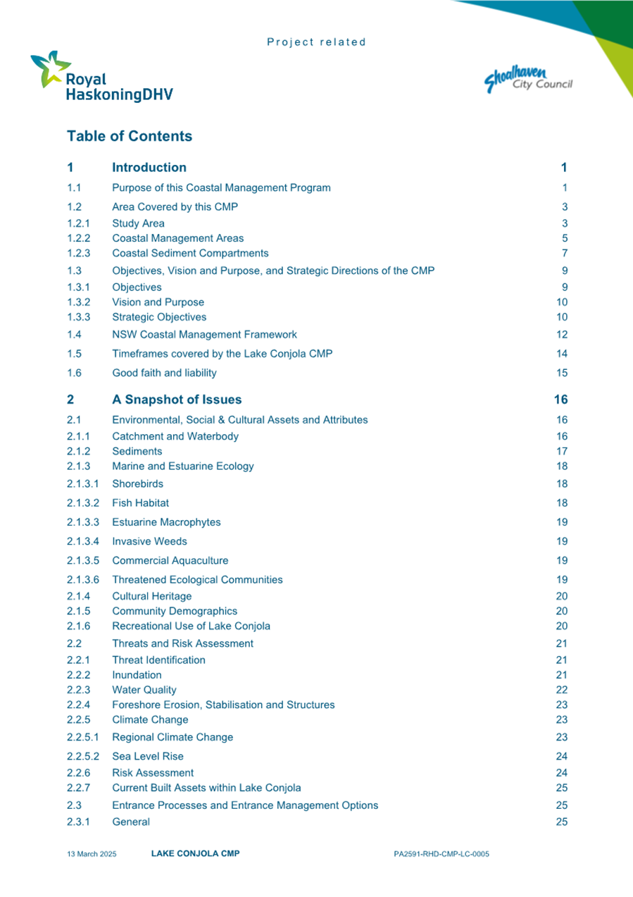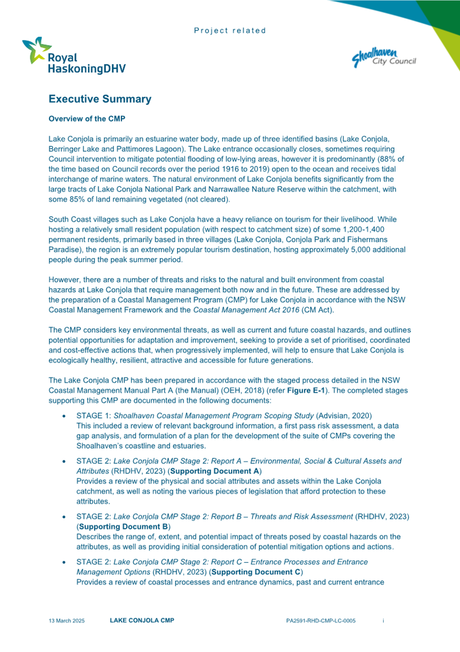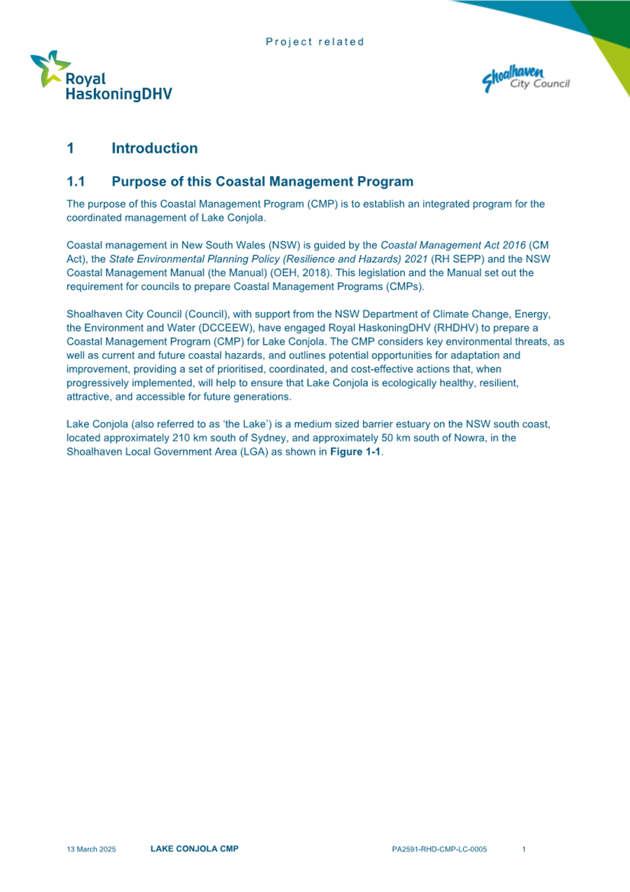 Attachment 1.... Final Draft Lake Conjola Coastal Management Program - Full Document....................... 2