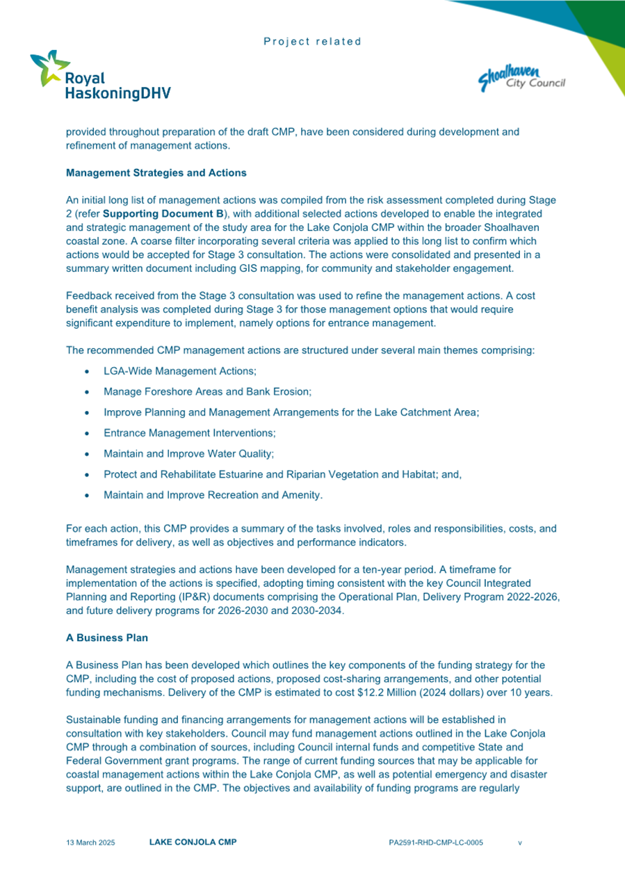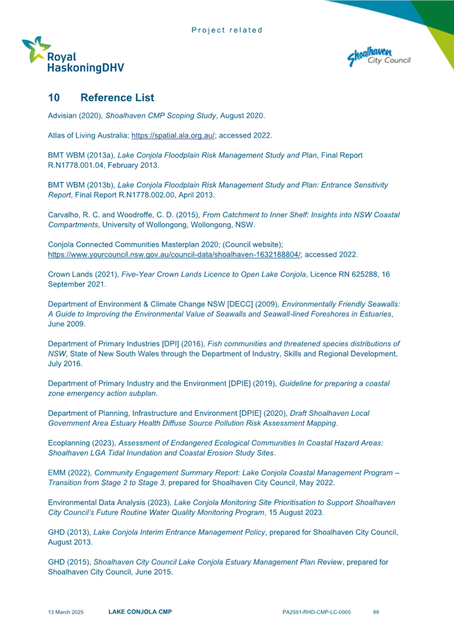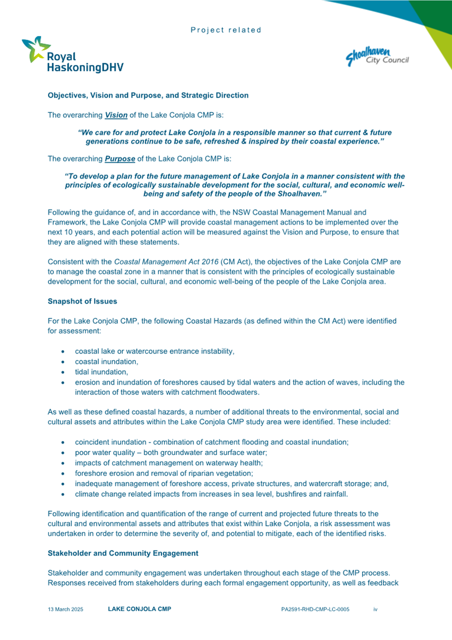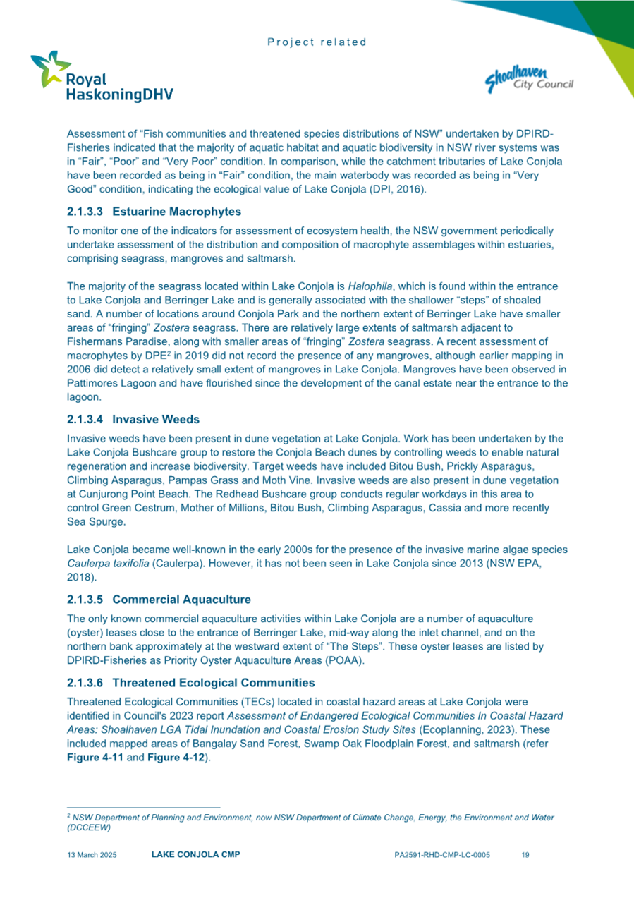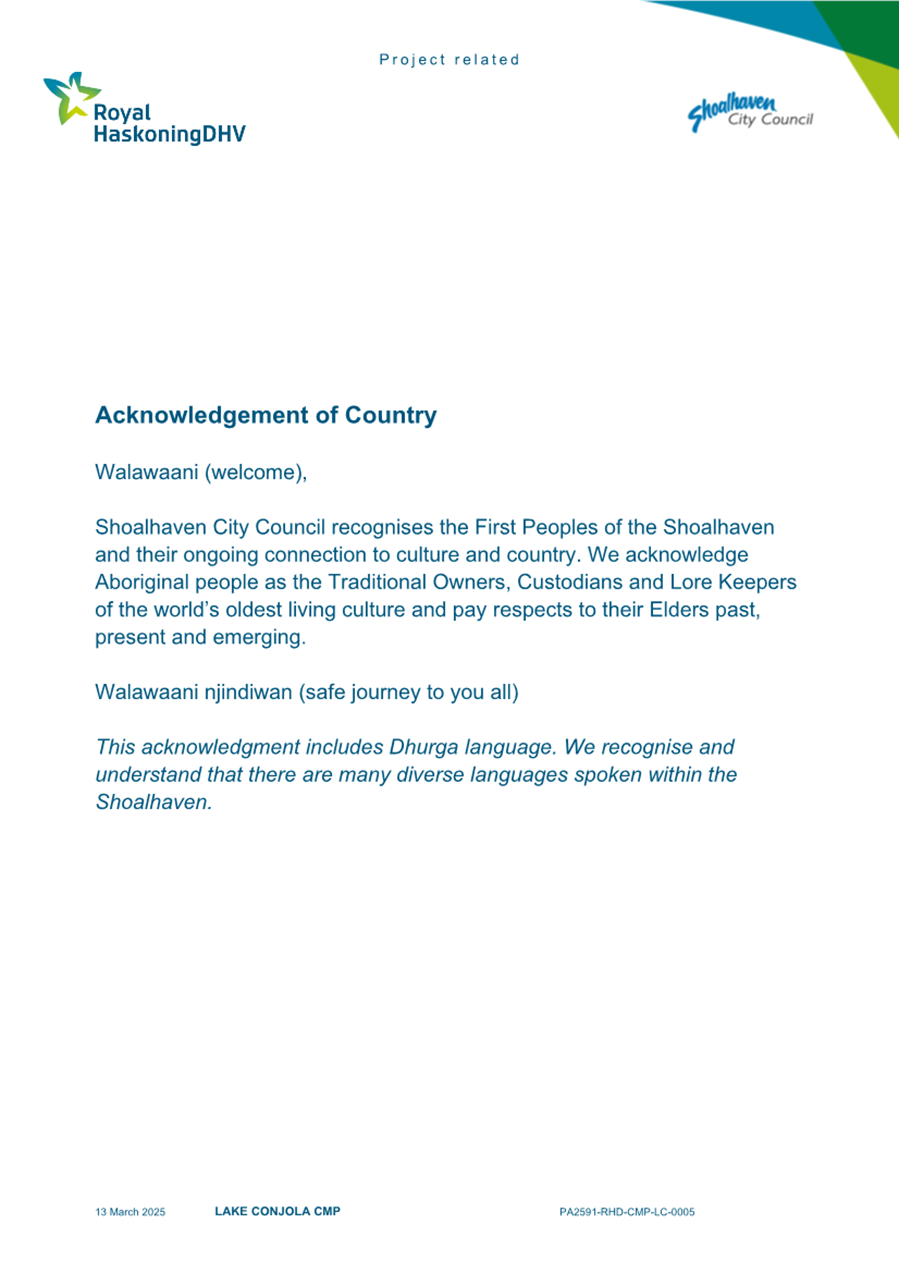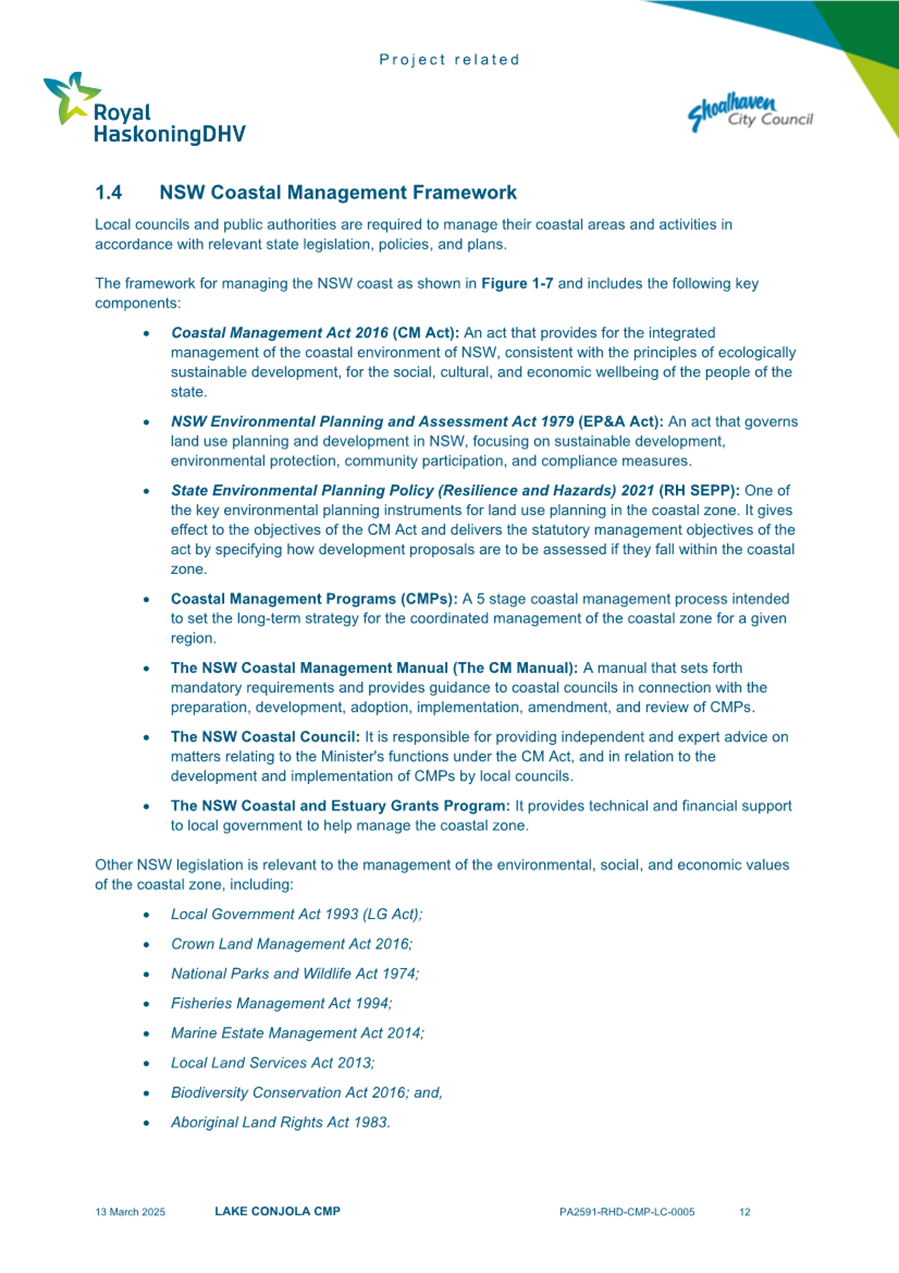 Attachment 1.... Final Draft Lake Conjola Coastal Management Program - Full Document....................... 2