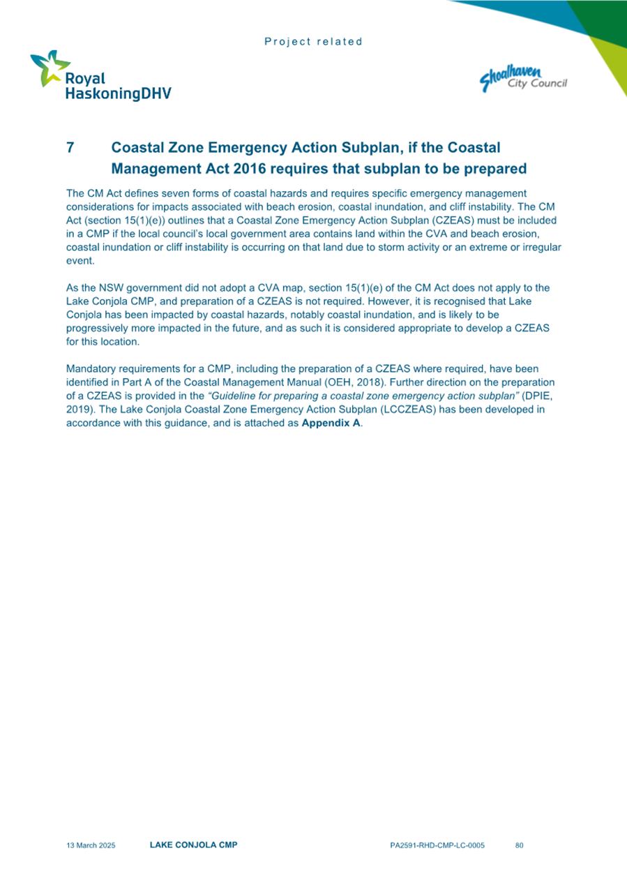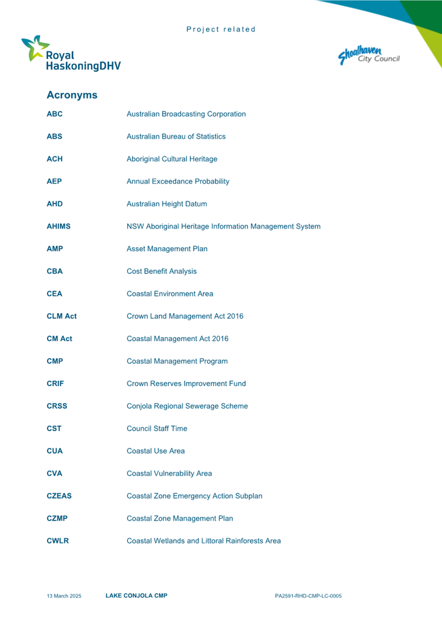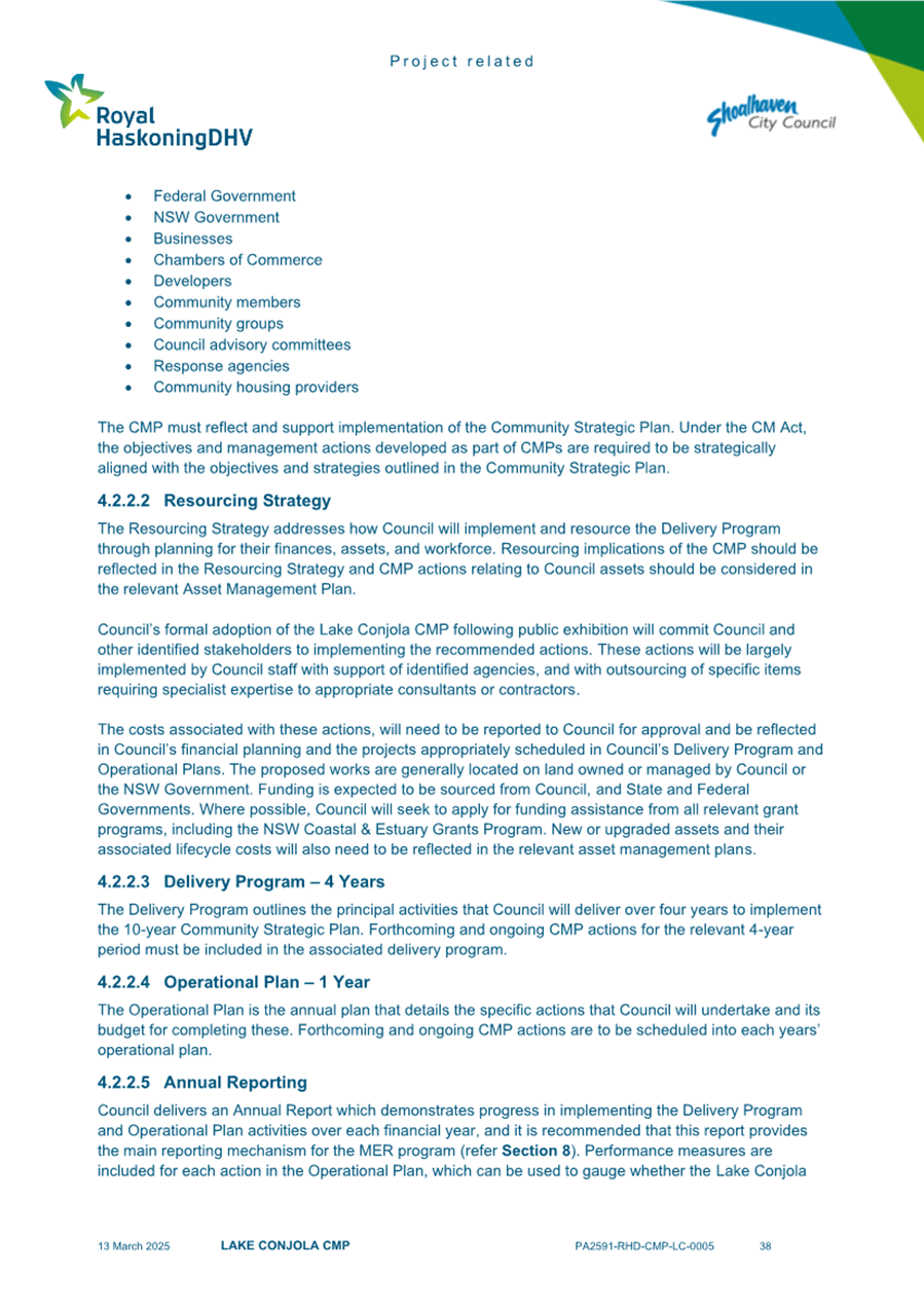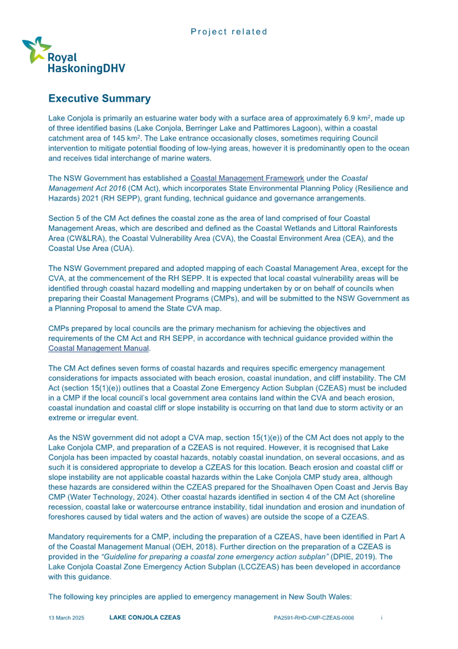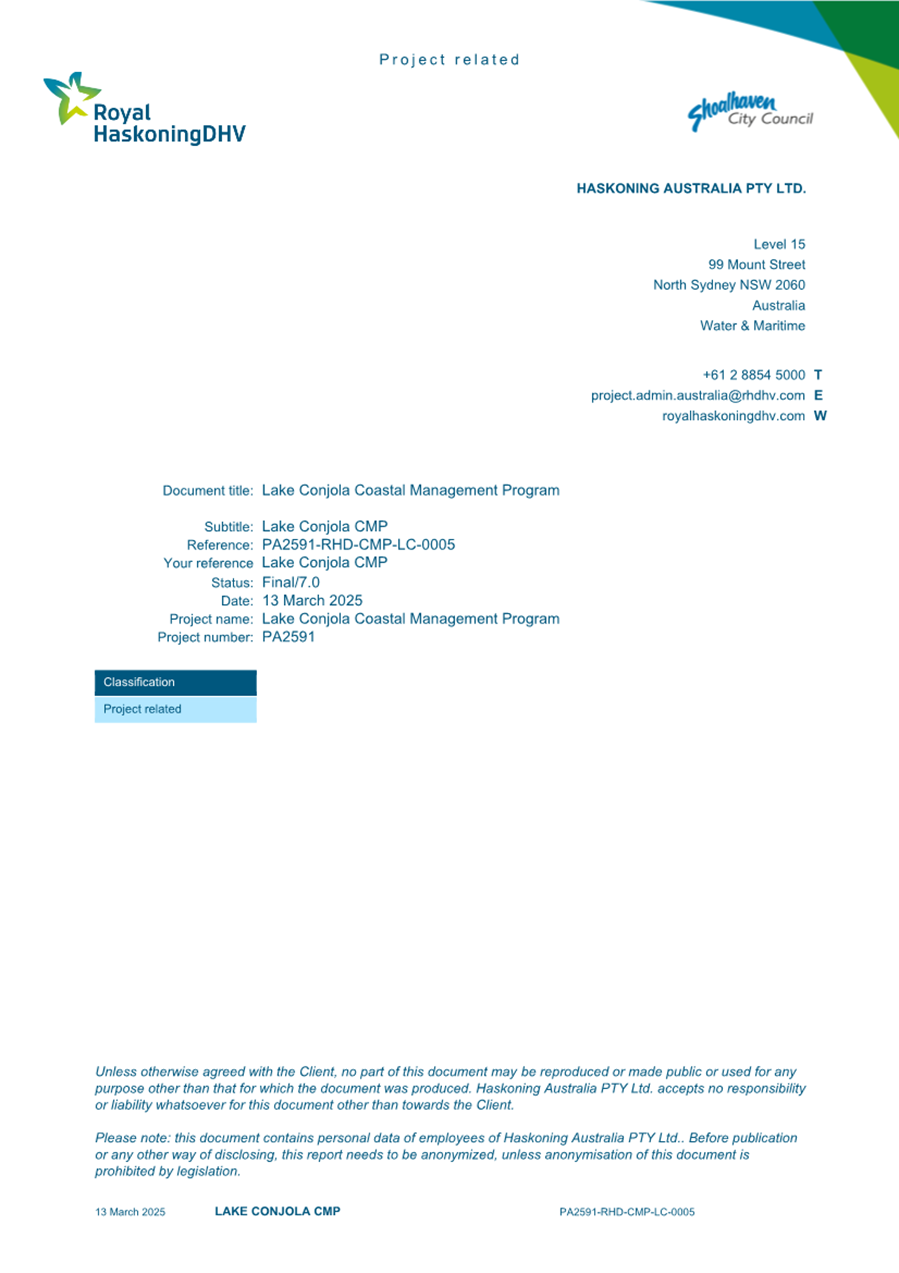 Attachment 1.... Final Draft Lake Conjola Coastal Management Program - Full Document....................... 2