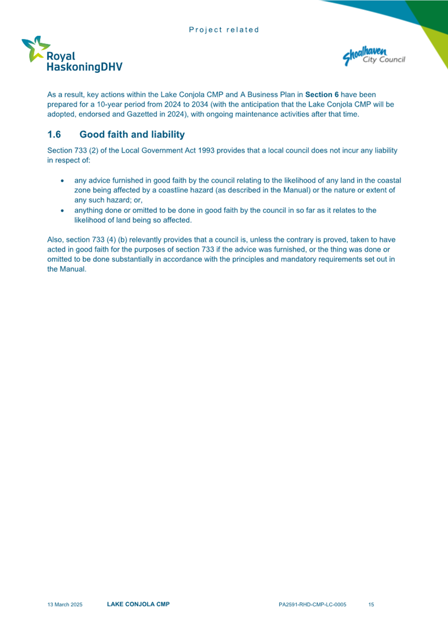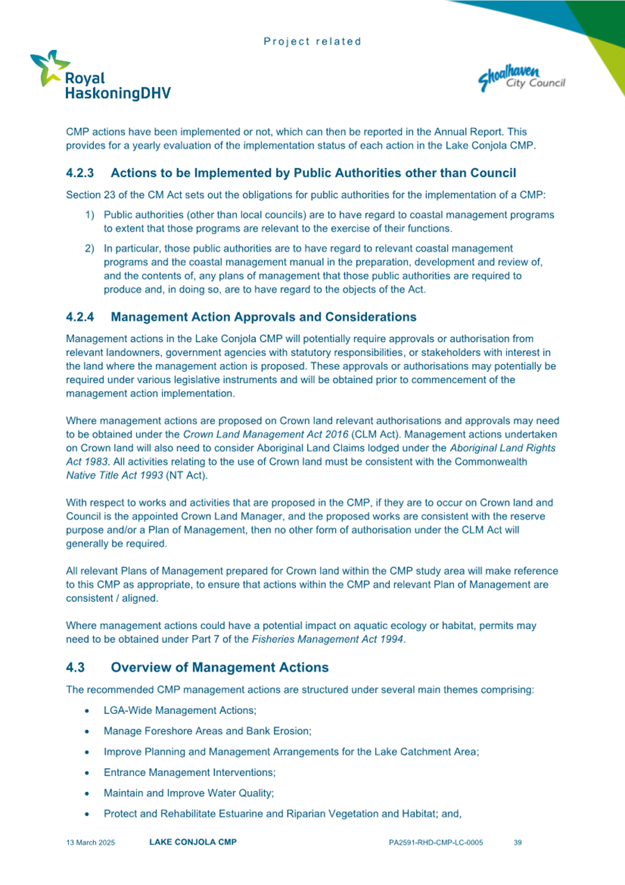 SC25.1 Adoption of the Lake Conjola Coastal Management Program