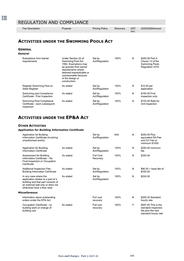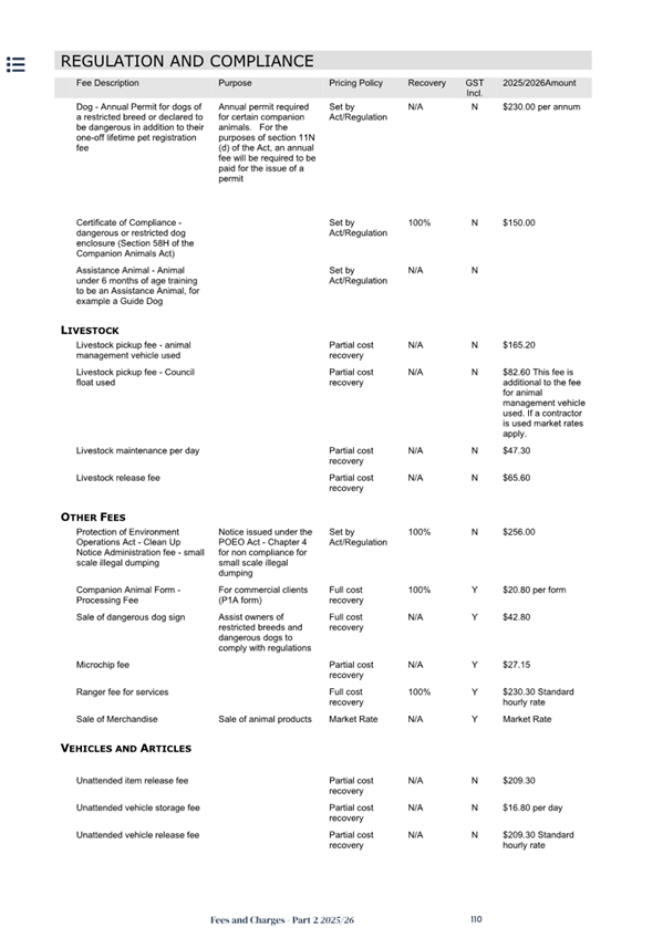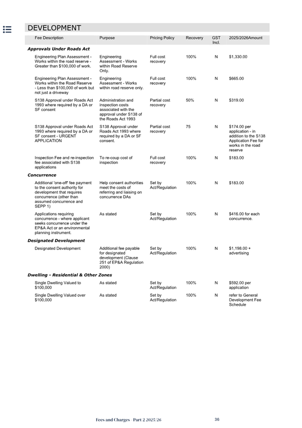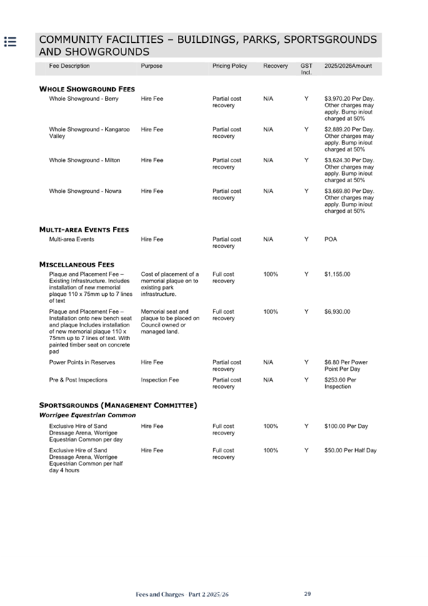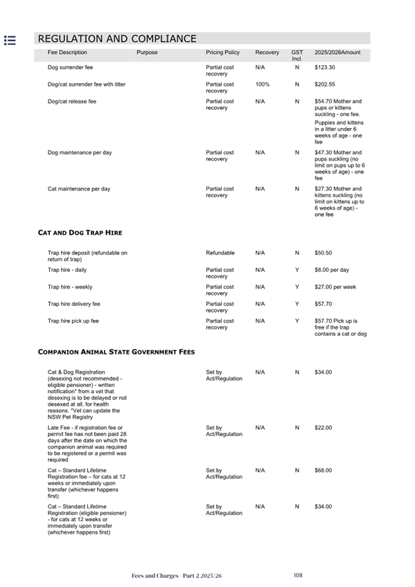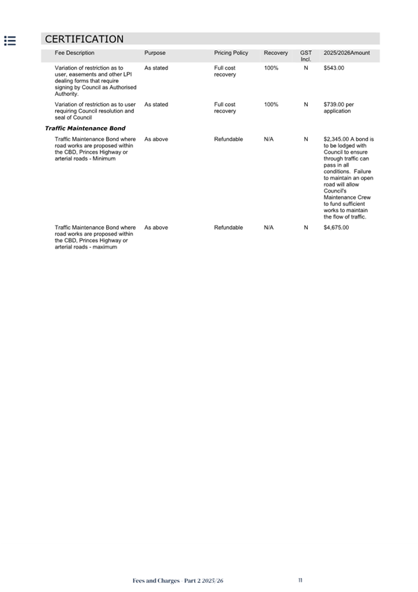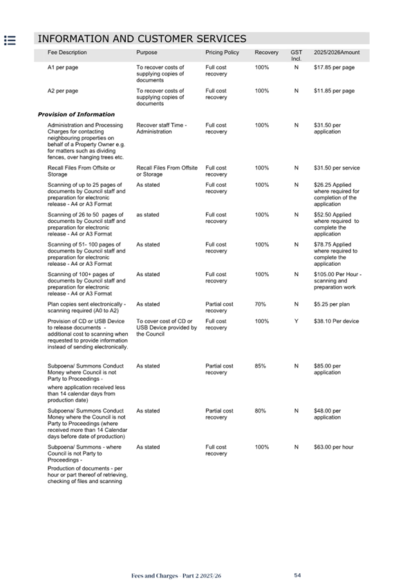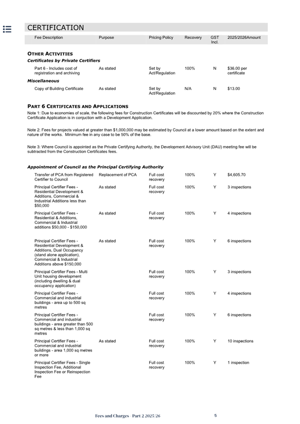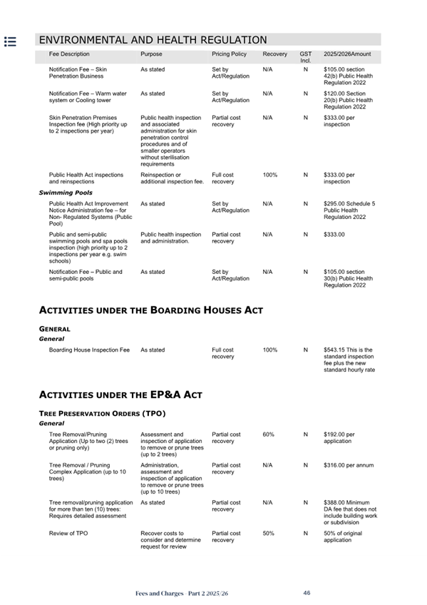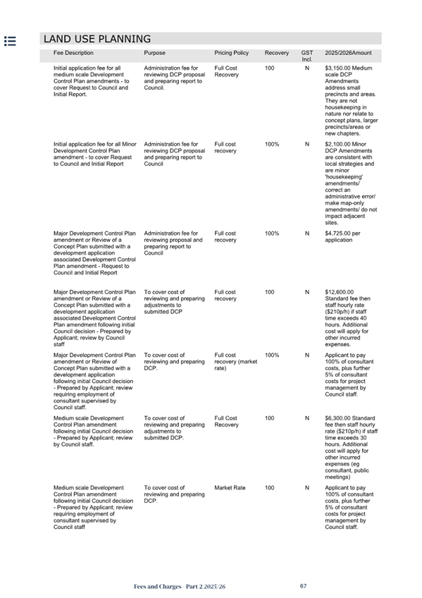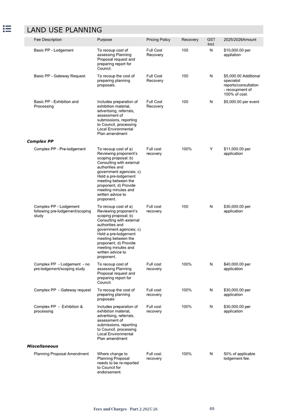Attachment 3.... Fees and Charges Part 1 - Post Exhibition........................ 161