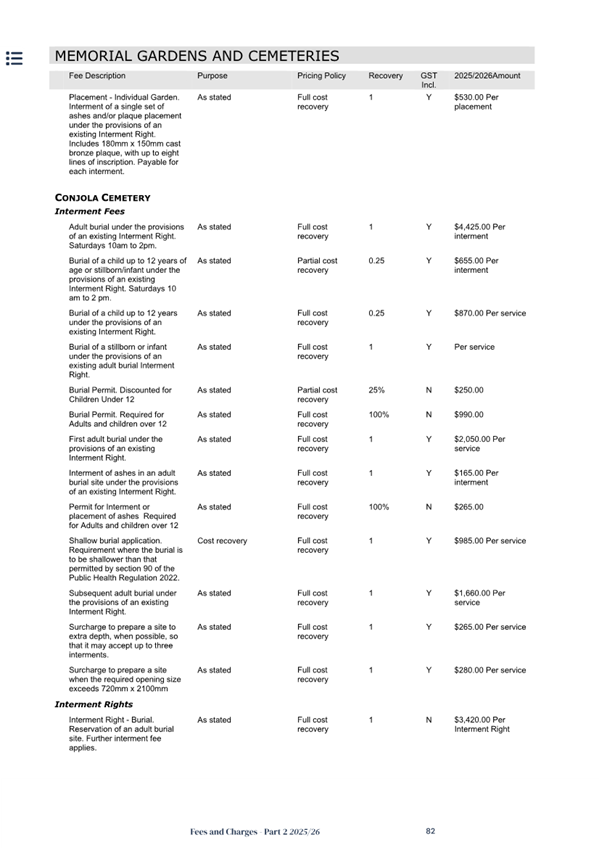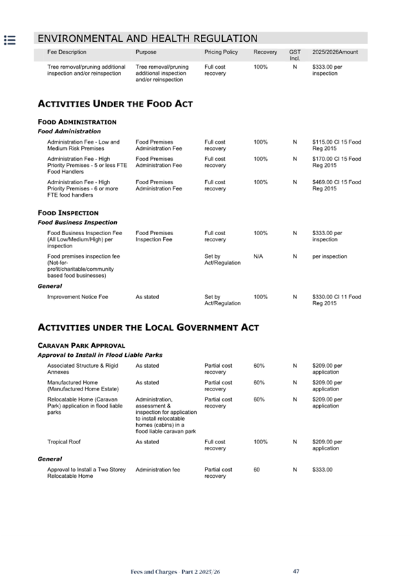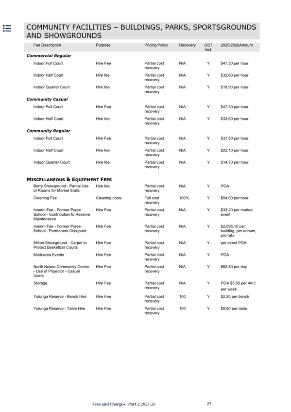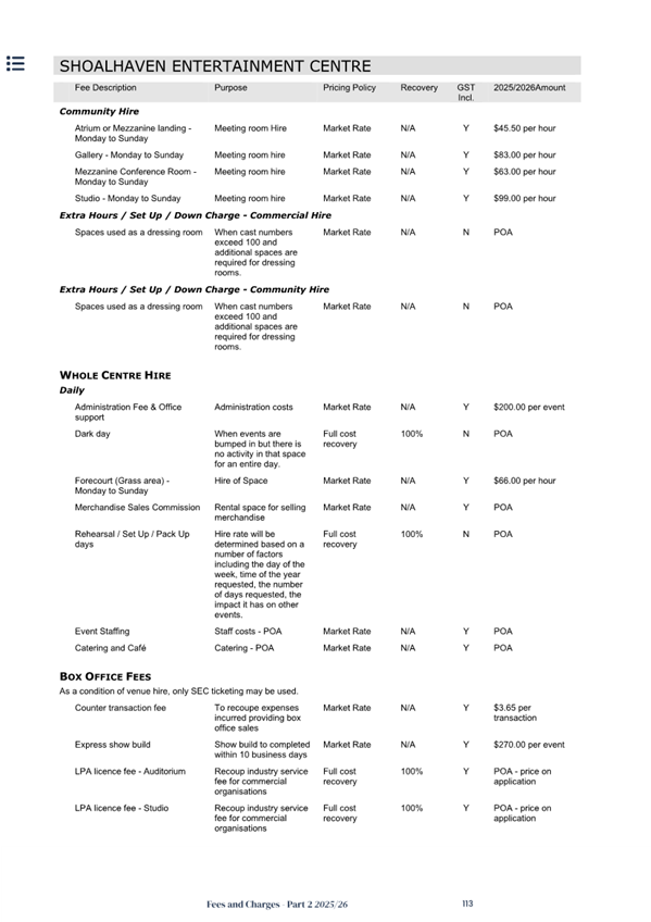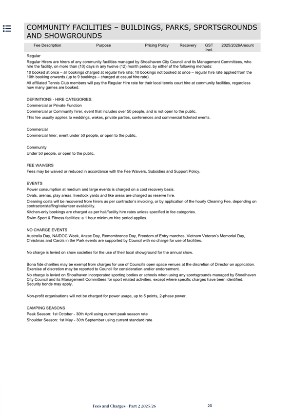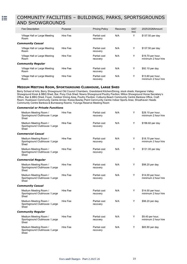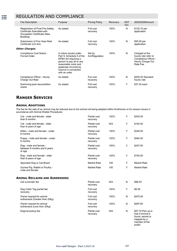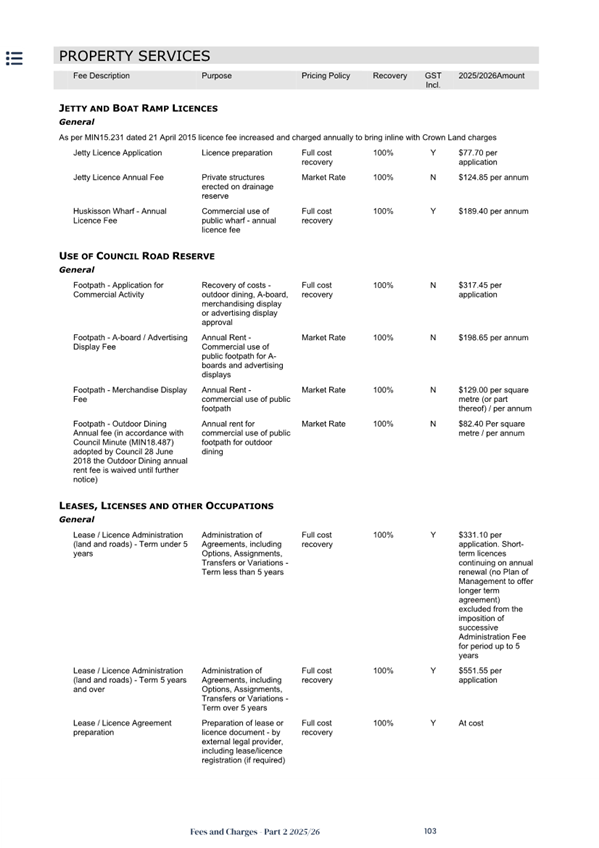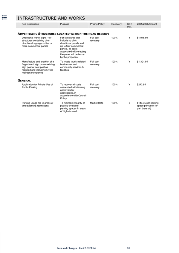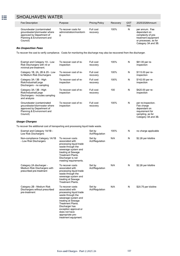 Attachment 3.... Fees and Charges Part 1 - Post Exhibition........................ 161
