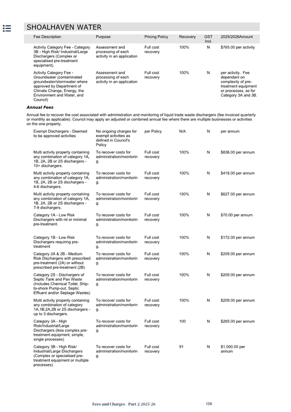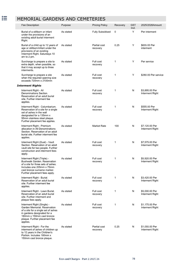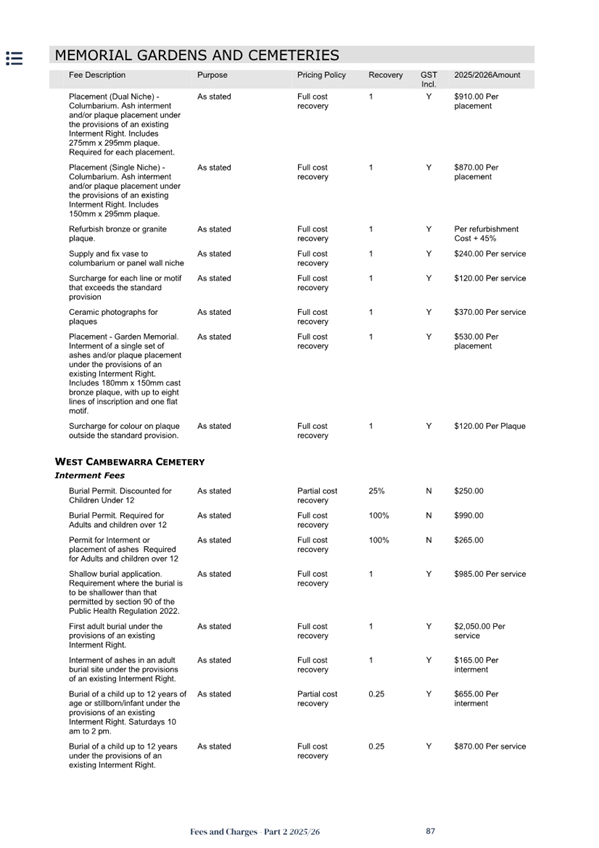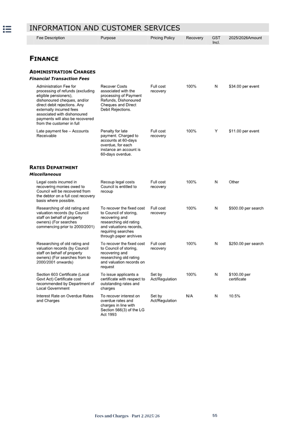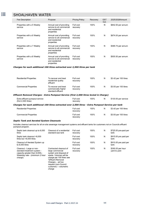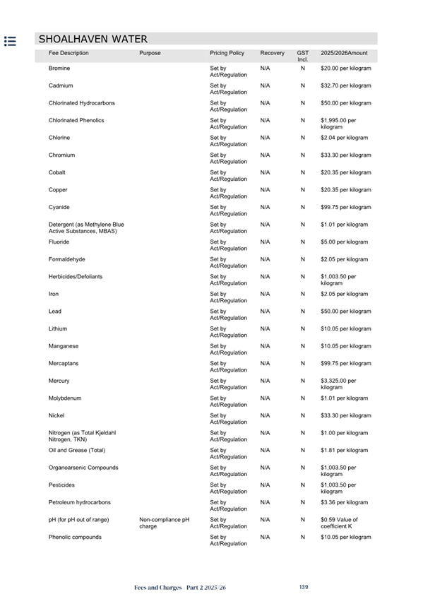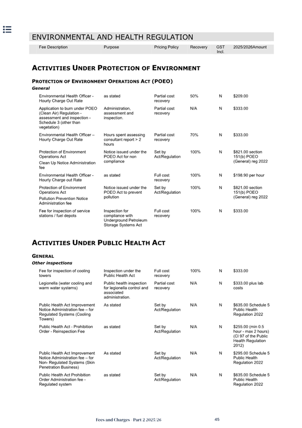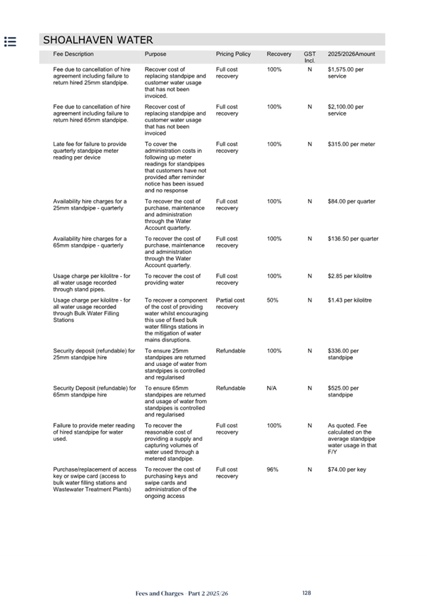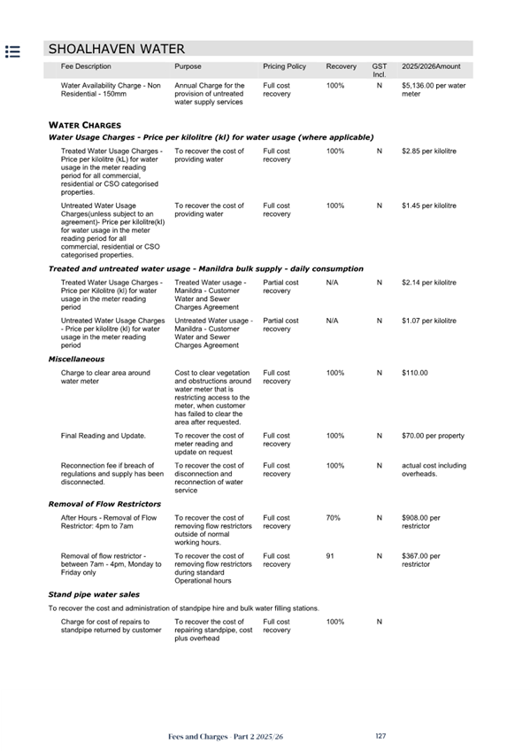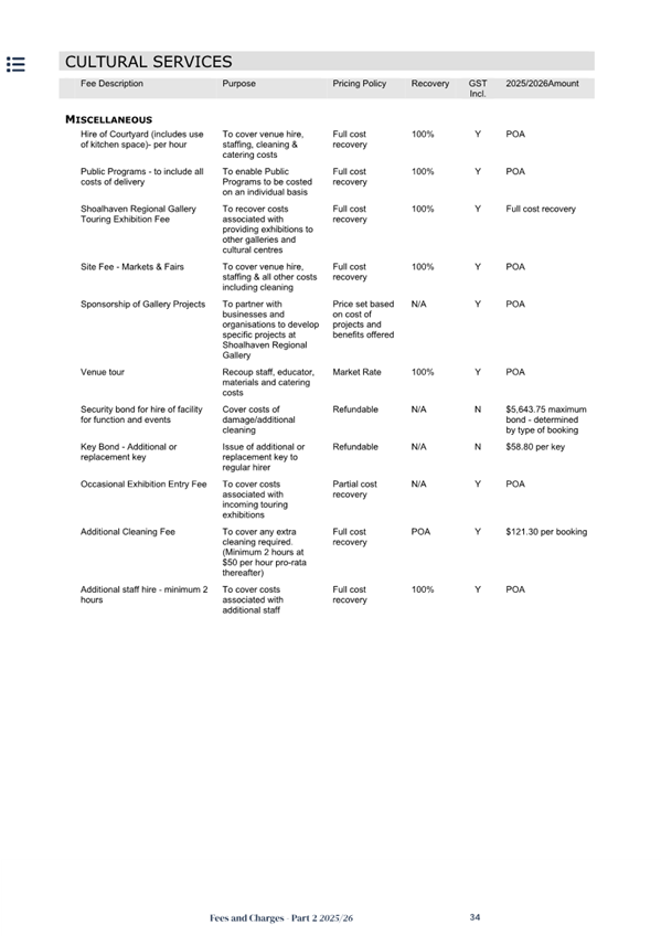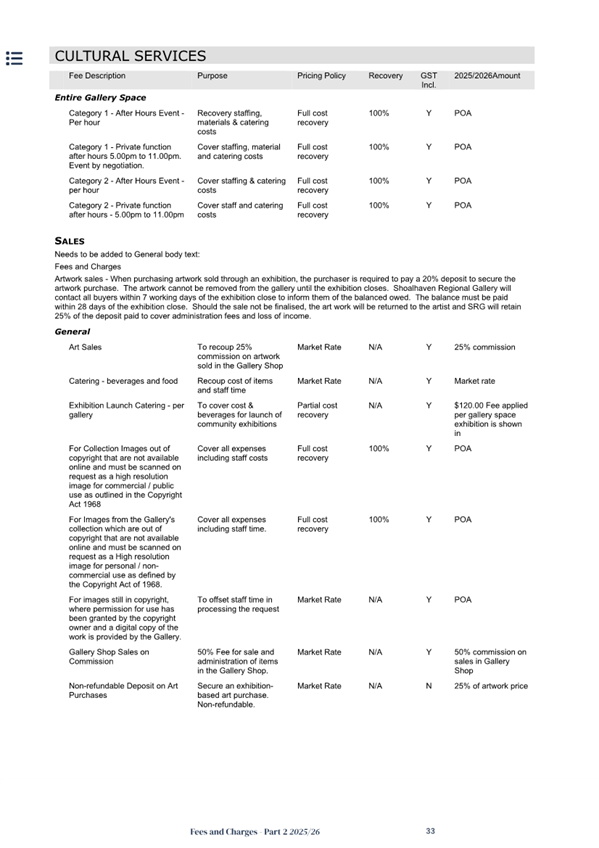 Attachment 3.... Fees and Charges Part 1 - Post Exhibition........................ 161