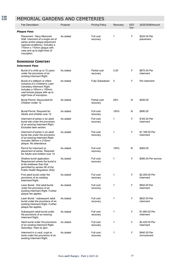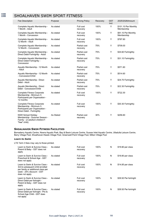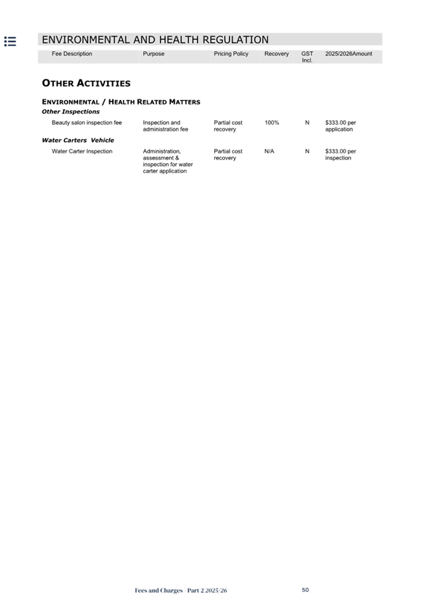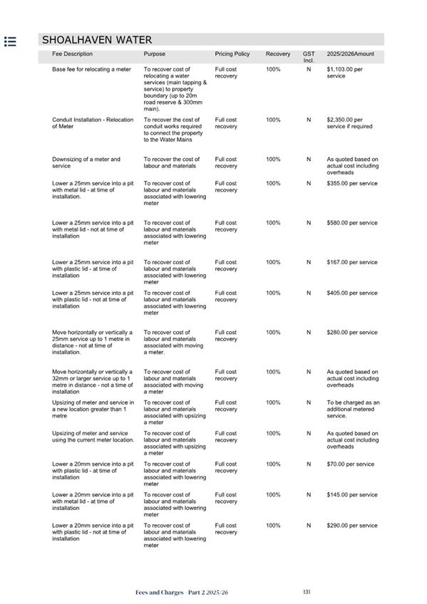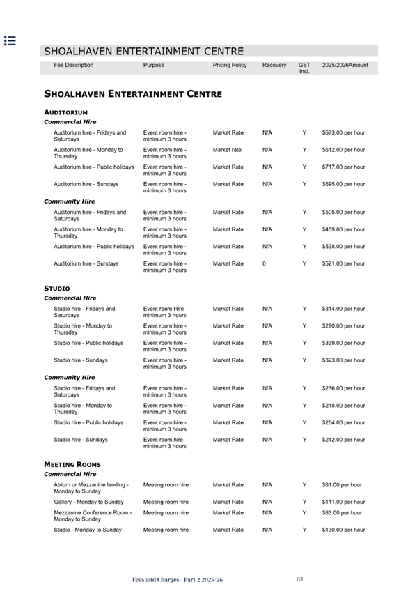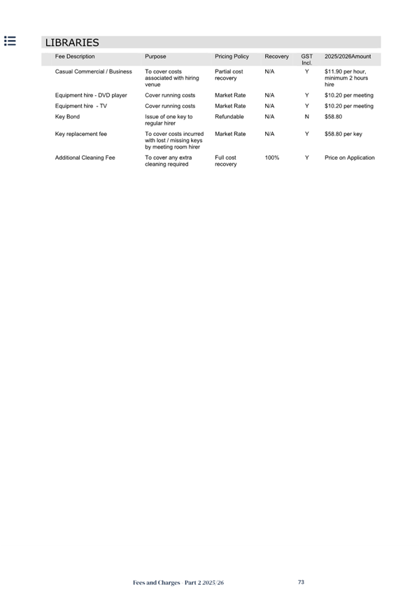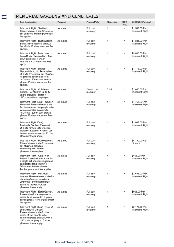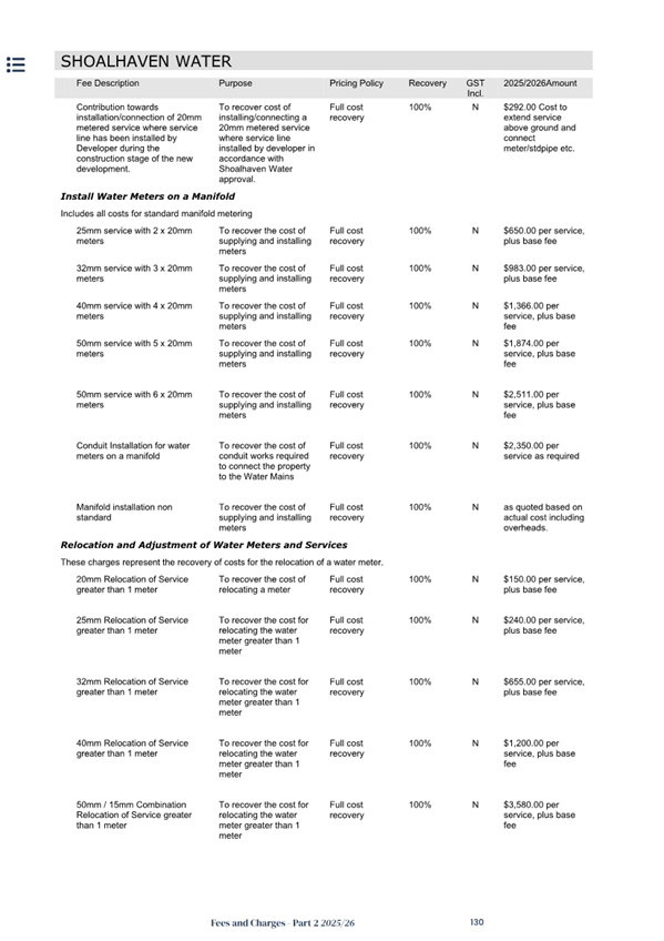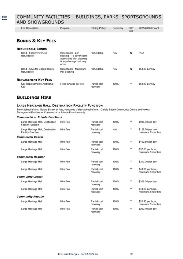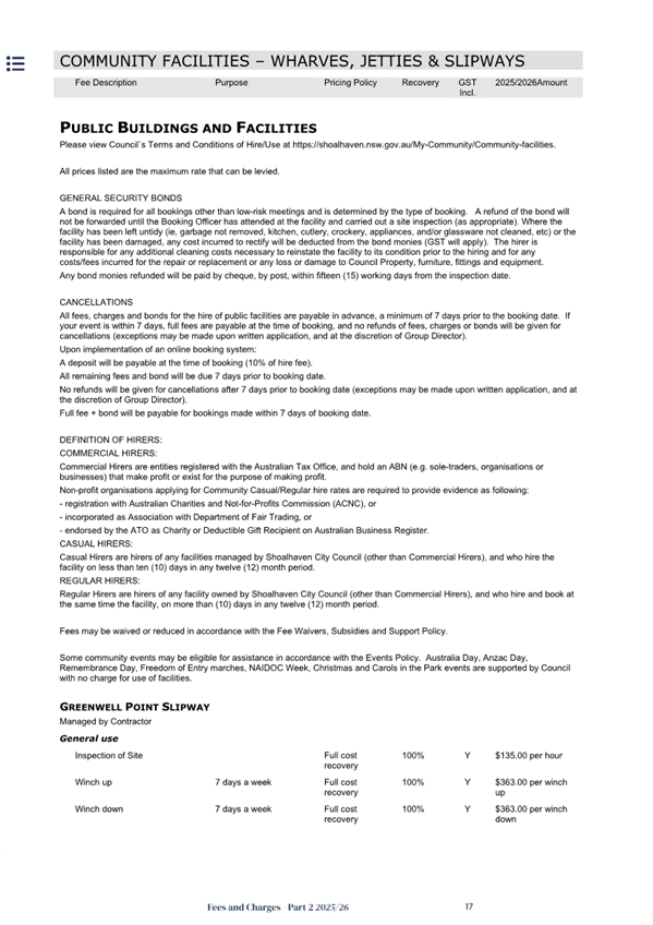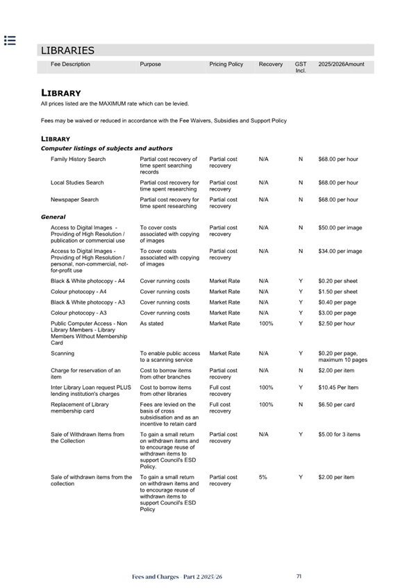 Attachment 3.... Fees and Charges Part 1 - Post Exhibition........................ 161