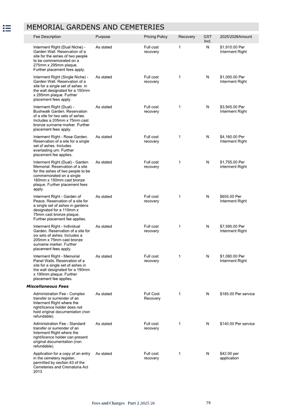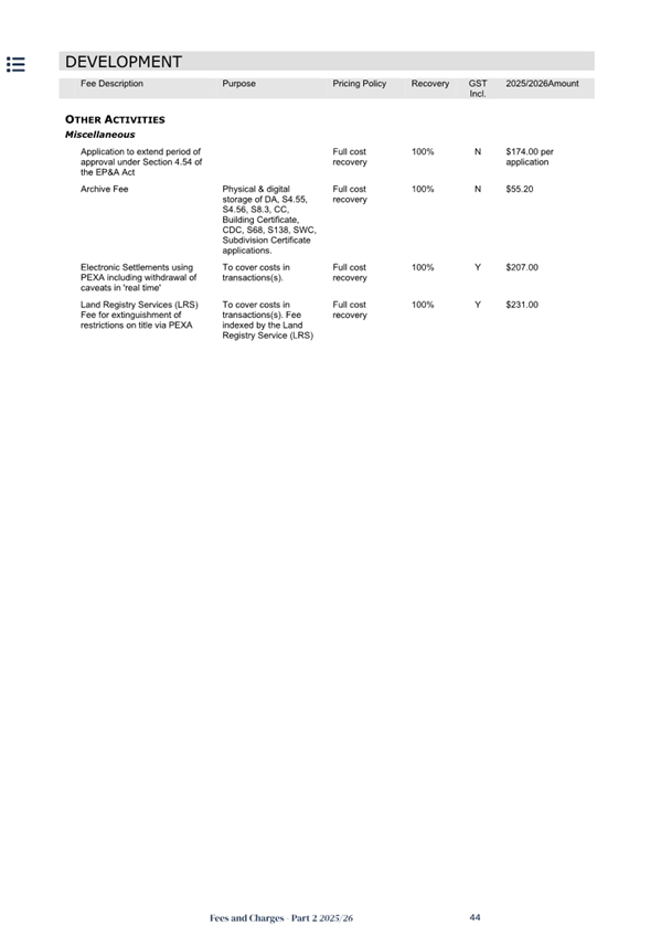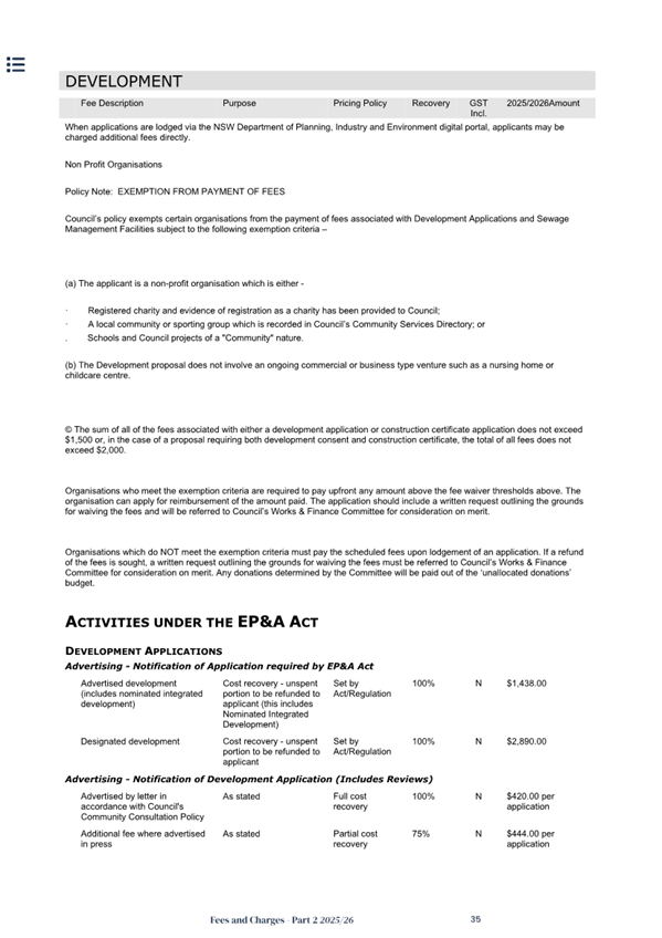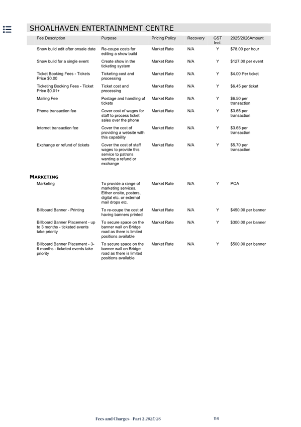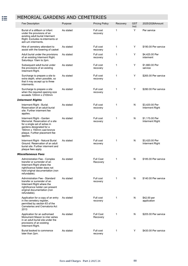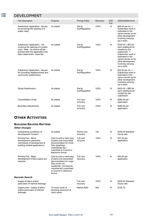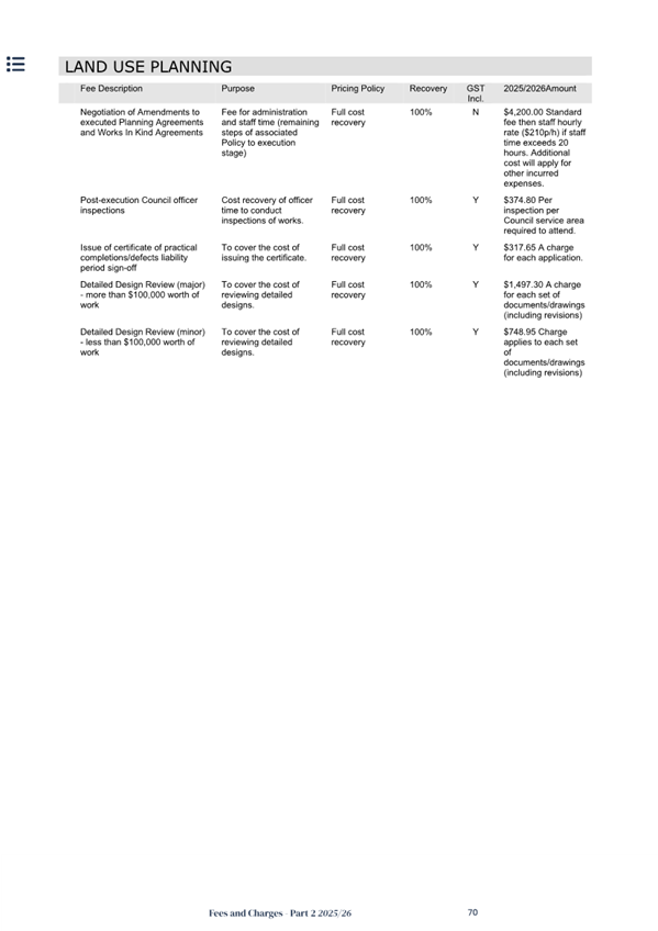 Attachment 4.... Fees and Charges Part 2 - Post Exhibition........................ 193