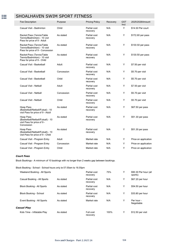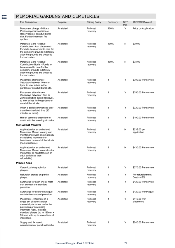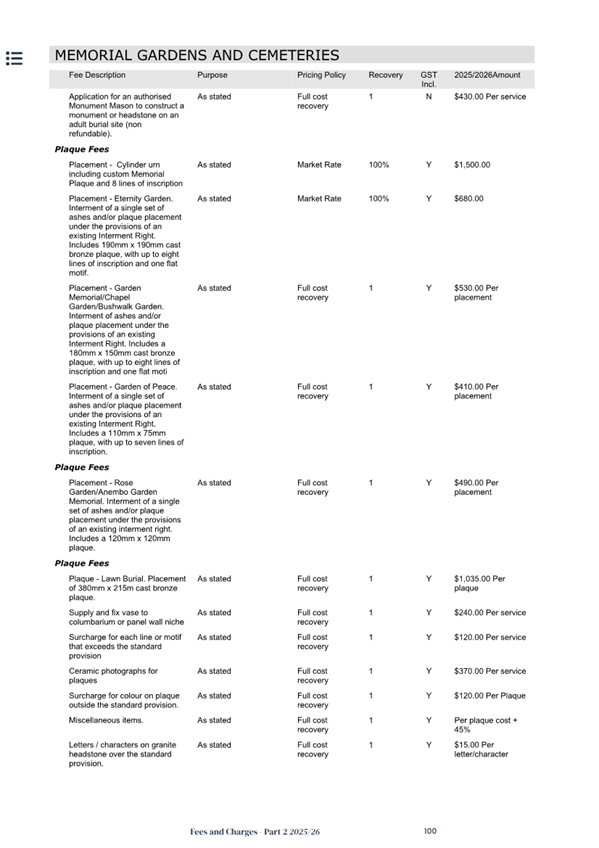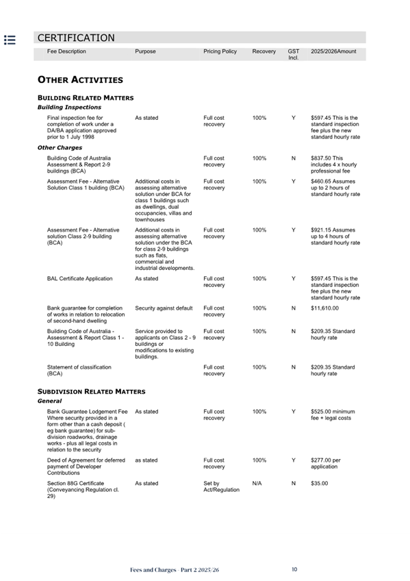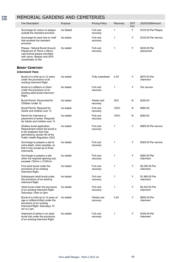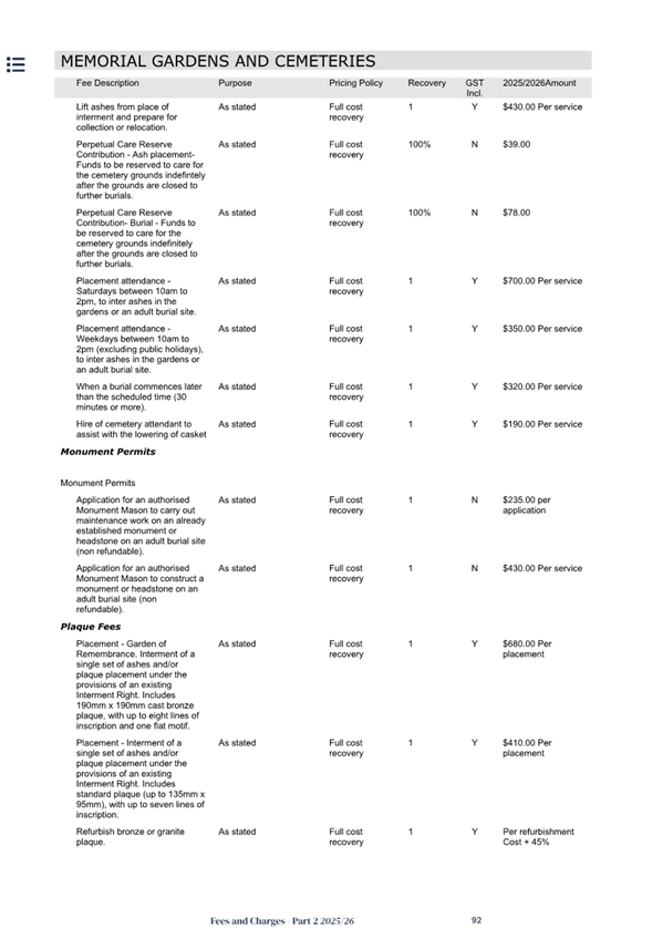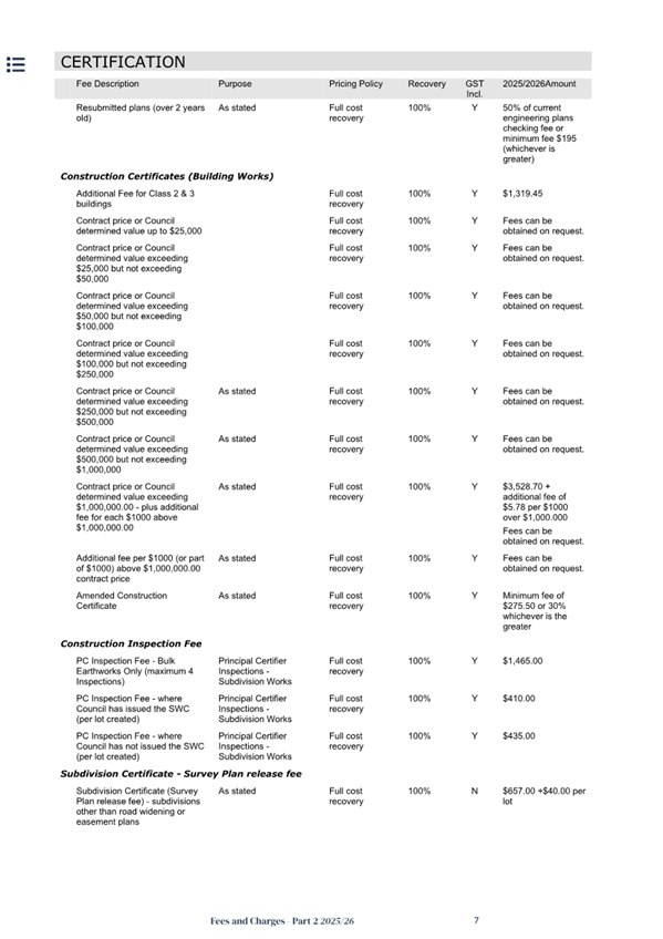Attachment 4.... Fees and Charges Part 2 - Post Exhibition........................ 193