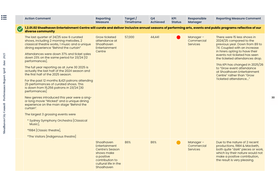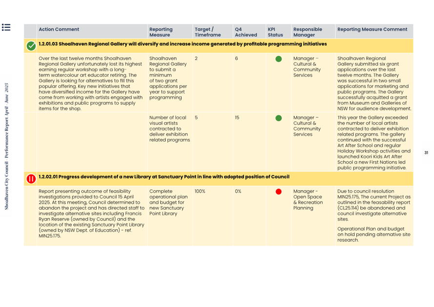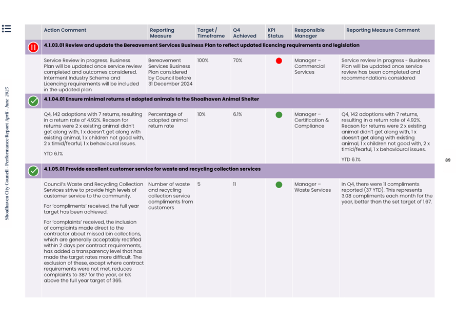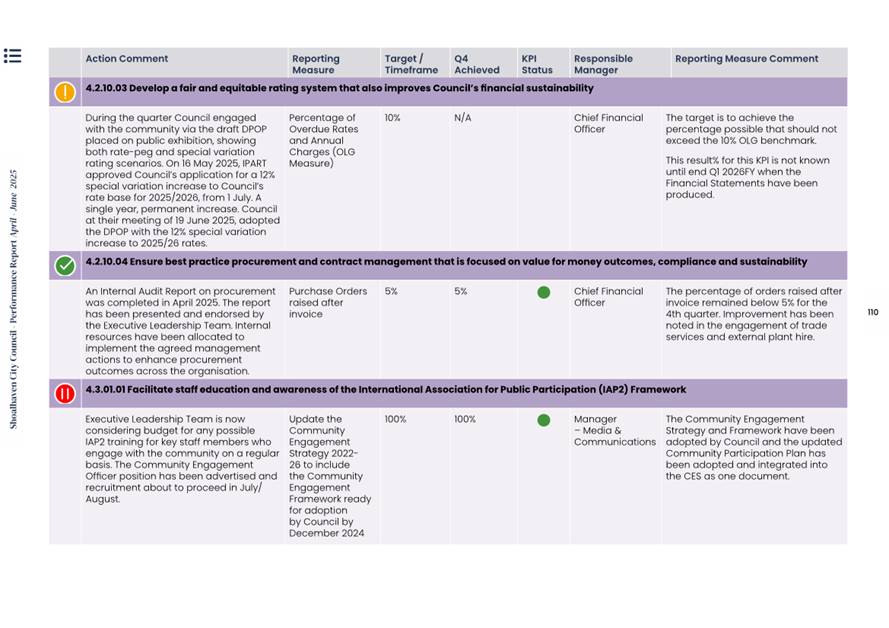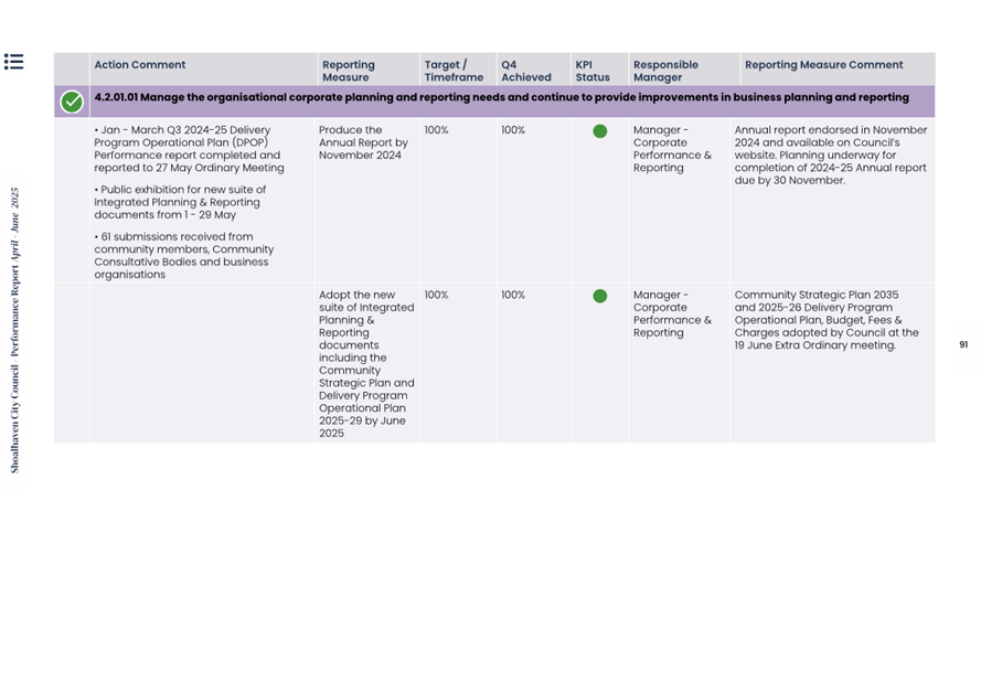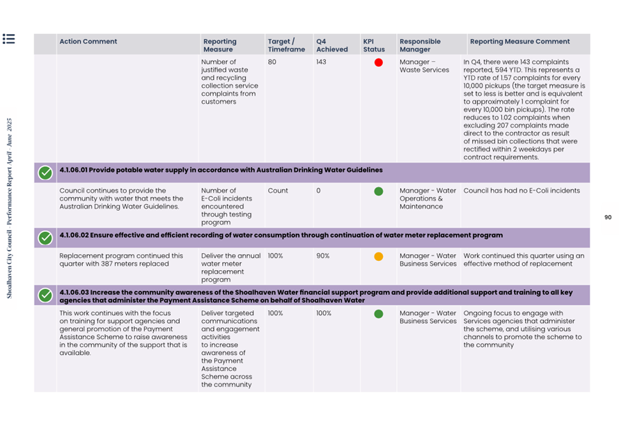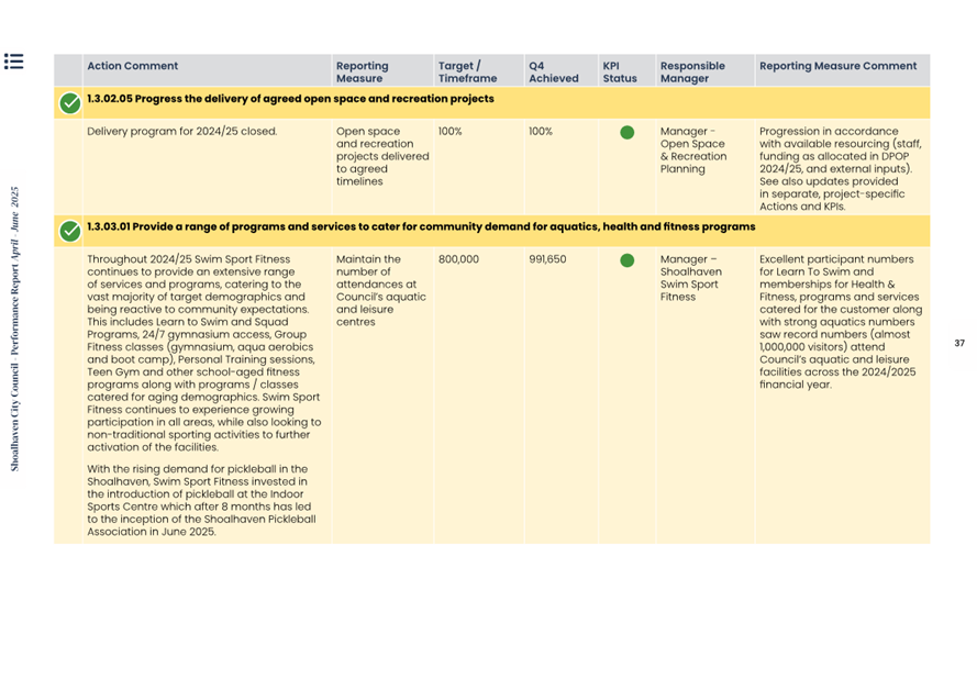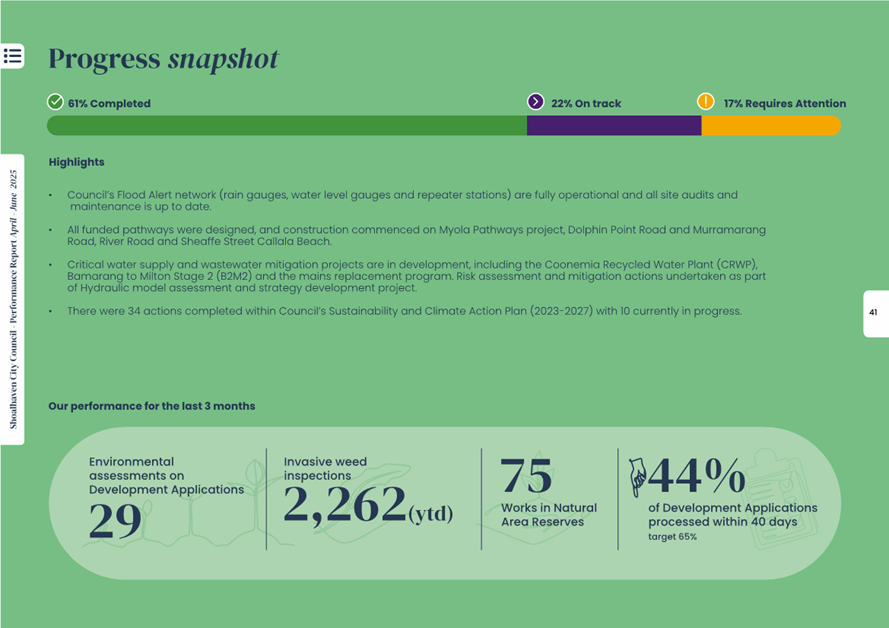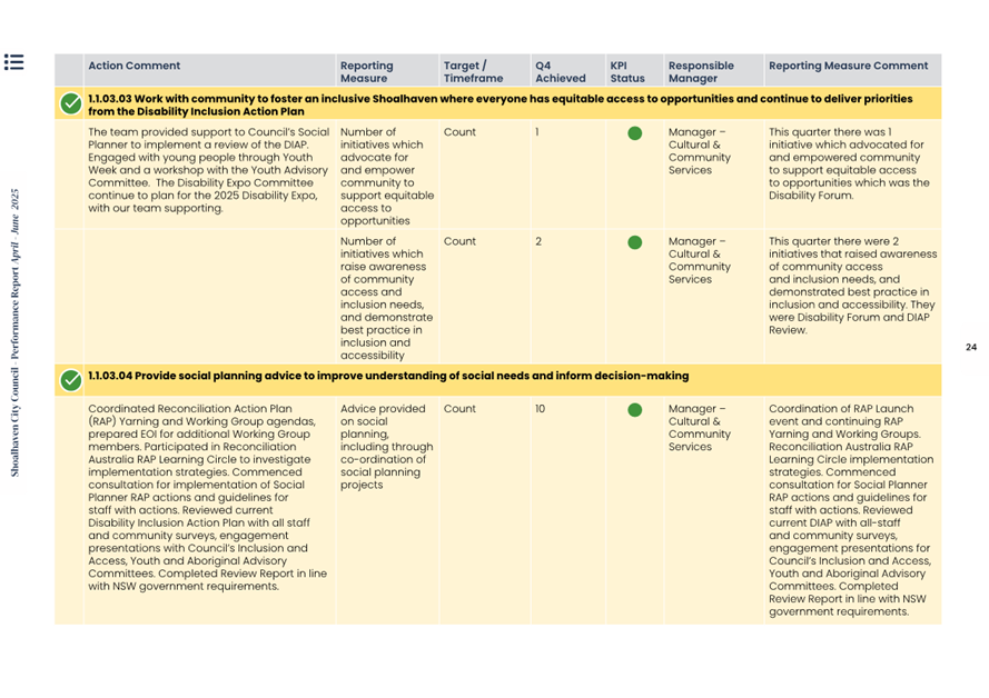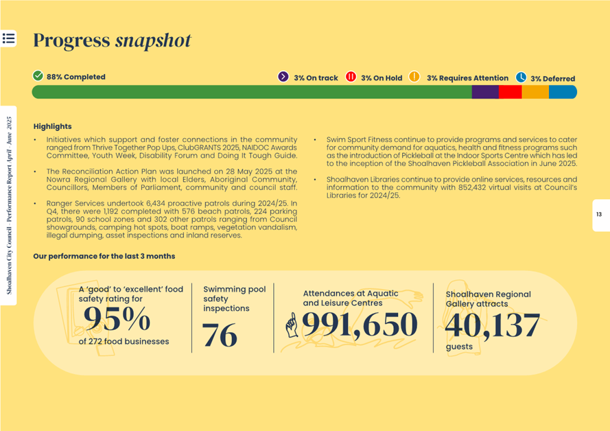 Attachment 1.... Delivery Program Operational Plan - Quarterly Performance Report 2024-25 - April to June......................................................... 37