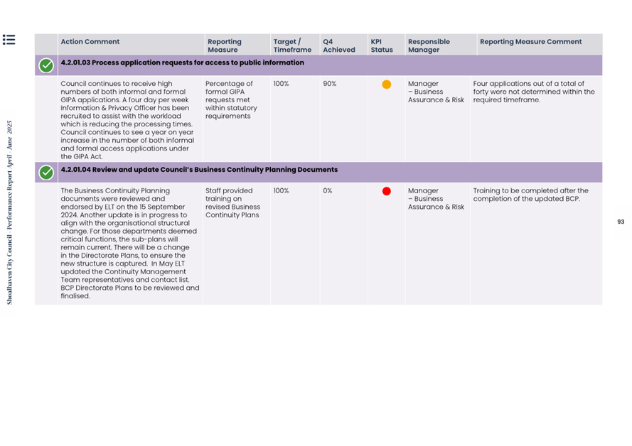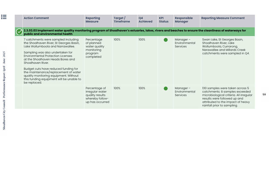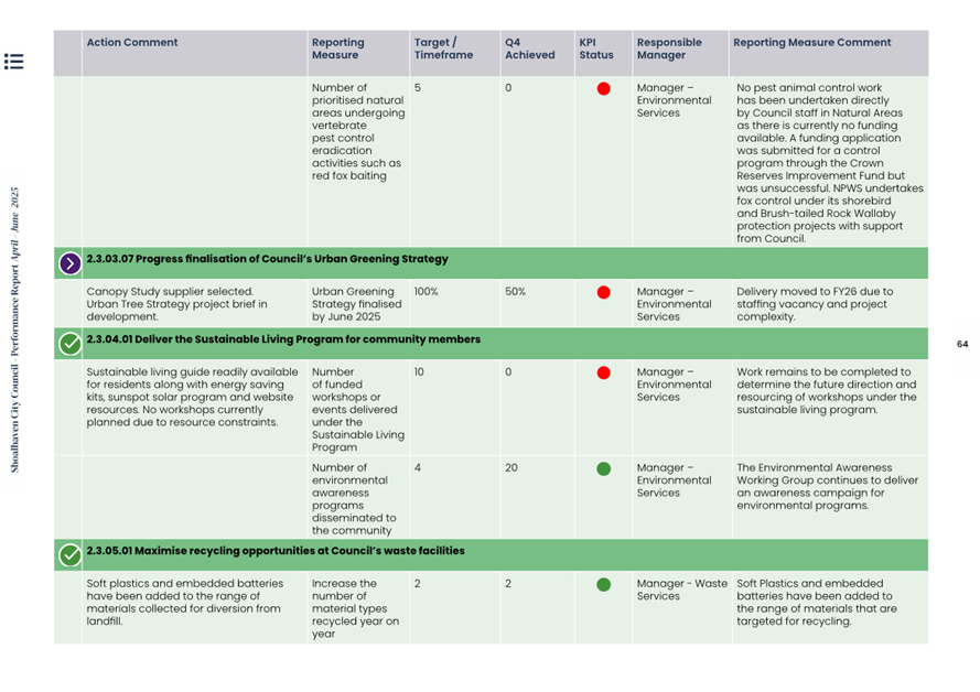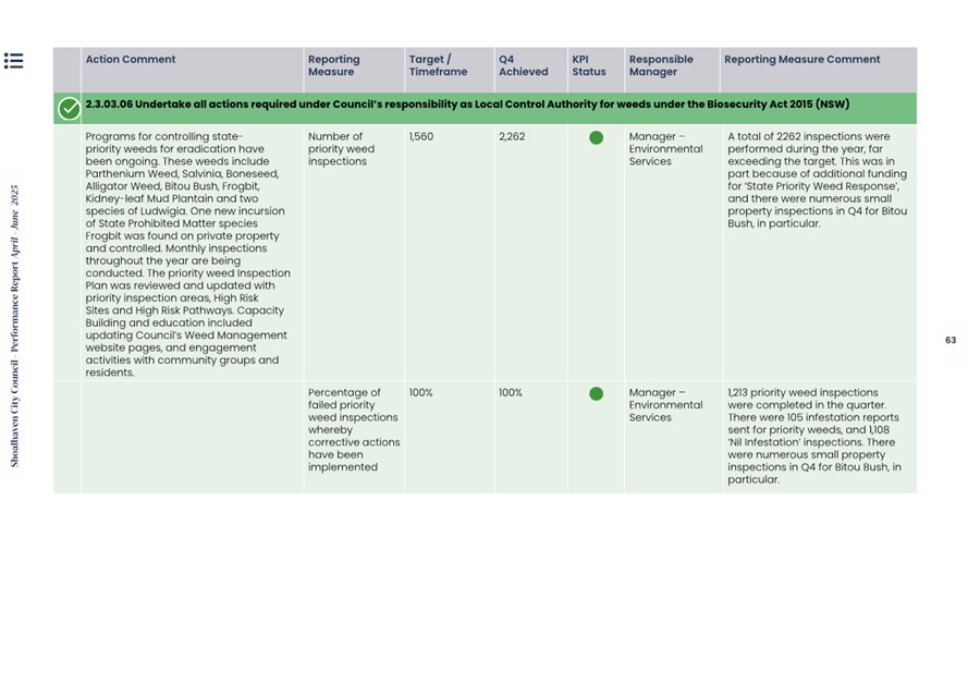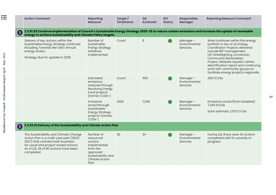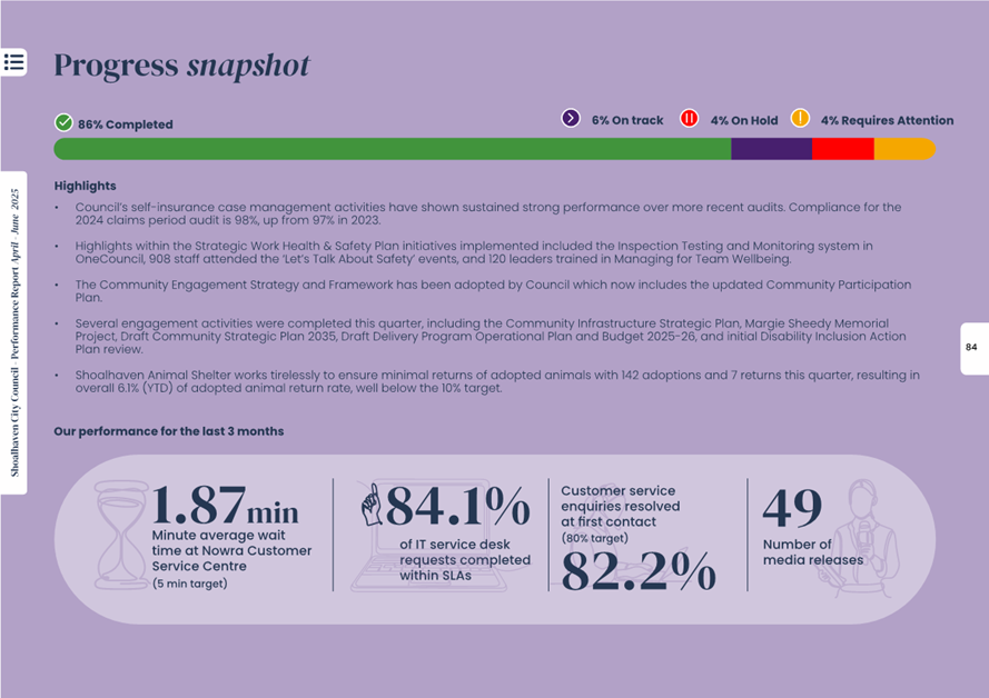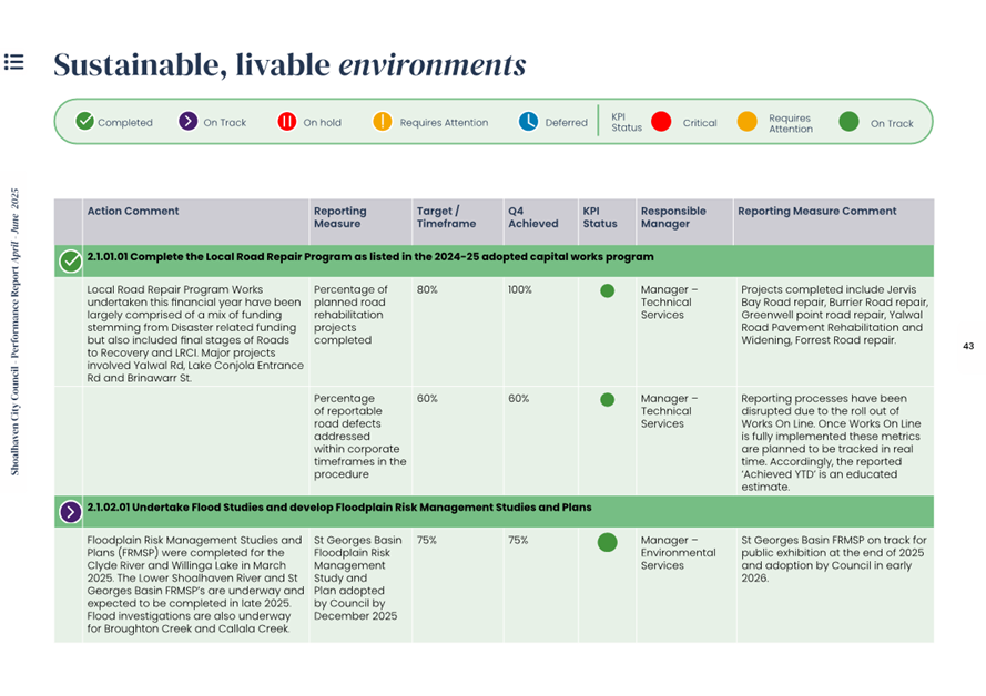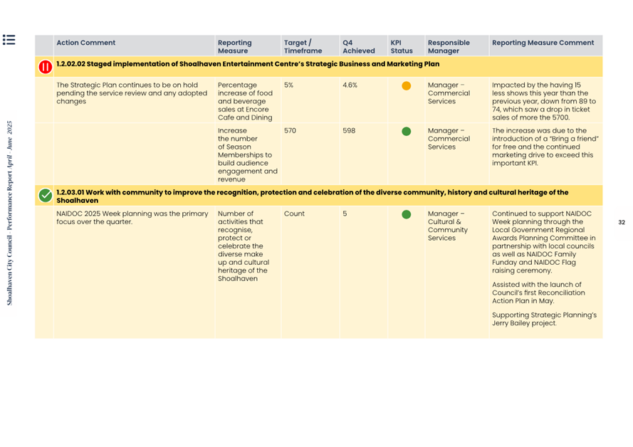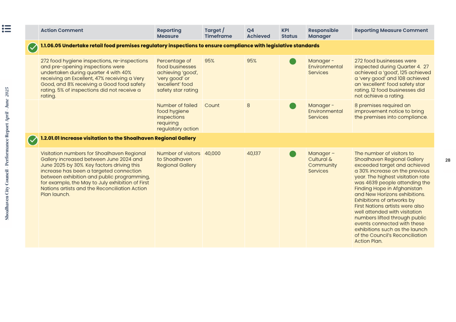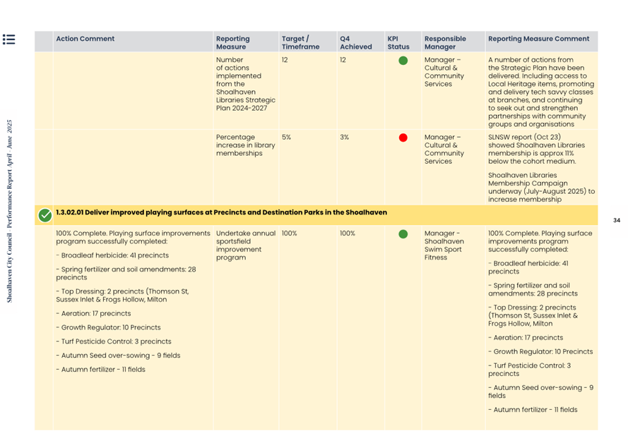 Attachment 1.... Delivery Program Operational Plan - Quarterly Performance Report 2024-25 - April to June......................................................... 37