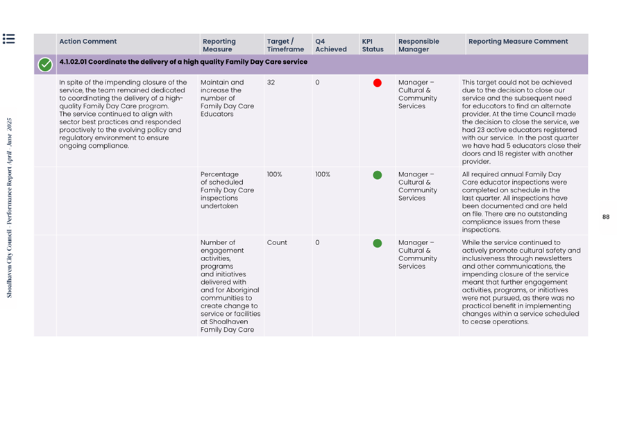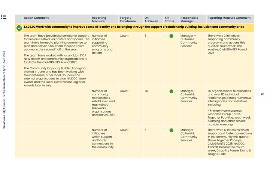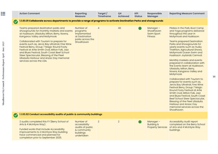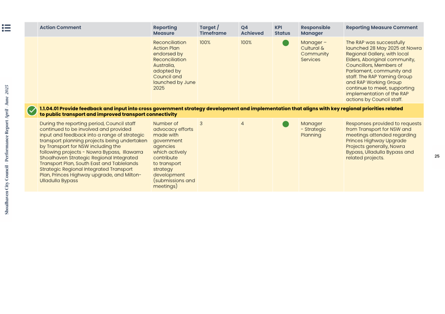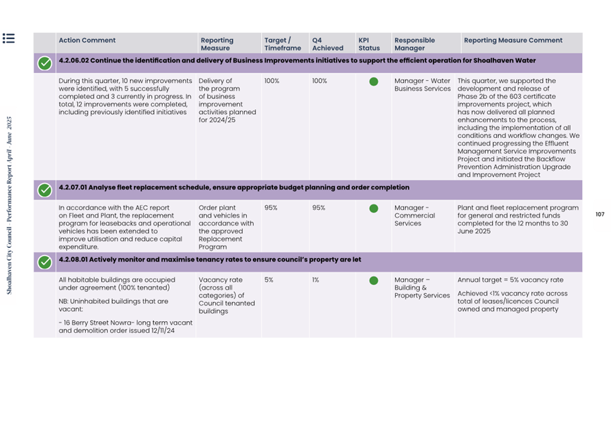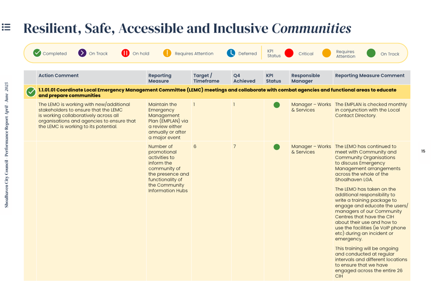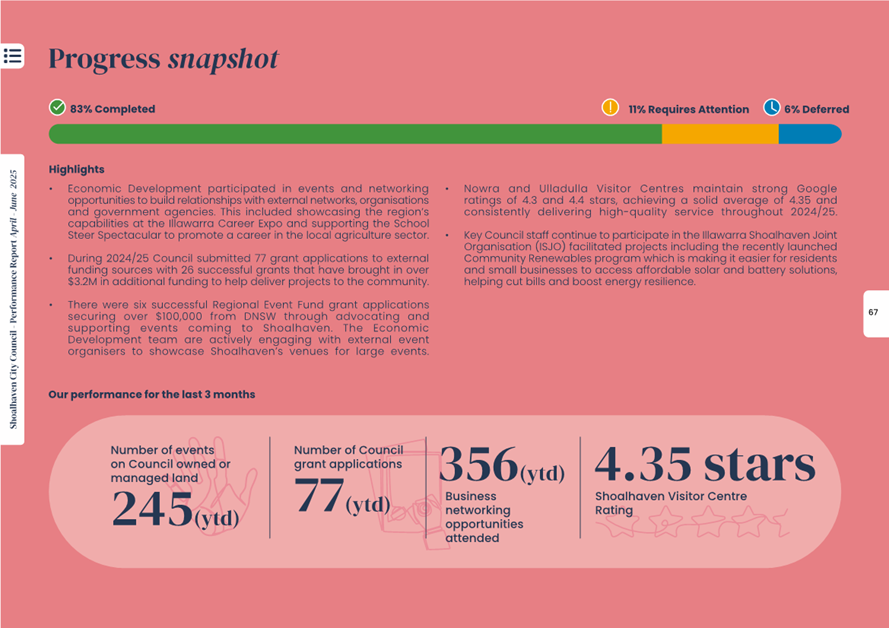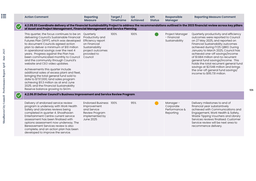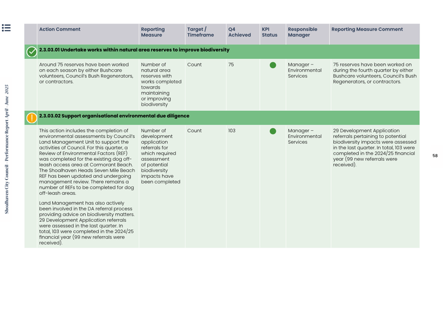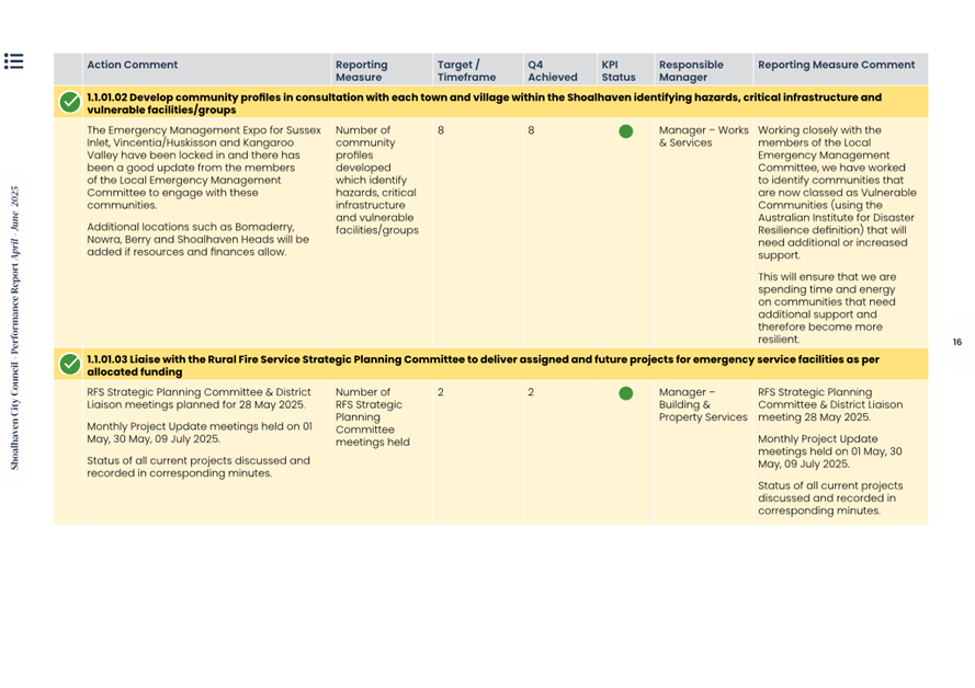Attachment 1.... Delivery Program Operational Plan - Quarterly Performance Report 2024-25 - April to June......................................................... 37