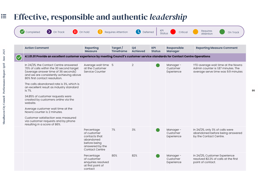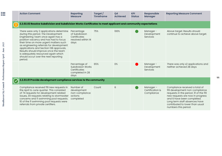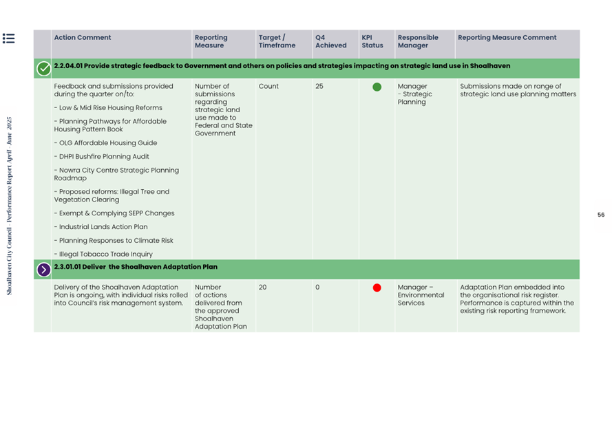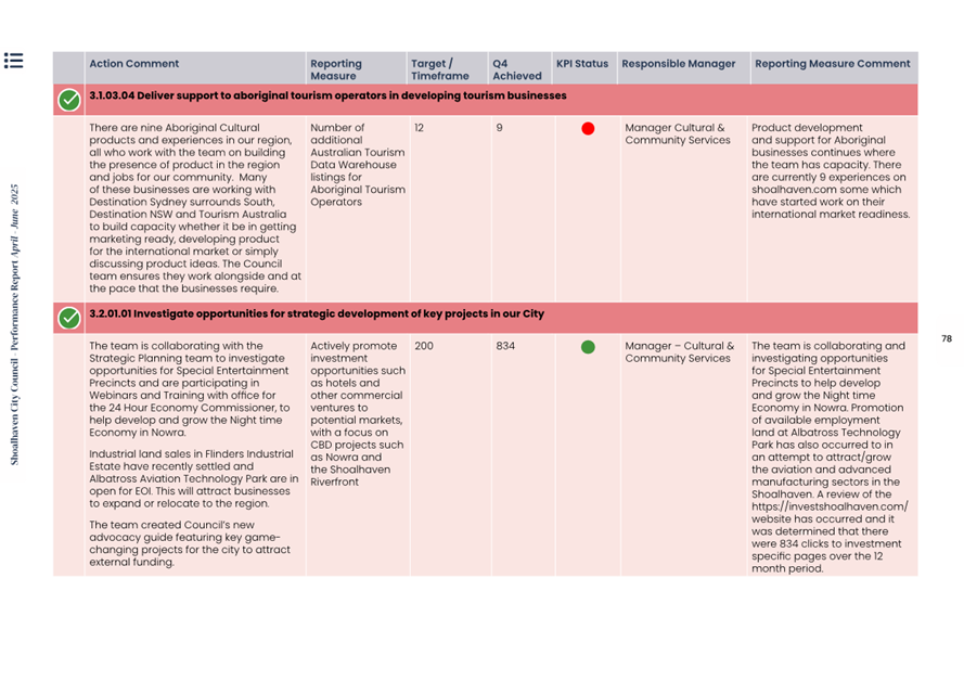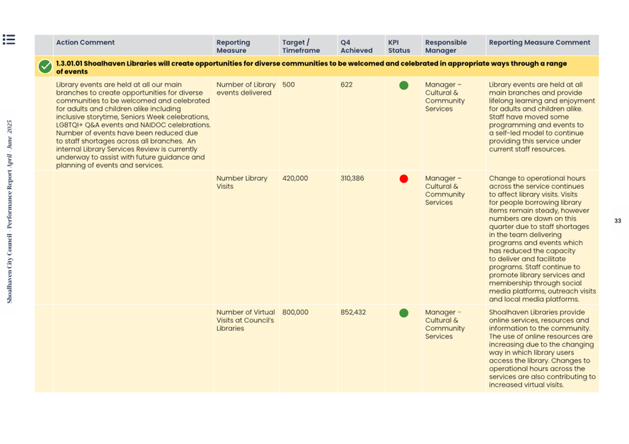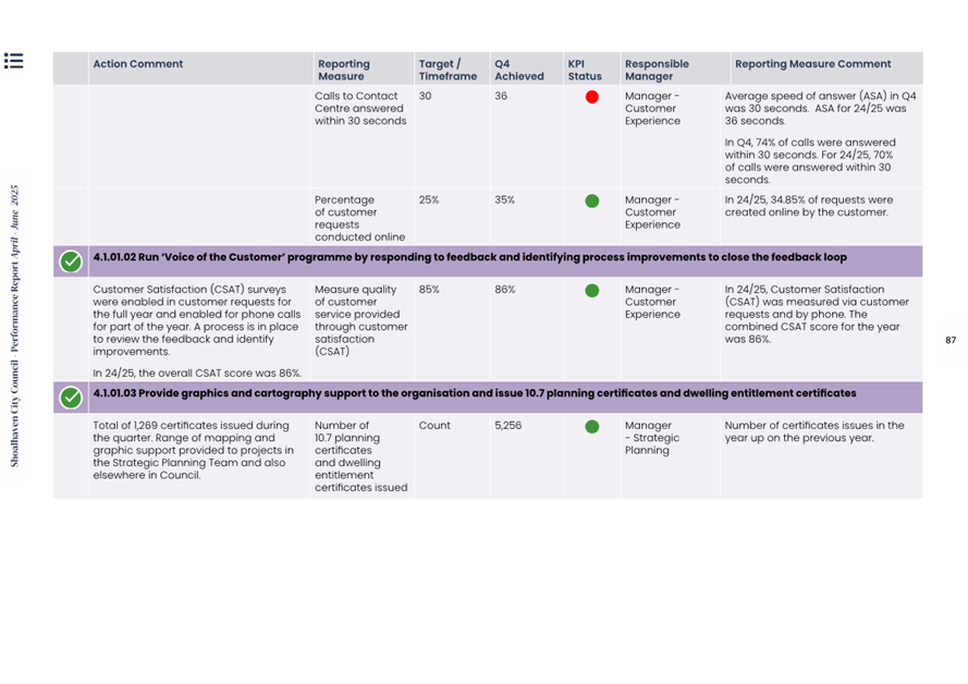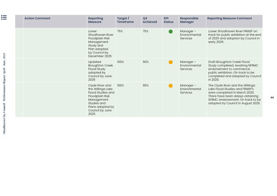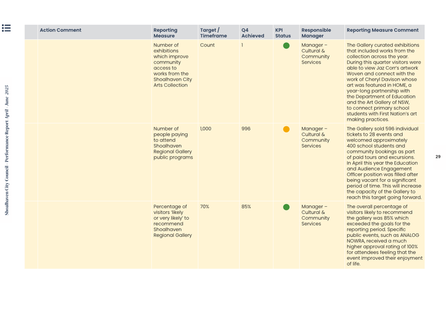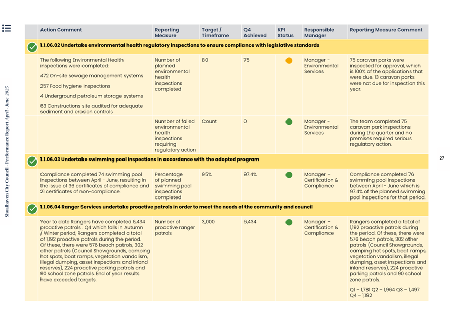 Attachment 1.... Delivery Program Operational Plan - Quarterly Performance Report 2024-25 - April to June......................................................... 37