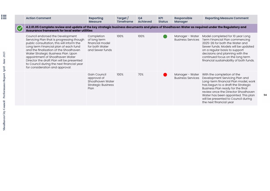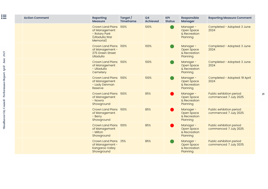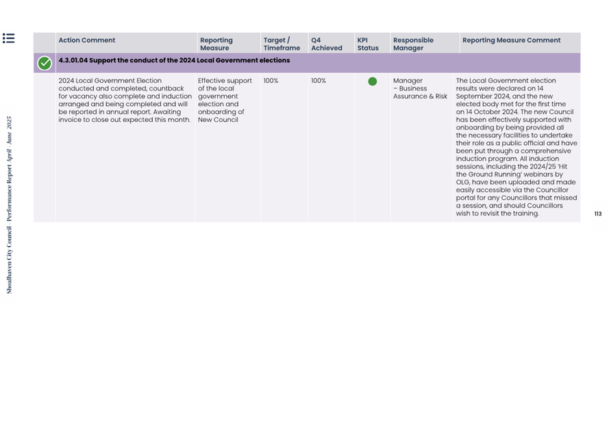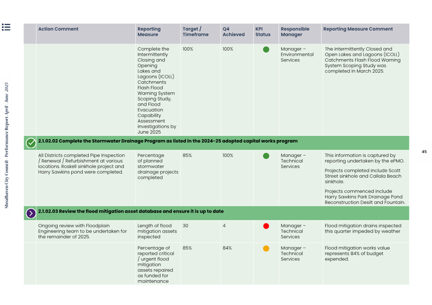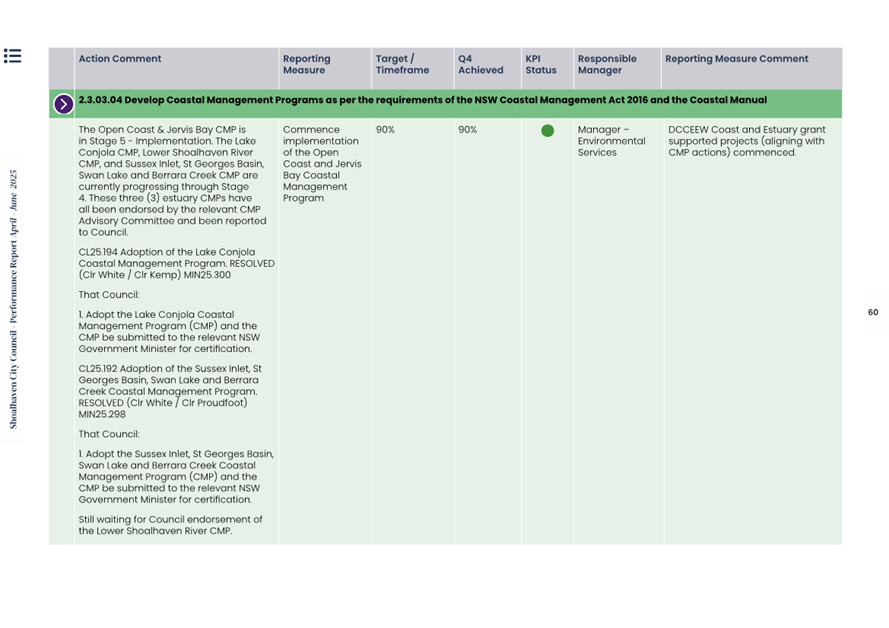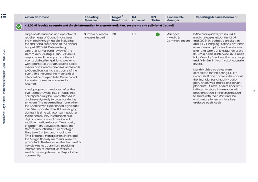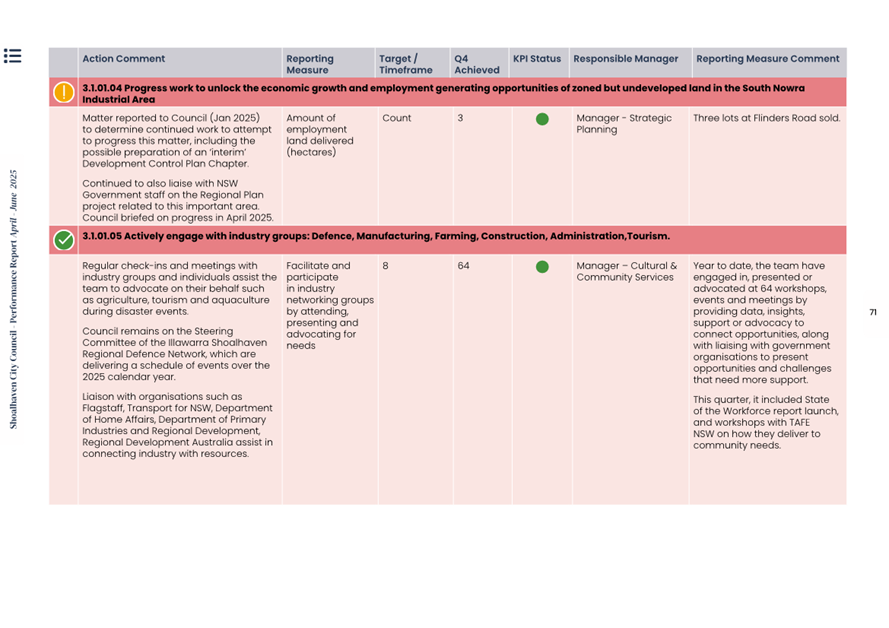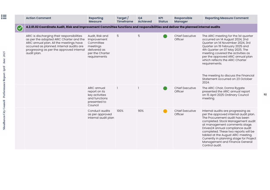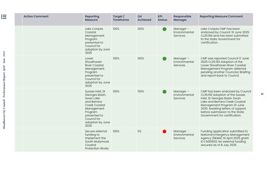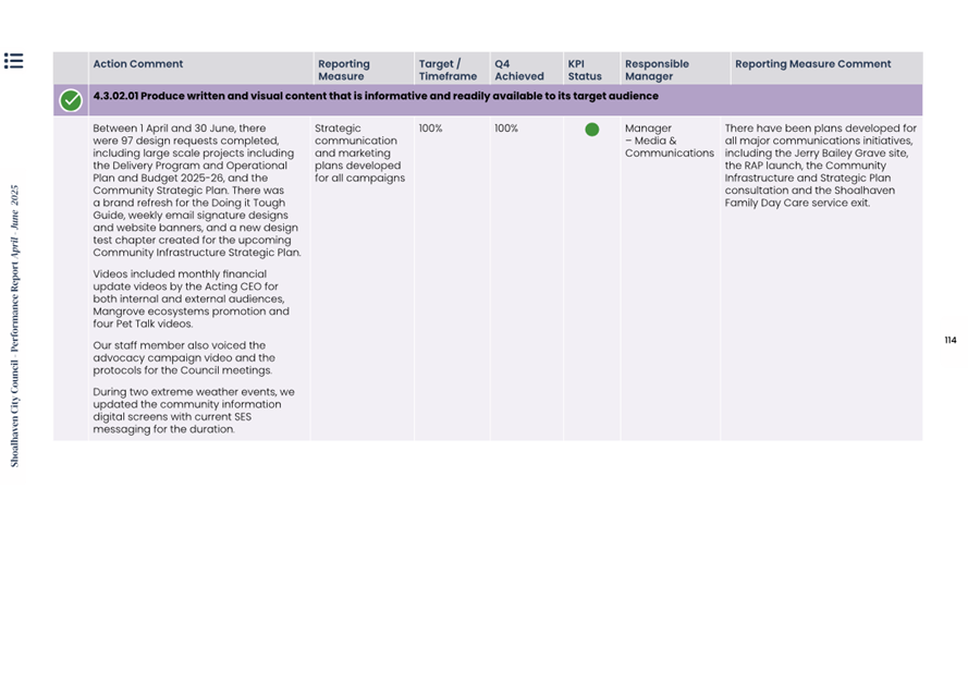 Attachment 1.... Delivery Program Operational Plan - Quarterly Performance Report 2024-25 - April to June......................................................... 37