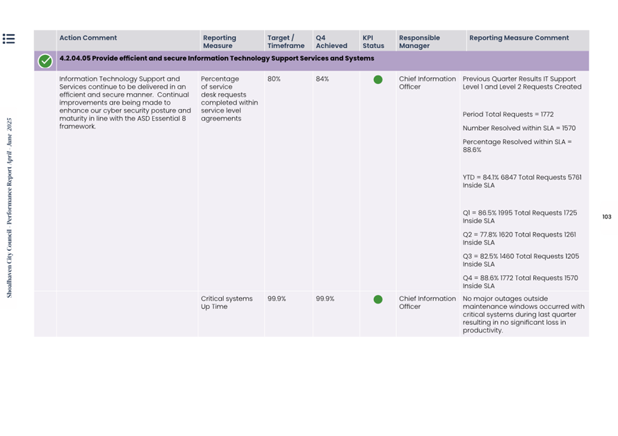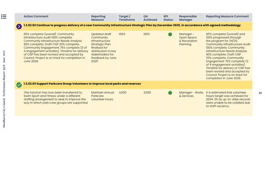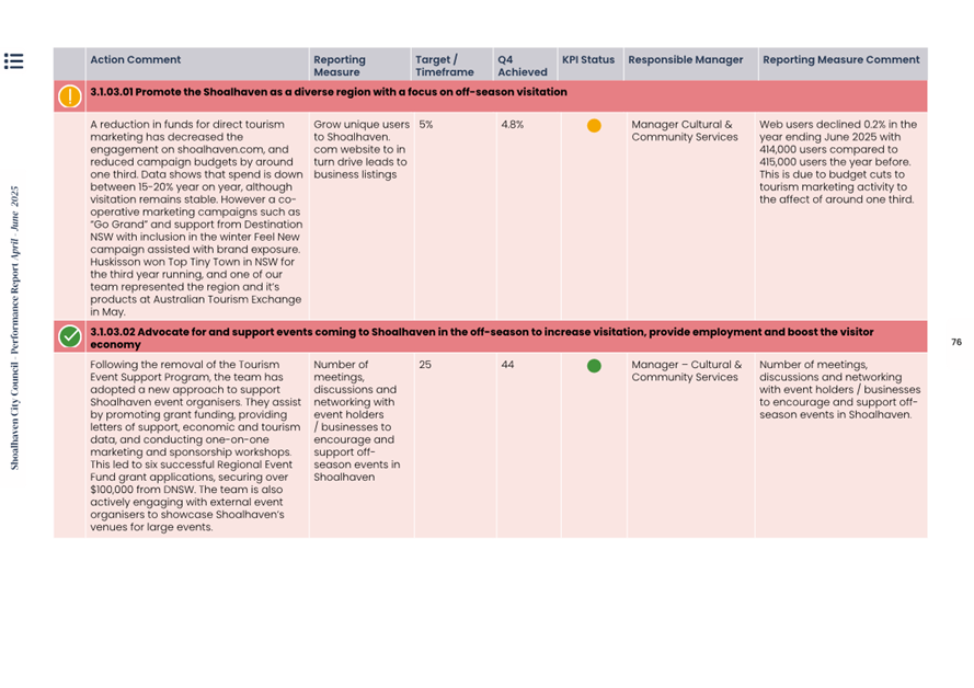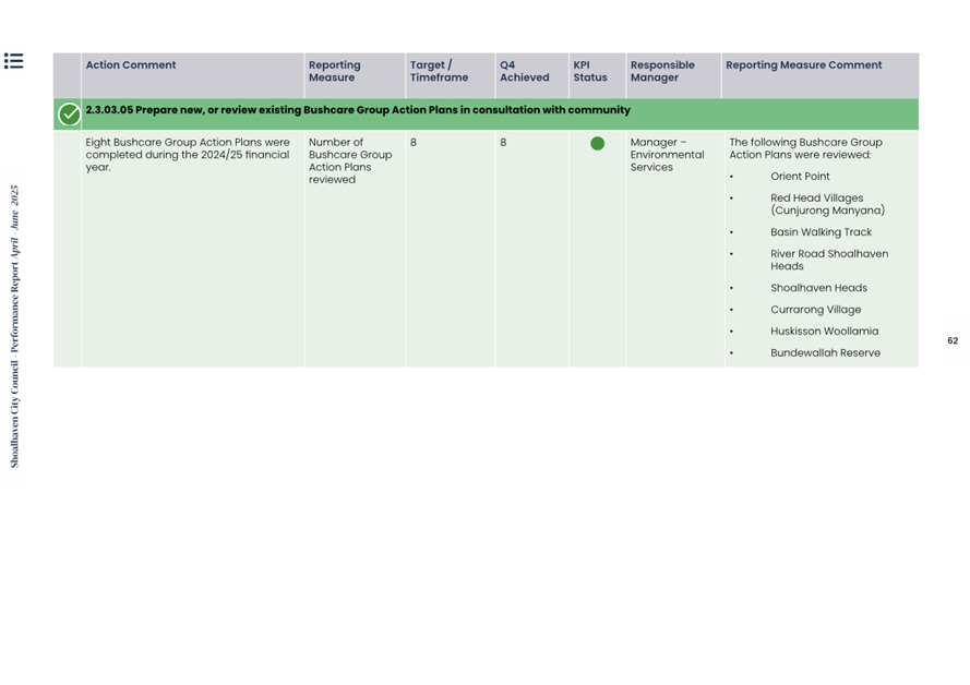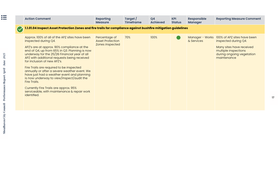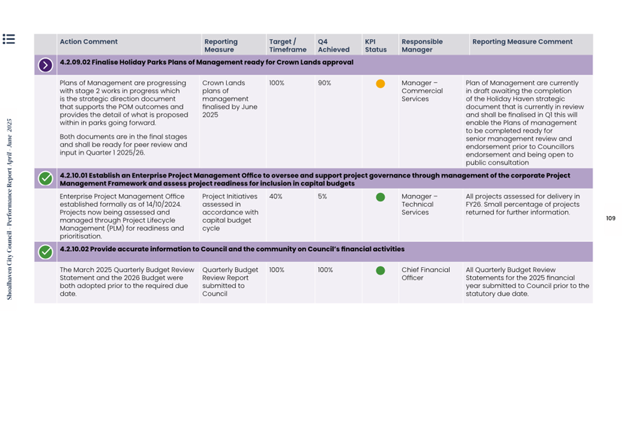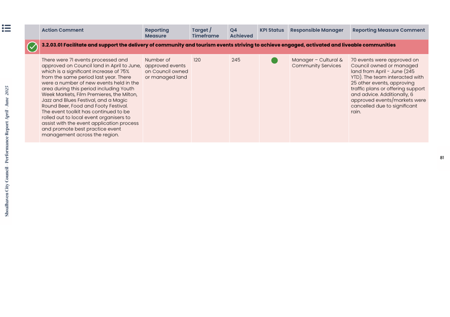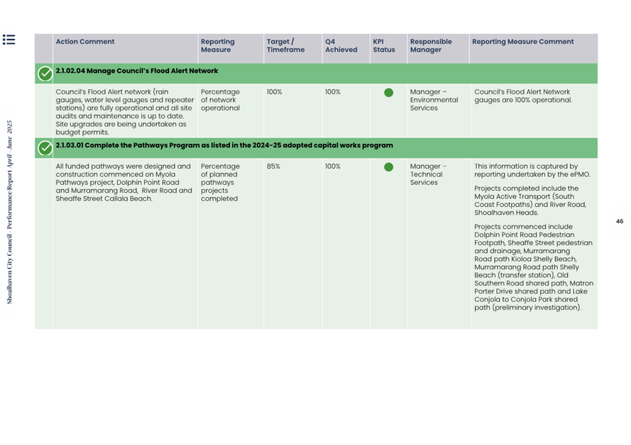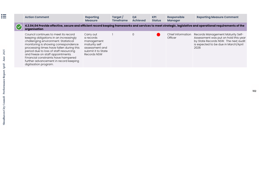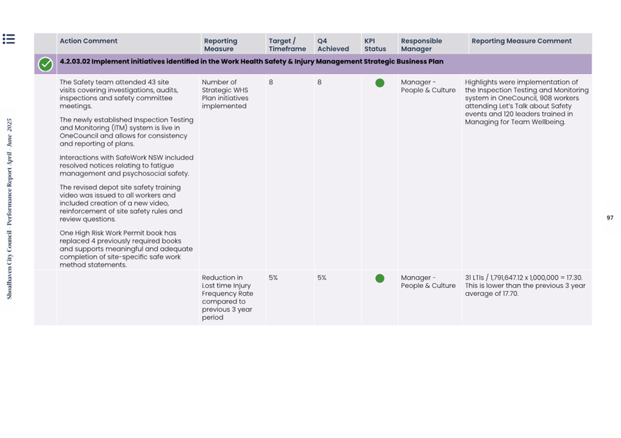 Attachment 1.... Delivery Program Operational Plan - Quarterly Performance Report 2024-25 - April to June......................................................... 37