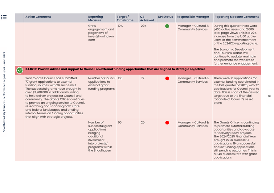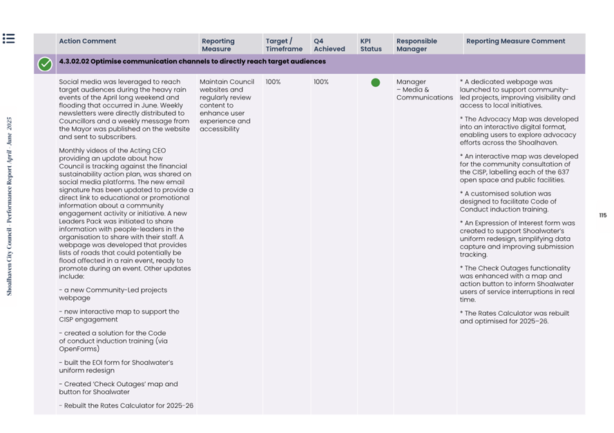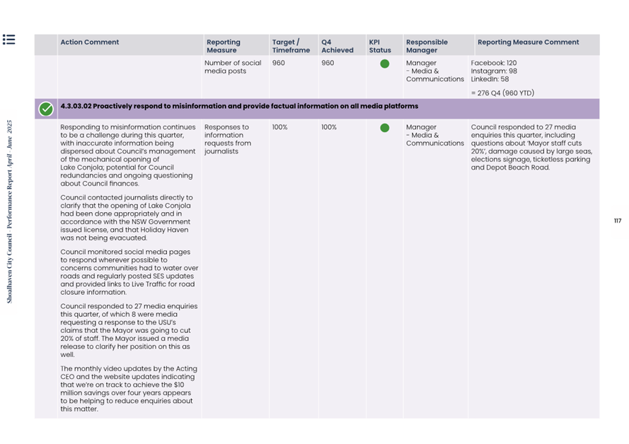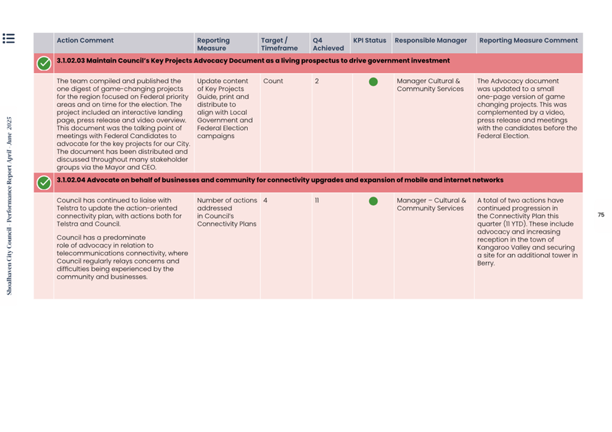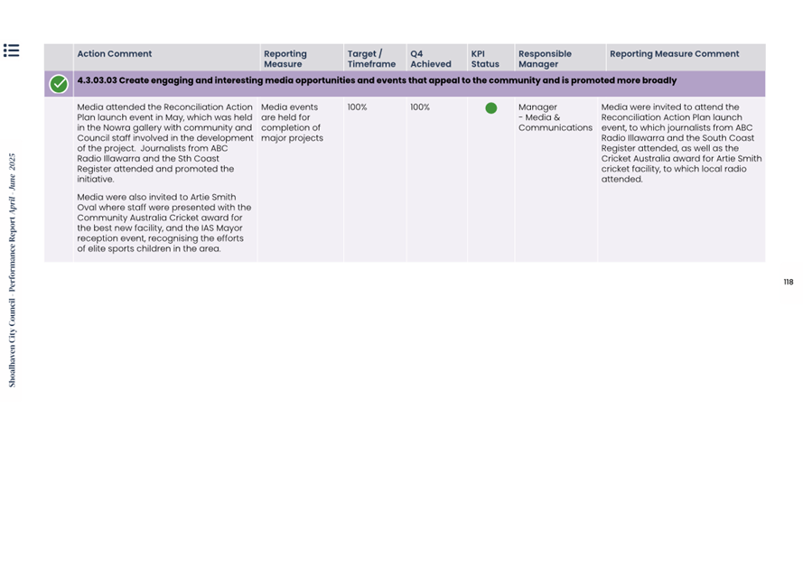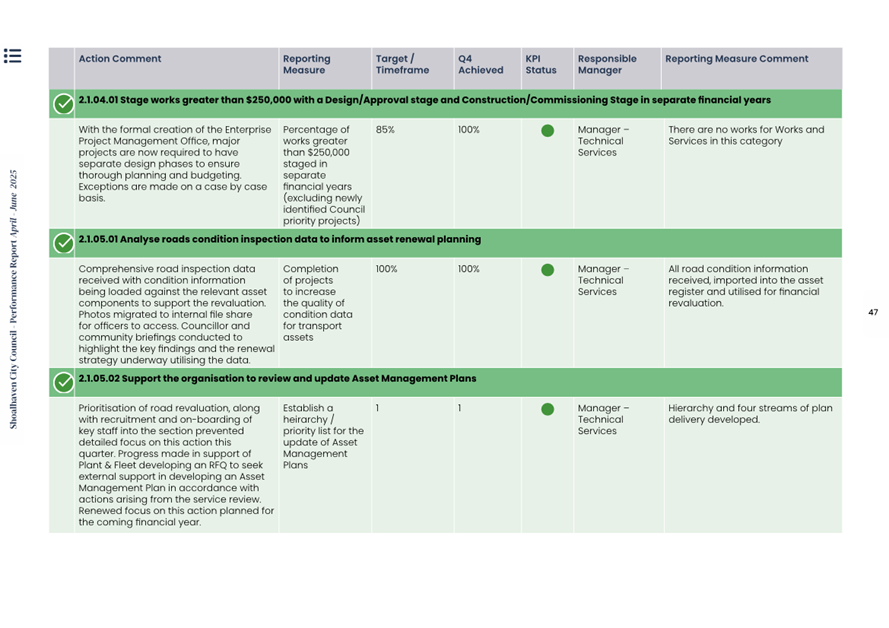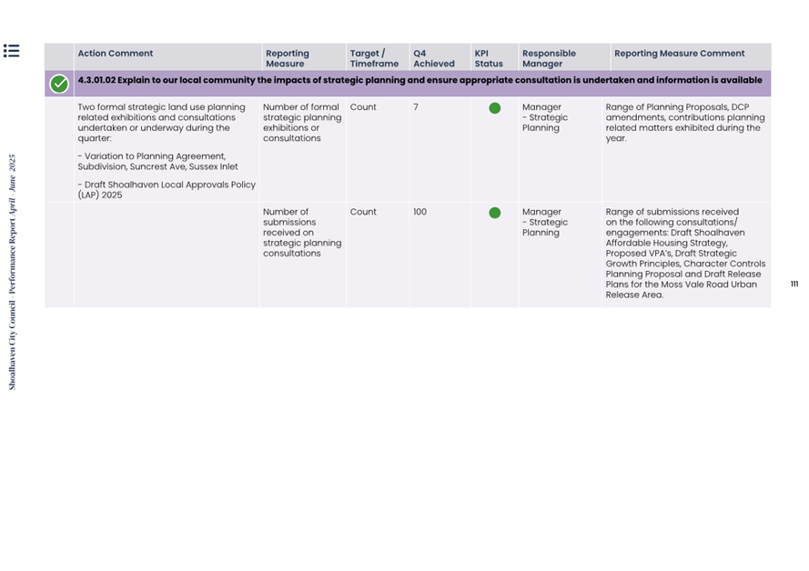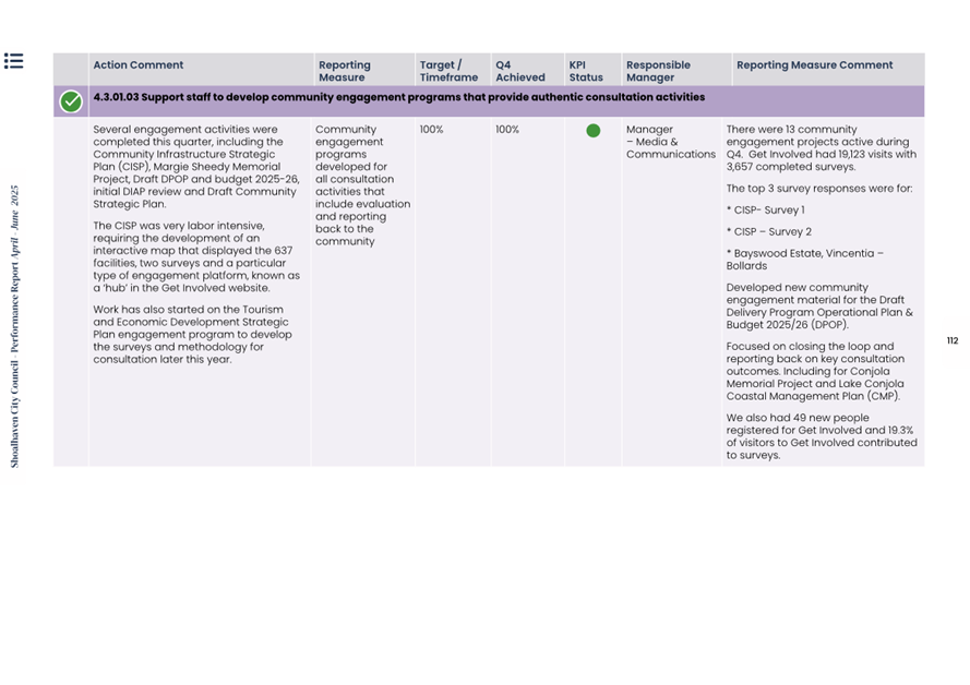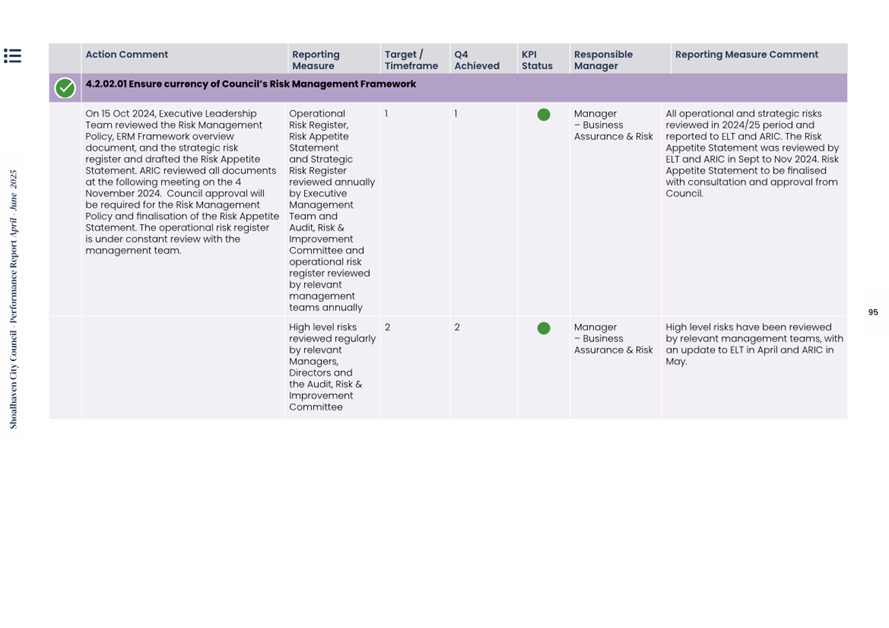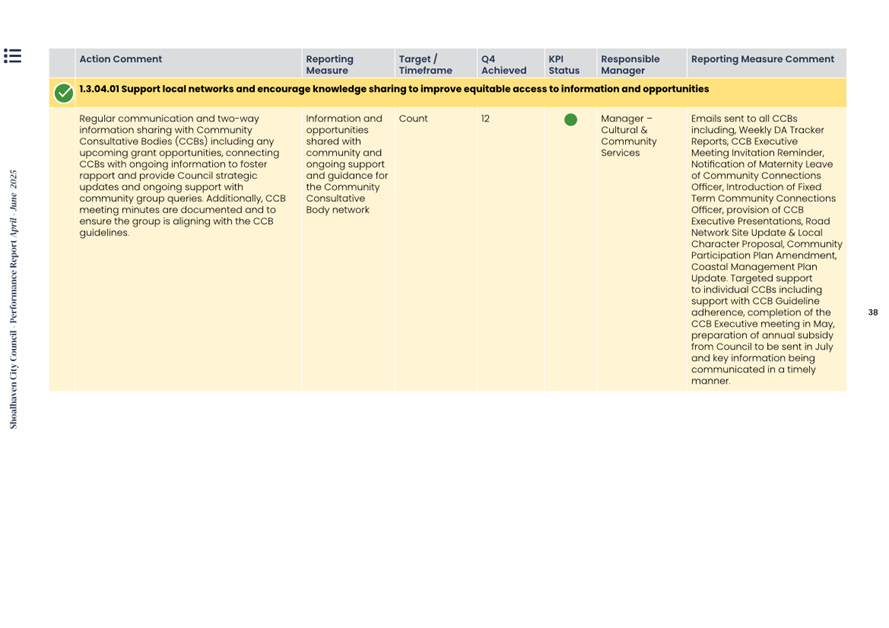 Attachment 1.... Delivery Program Operational Plan - Quarterly Performance Report 2024-25 - April to June......................................................... 37