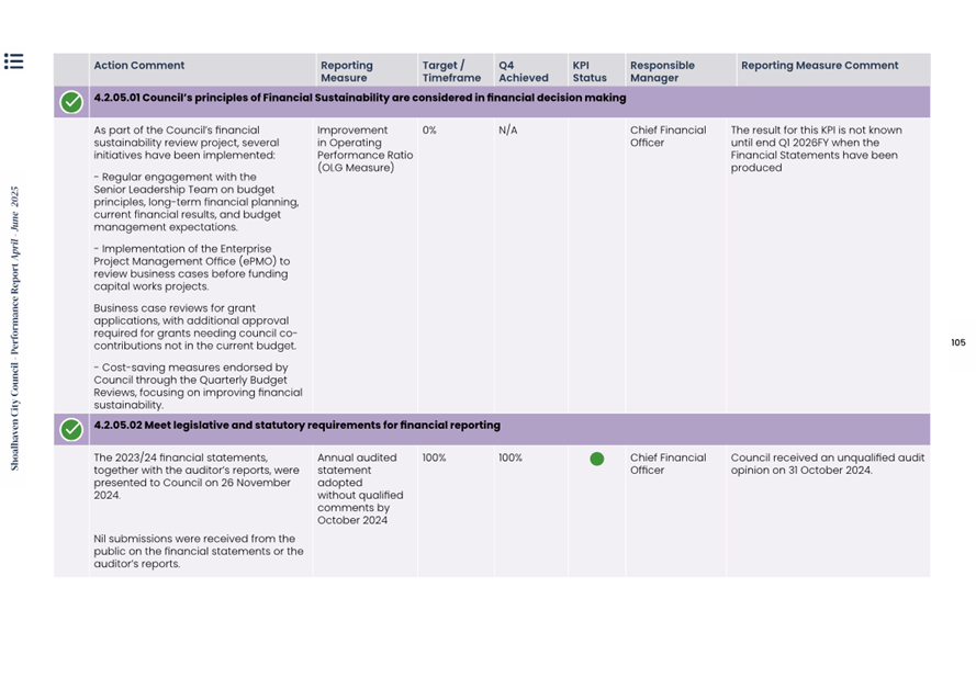 CL25.260 Financial Sustainability Quarterly Productivity and Efficiency Report