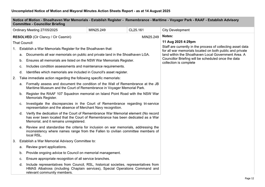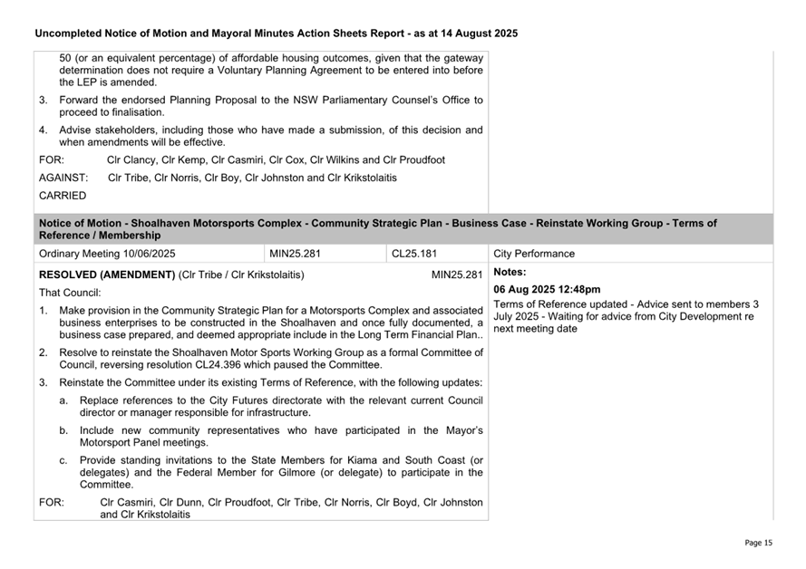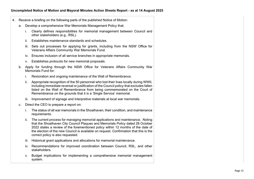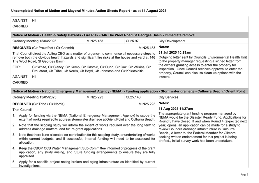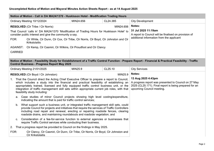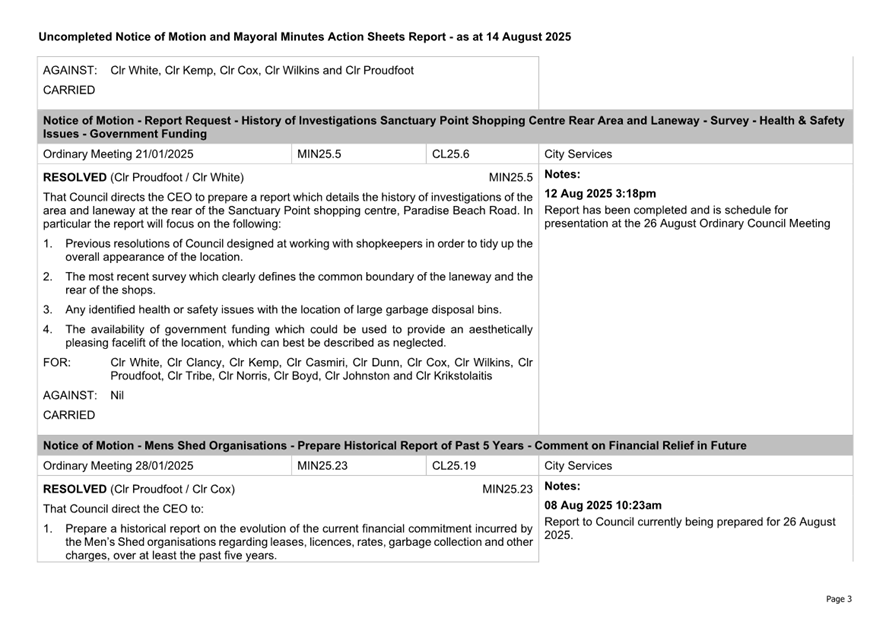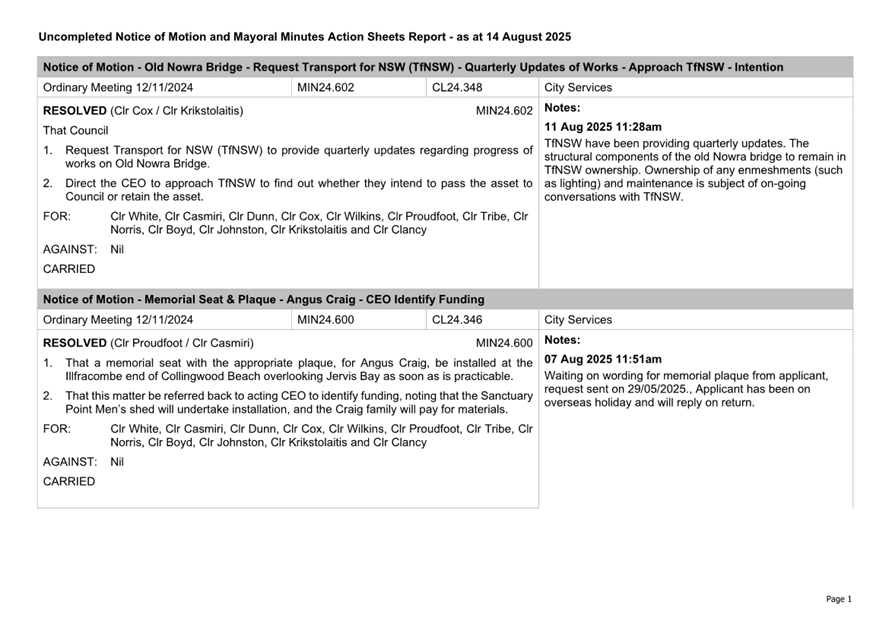 Attachment 2.... Uncompleted Notices of Motion/Mayoral Minutes Report.. 157