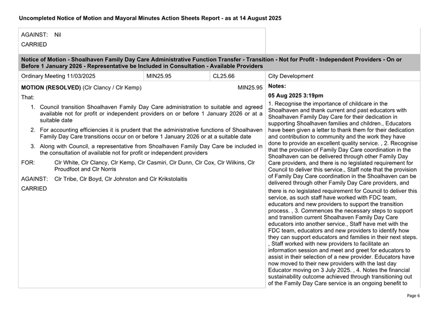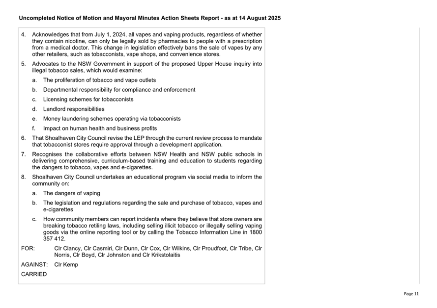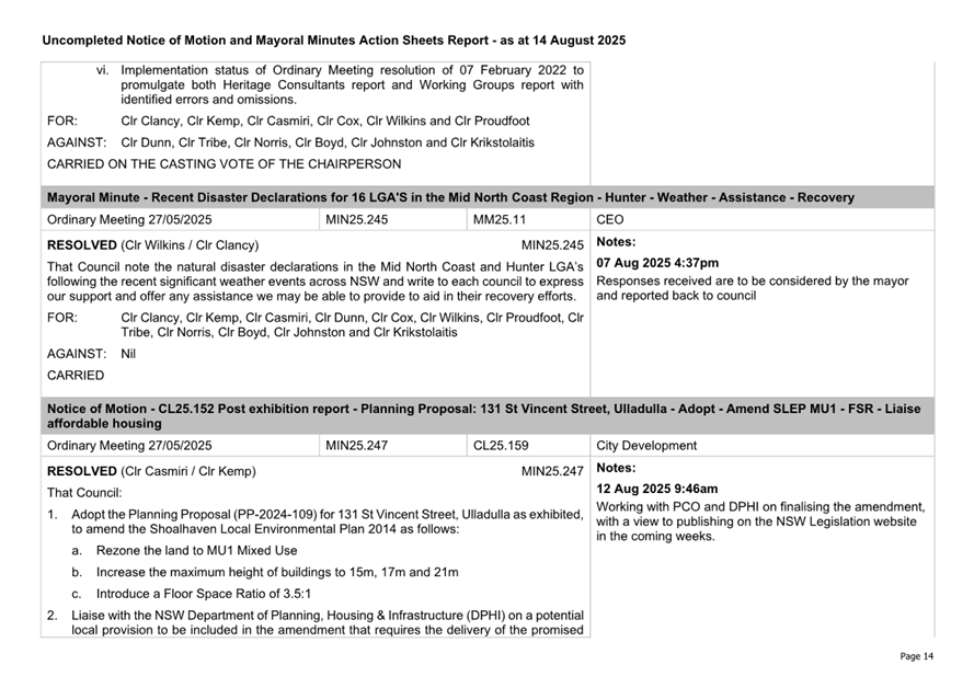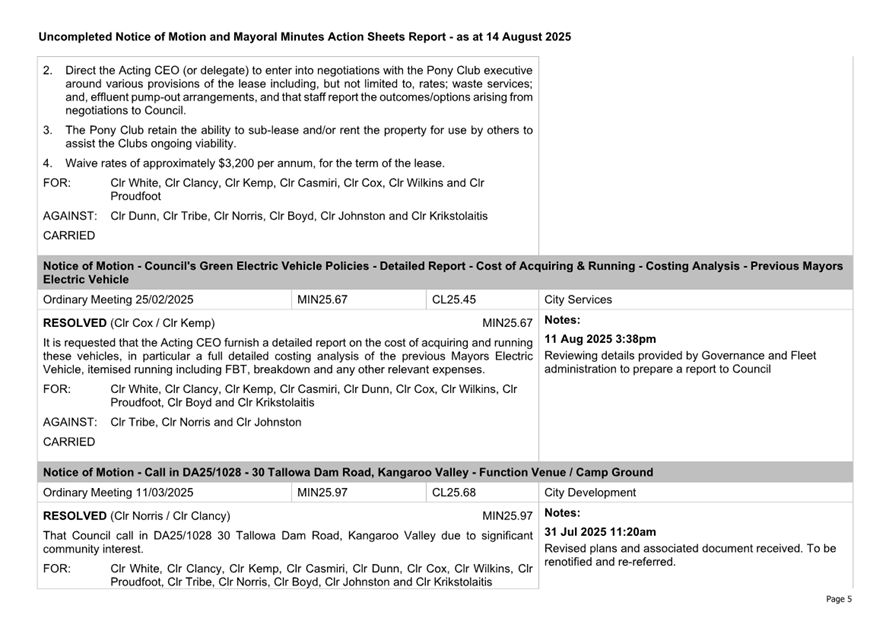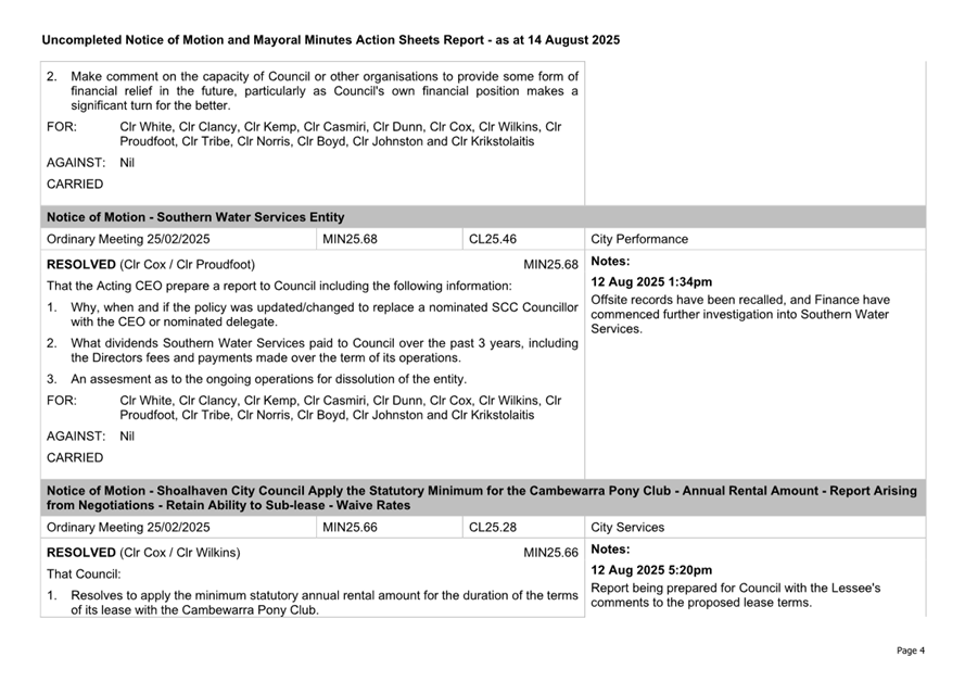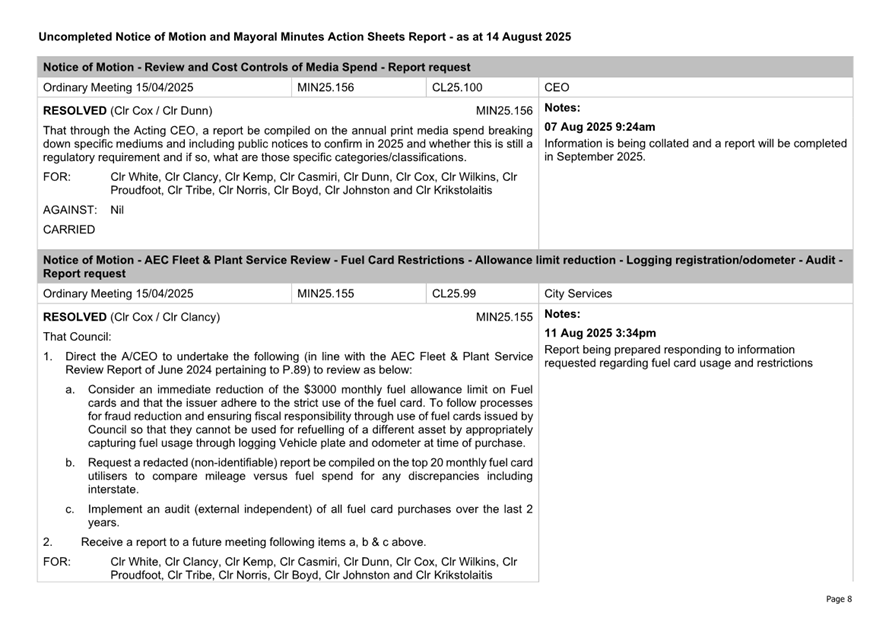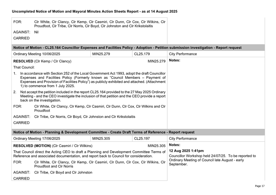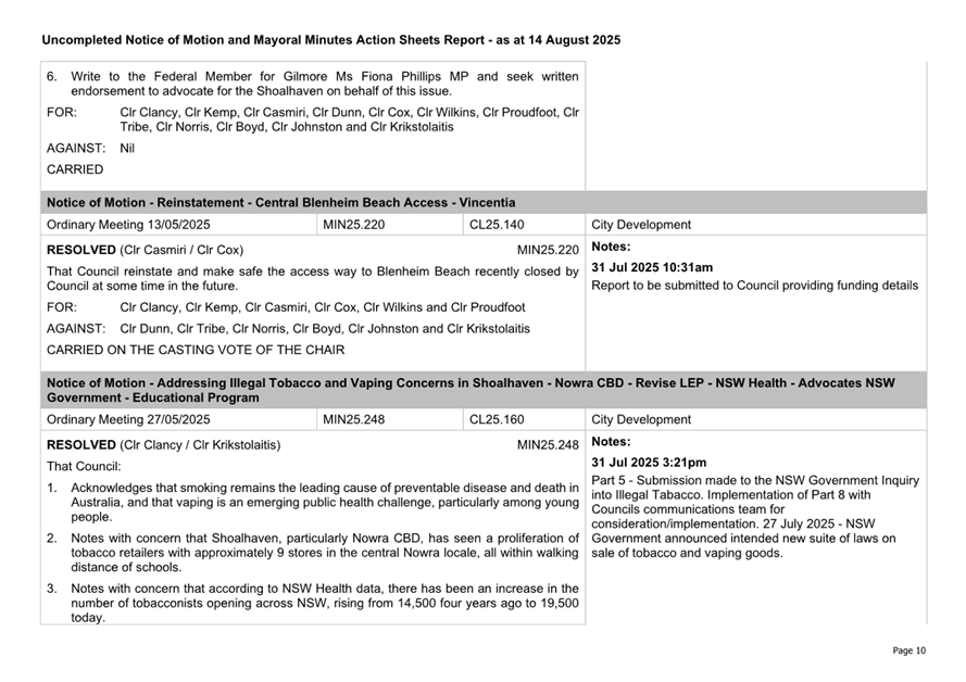 Attachment 2.... Uncompleted Notices of Motion/Mayoral Minutes Report.. 157