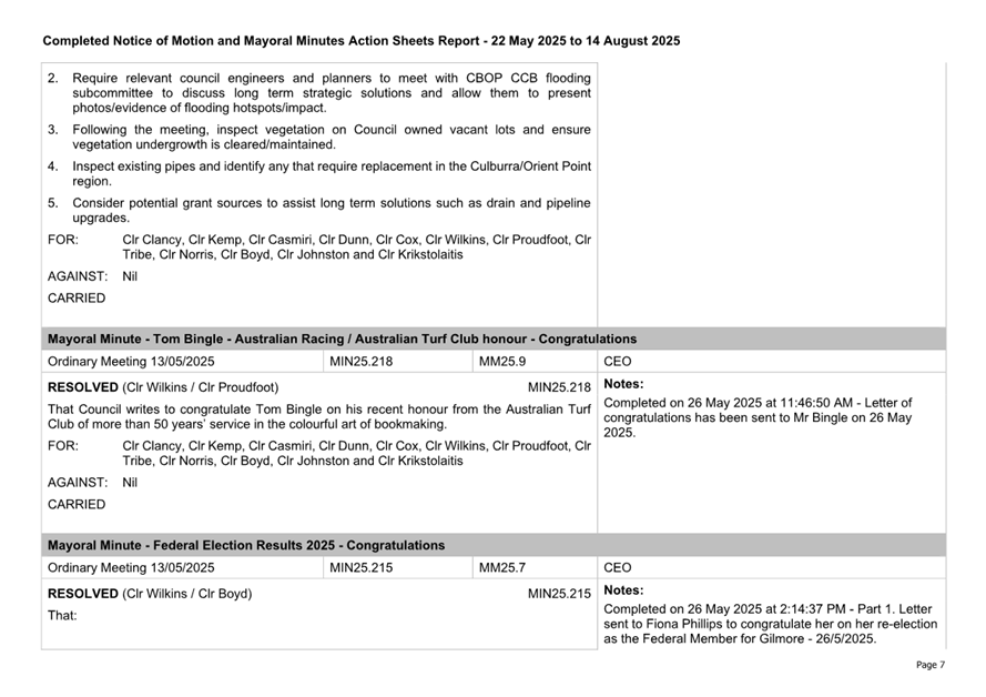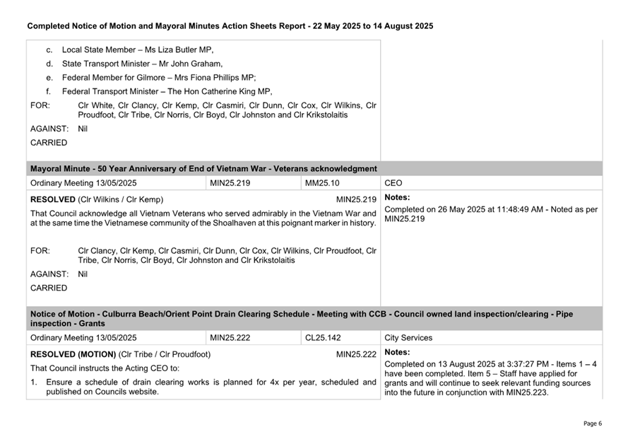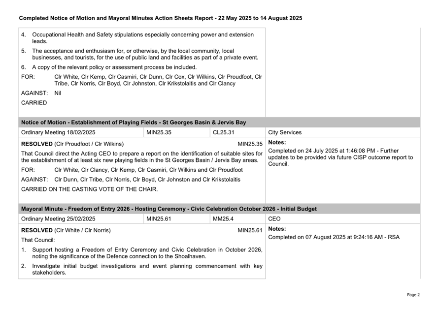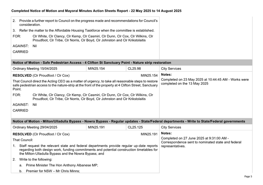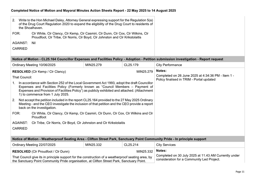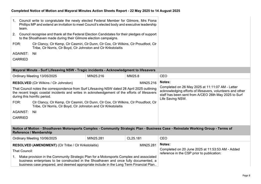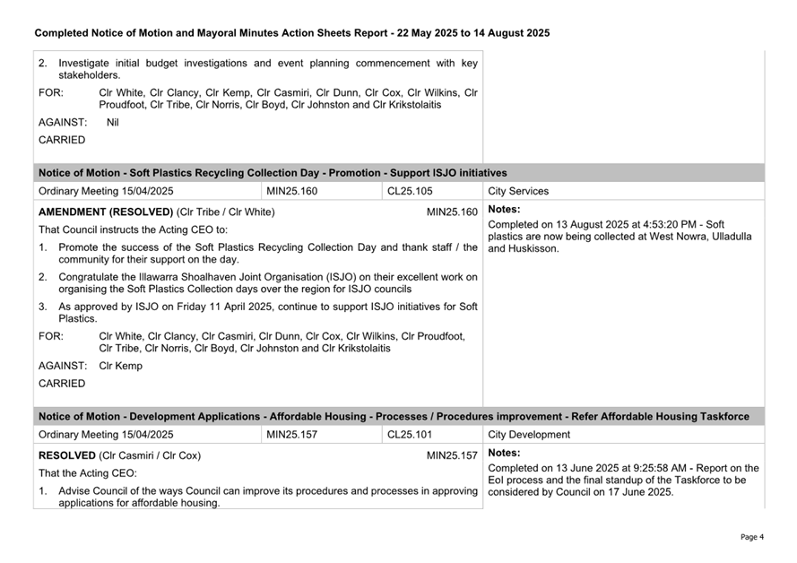 Attachment 3.... Completed Notices of Motion/Mayoral Minutes Report...... 174
