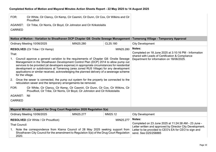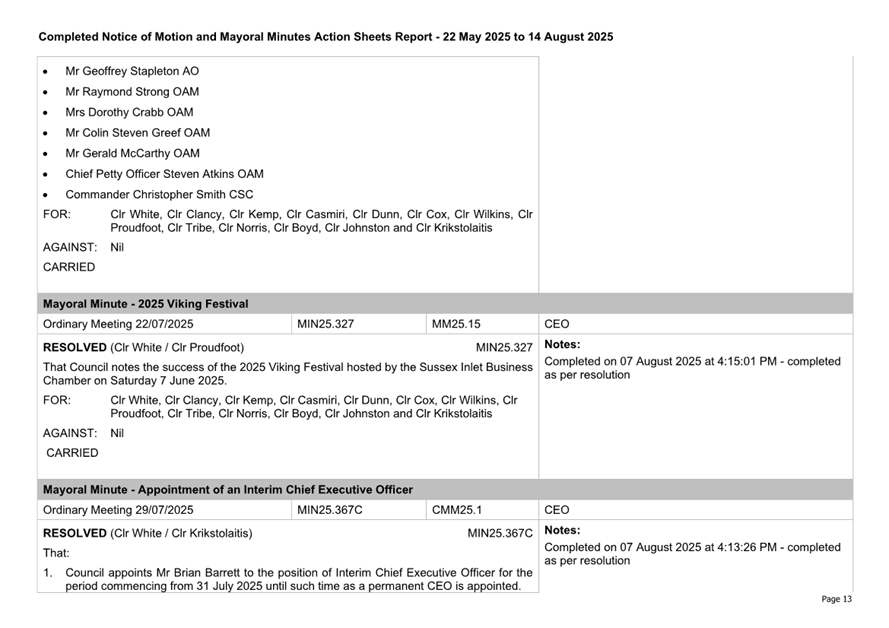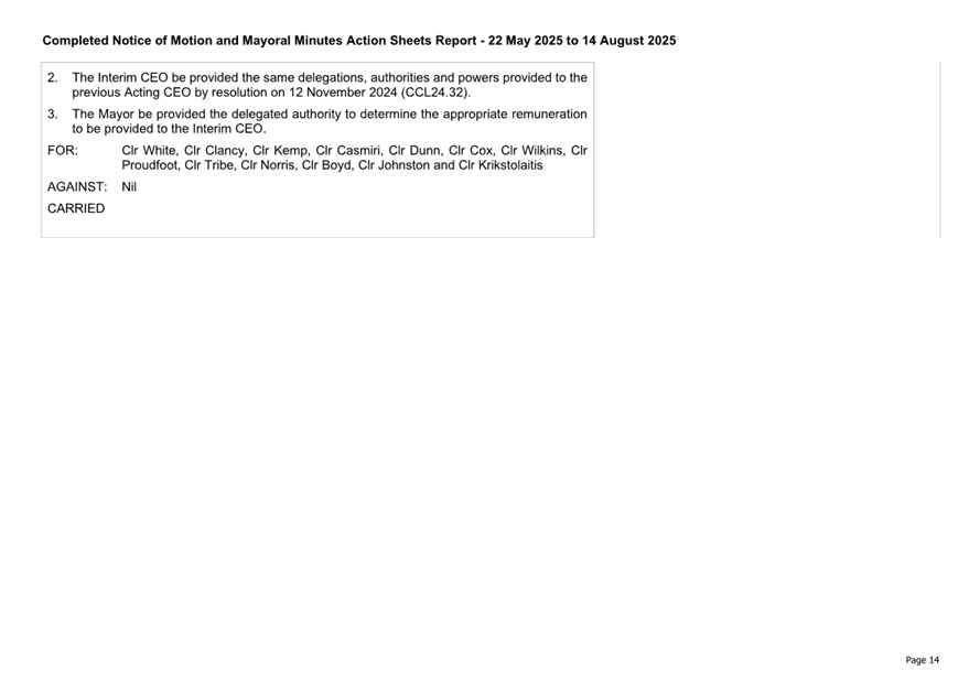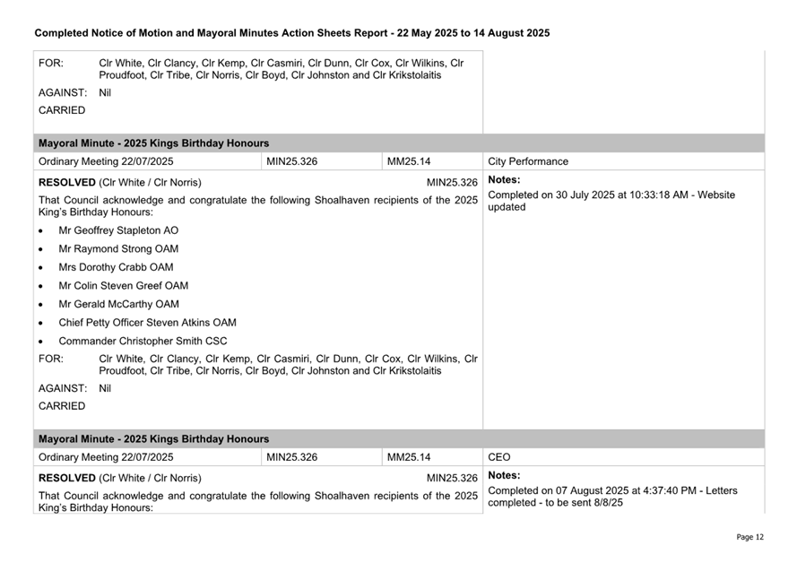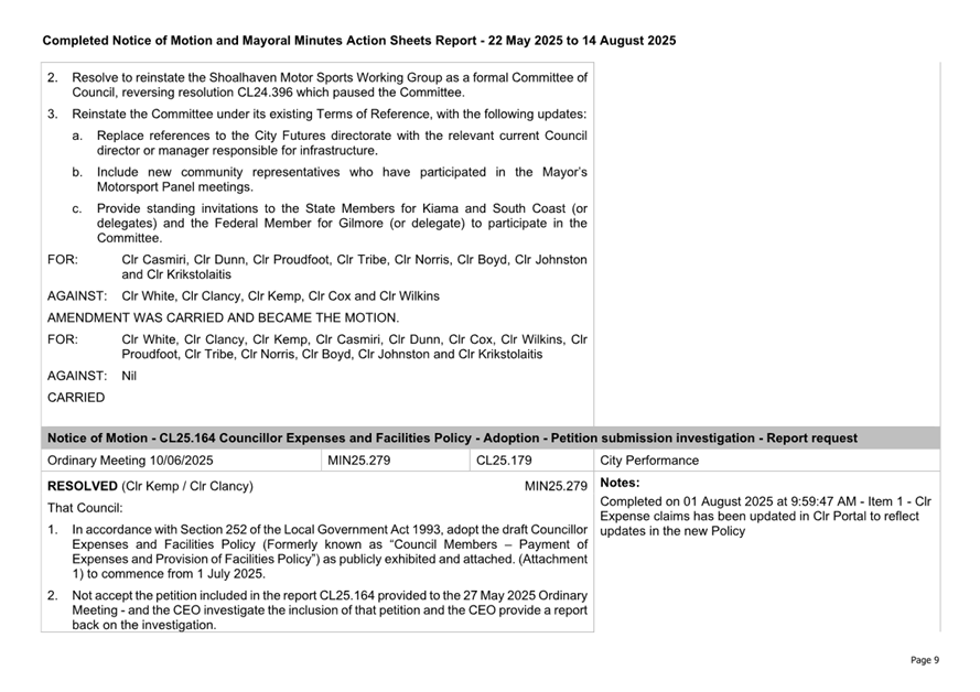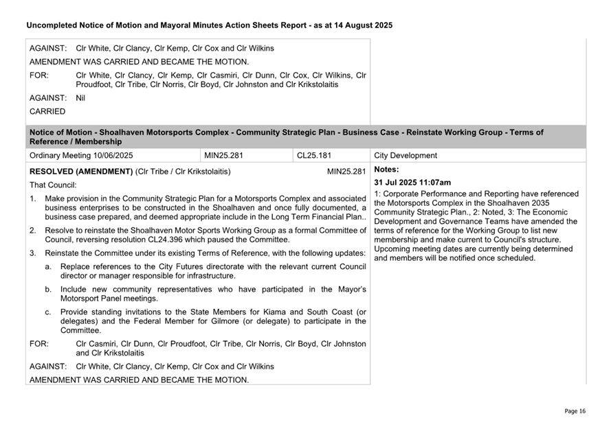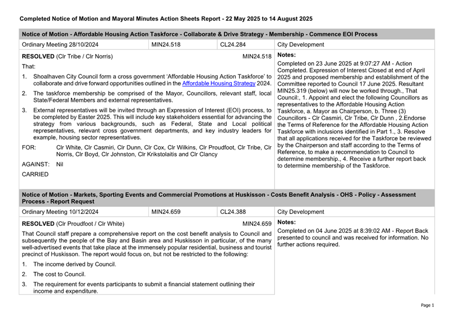 Attachment 3.... Completed Notices of Motion/Mayoral Minutes Report...... 174