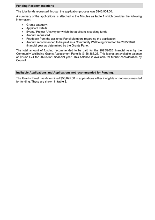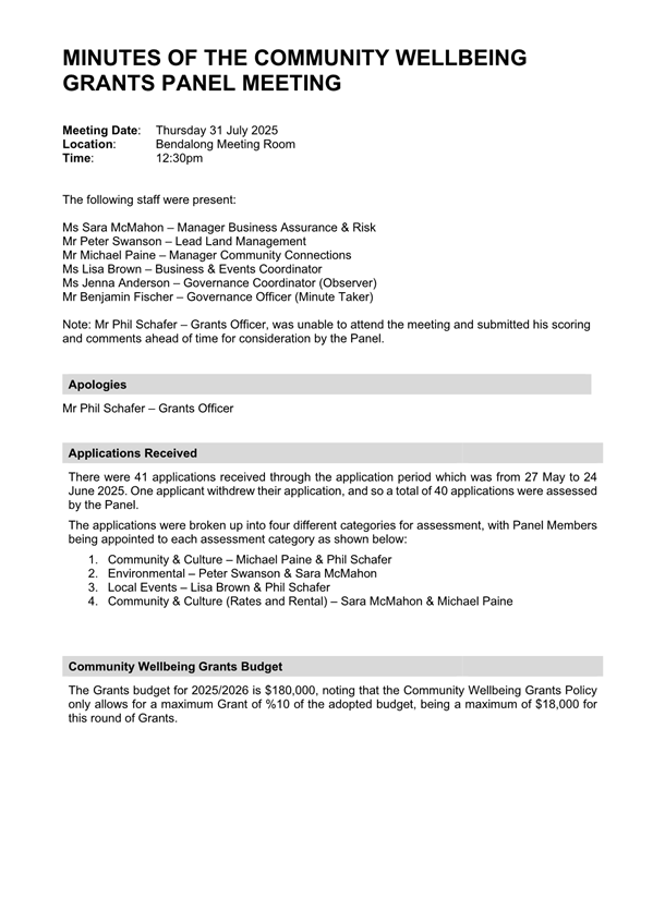 Attachment 1.... Informal Minutes - Grants Assessment Panel Meeting 31 July 2025............................................................................................ 188