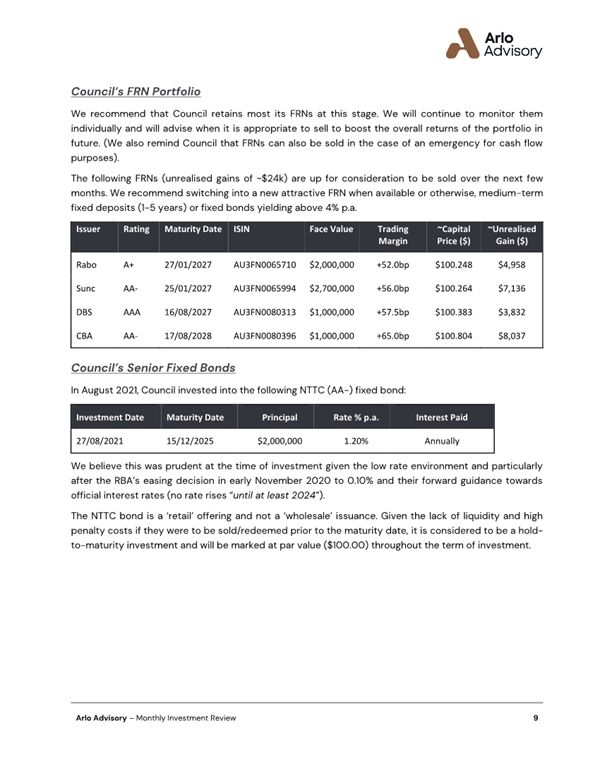 Attachment 1.... Monthly Investment Review................................................ 200