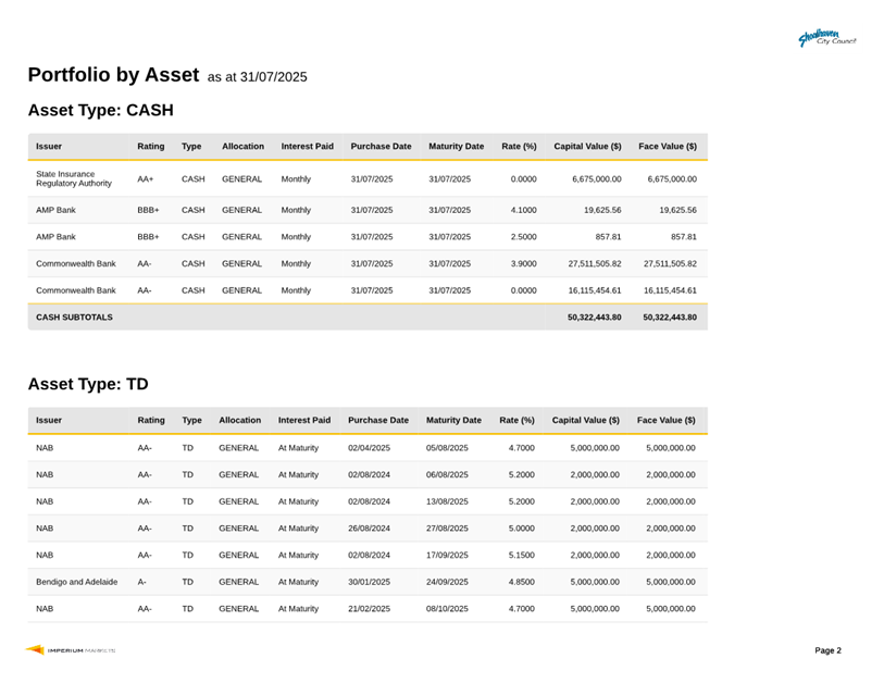 Attachment 2.... Statement of Investments as at 31 July 2025.................... 223