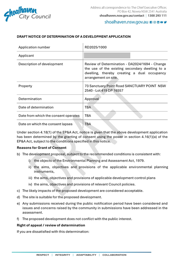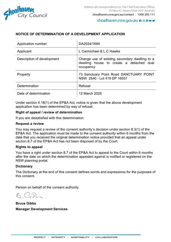 Attachment 3.... Original Determination - Refusal........................................ 257