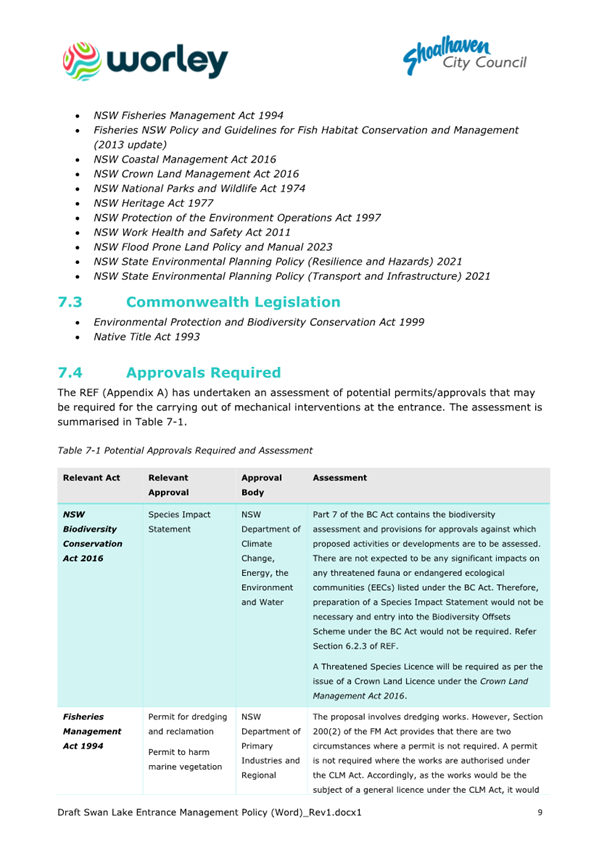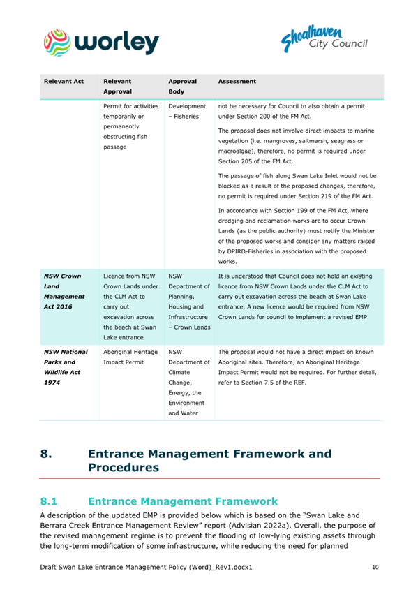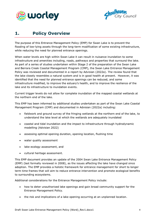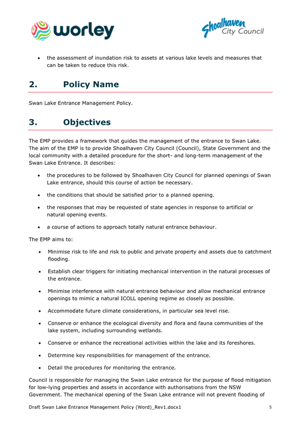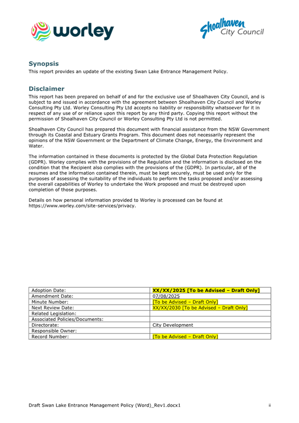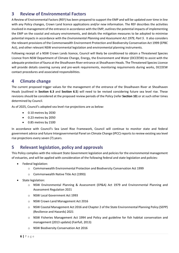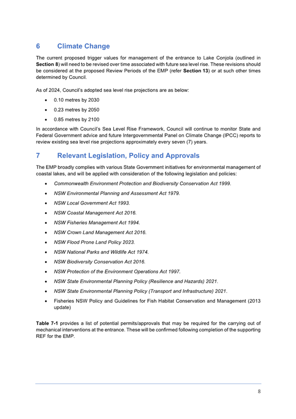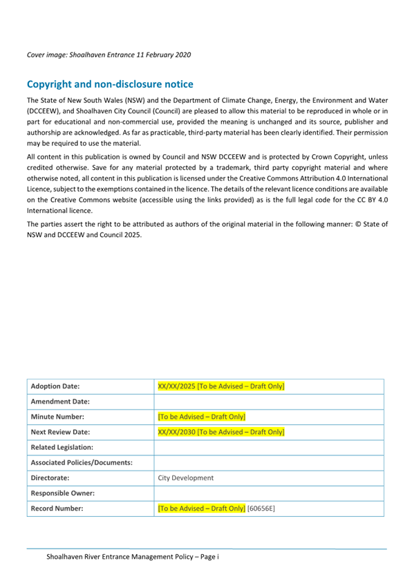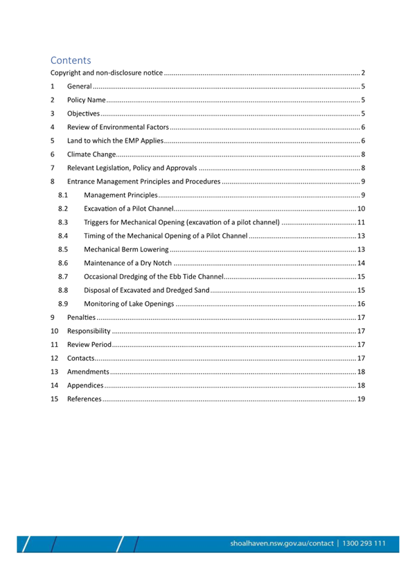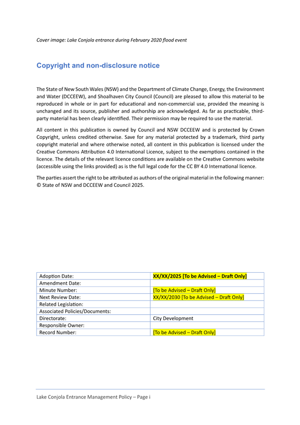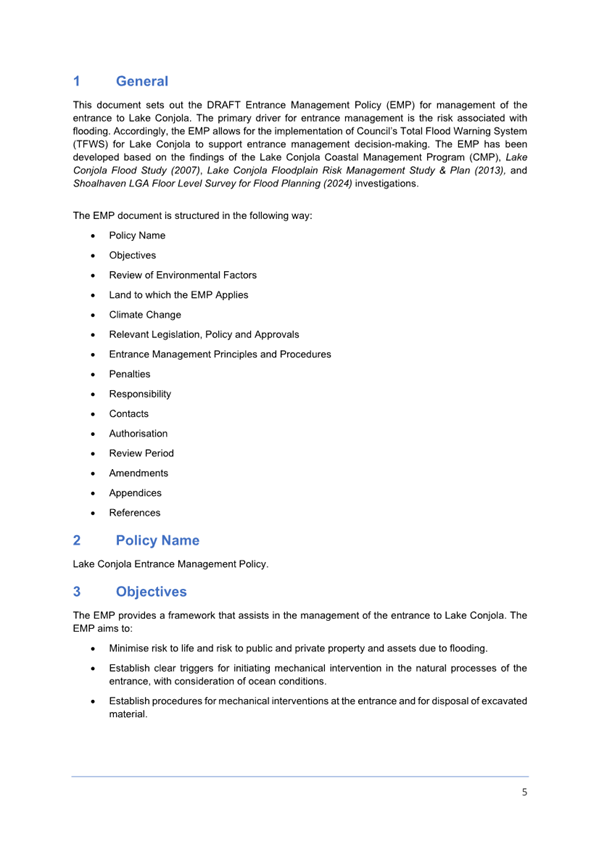 Attachment 1.... Lake Conjola Entrance Management Policy...................... 286