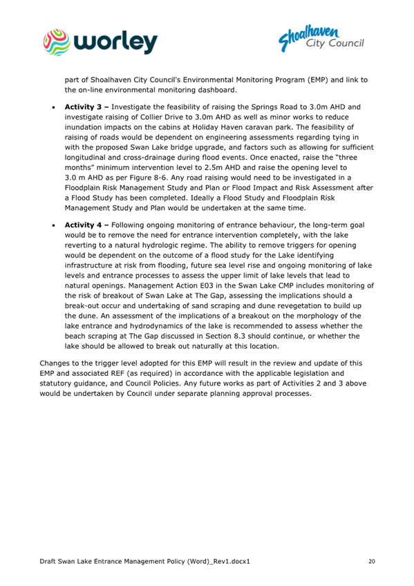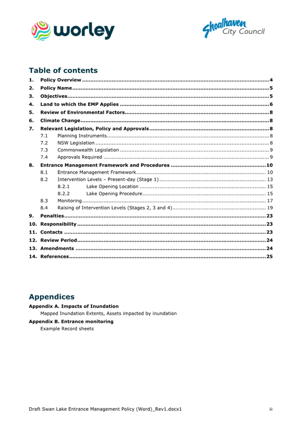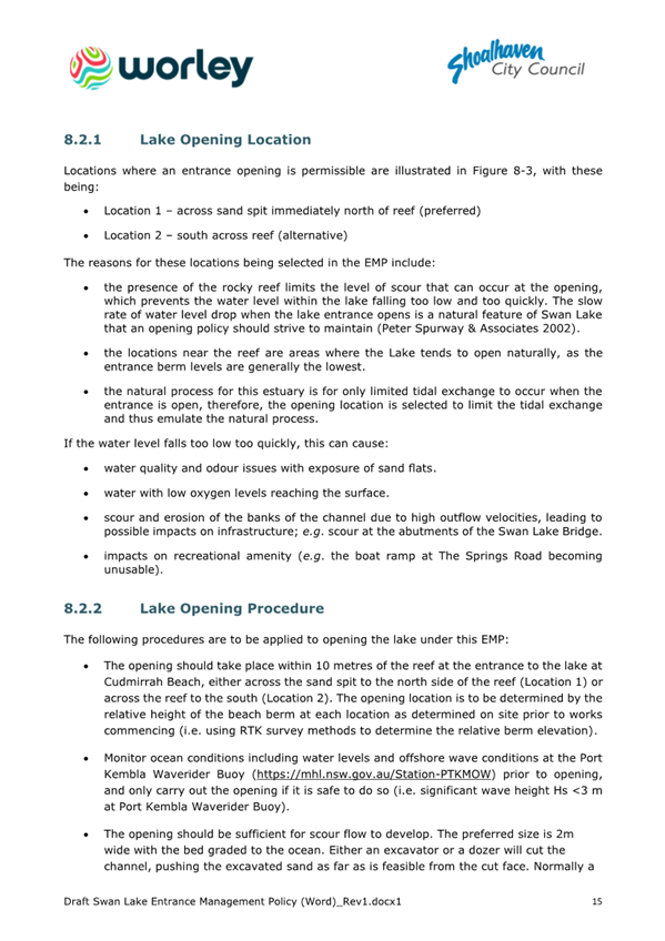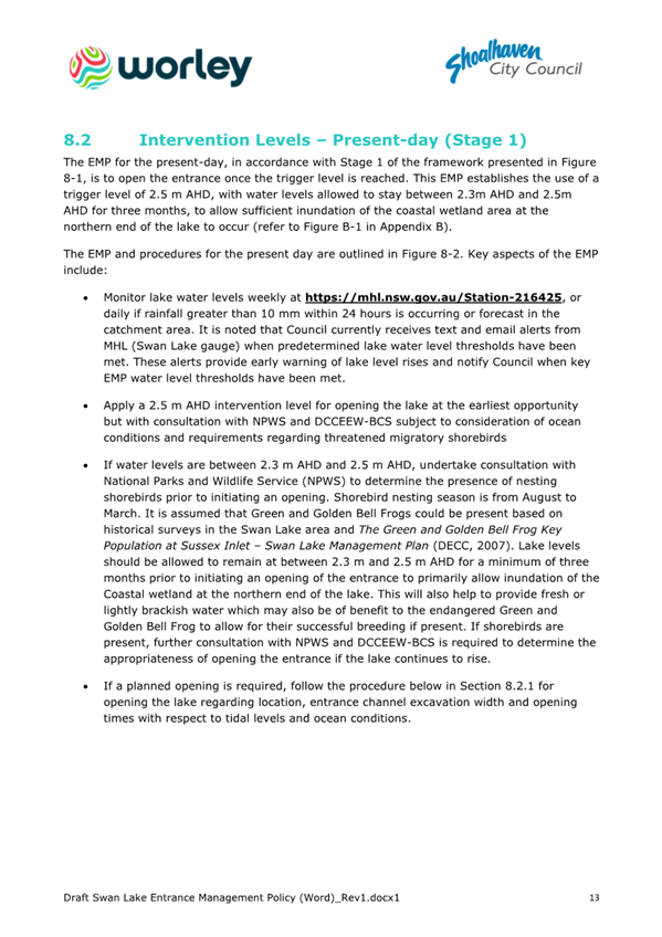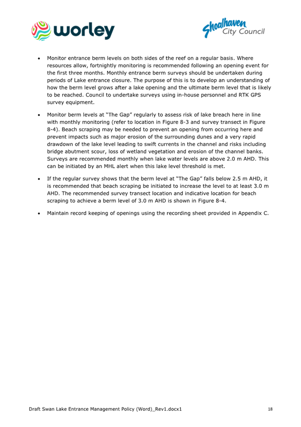 Attachment 1.... Draft Swan Lake Entrance Management Policy................ 305